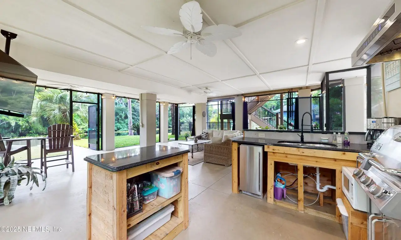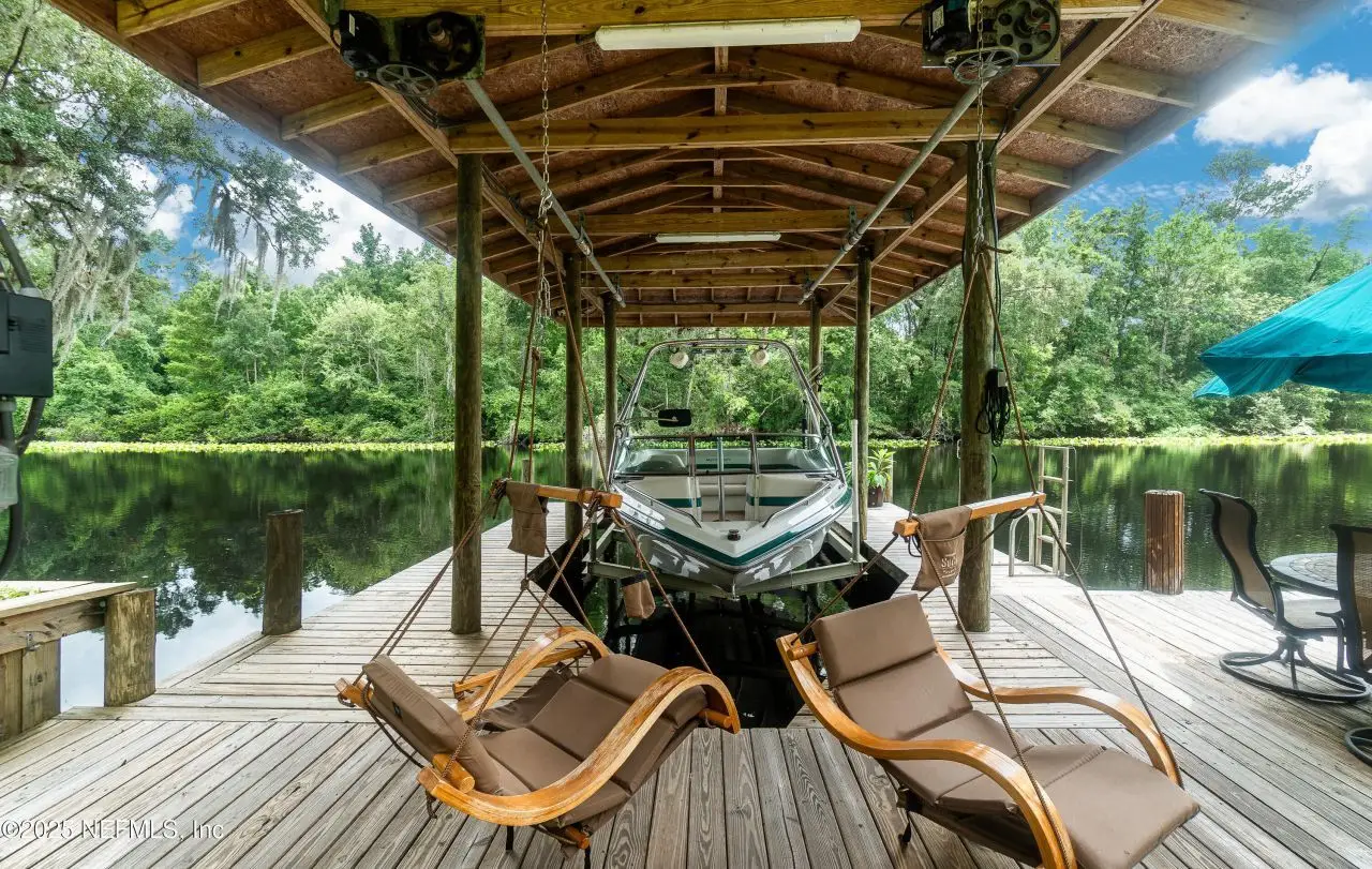Serene Waterfront Living on Peaceful South Prong of Black Creek Welcome to your tranquil retreat nestled along the quiet, scenic shores of Black Creek. This beautifully appointed 3-bedroom, 2.5 bathroom home offers the perfect blend of comfort, functionality, and outdoor enjoyment. Enjoy the convenience of a 2.5 car garage, golf cart garage, and carport, providing ample space for vehicles, toys, and tools. Step inside from your stairs or exterior elevator to find quartz countertops, a Viking Dual Fuel convection range, Sub Zero built in refrigerator, Viking convection microwave, GE Cafe' Dish Washer, custom cabinets, and a cozy fireplace, creating a warm, inviting atmosphere perfect for everyday living and entertaining. Outdoors, this property is a dream come true for water lovers and entertainers alike. Relax or host gatherings in the screened-in entertainment area complete with an outdoor kitchen and sweeping waterfront views. Boaters will appreciate the private dock, 30' by 12' boathouse with lift, and bulkhead, offering direct access to the peaceful waters of Black Creek. The home is built above the flood zone elevation. The carport is 10 feet high, the garage has an attic storage area on the second level. Aerator, hot water heater, heat pumps are raised above the flood zone elevation as well. The lot is equipped with a 6 zone sprinkler system, over sized driveway, and across Black Creek the view is stunning with nature and wildlife frequenting the Creek. It is directly across from the Old Ravines Golf Course which has been closed for several years. This home is tucked away in a quiet, established neighborhood. It is on a dead end road so traffic is almost non-existent.