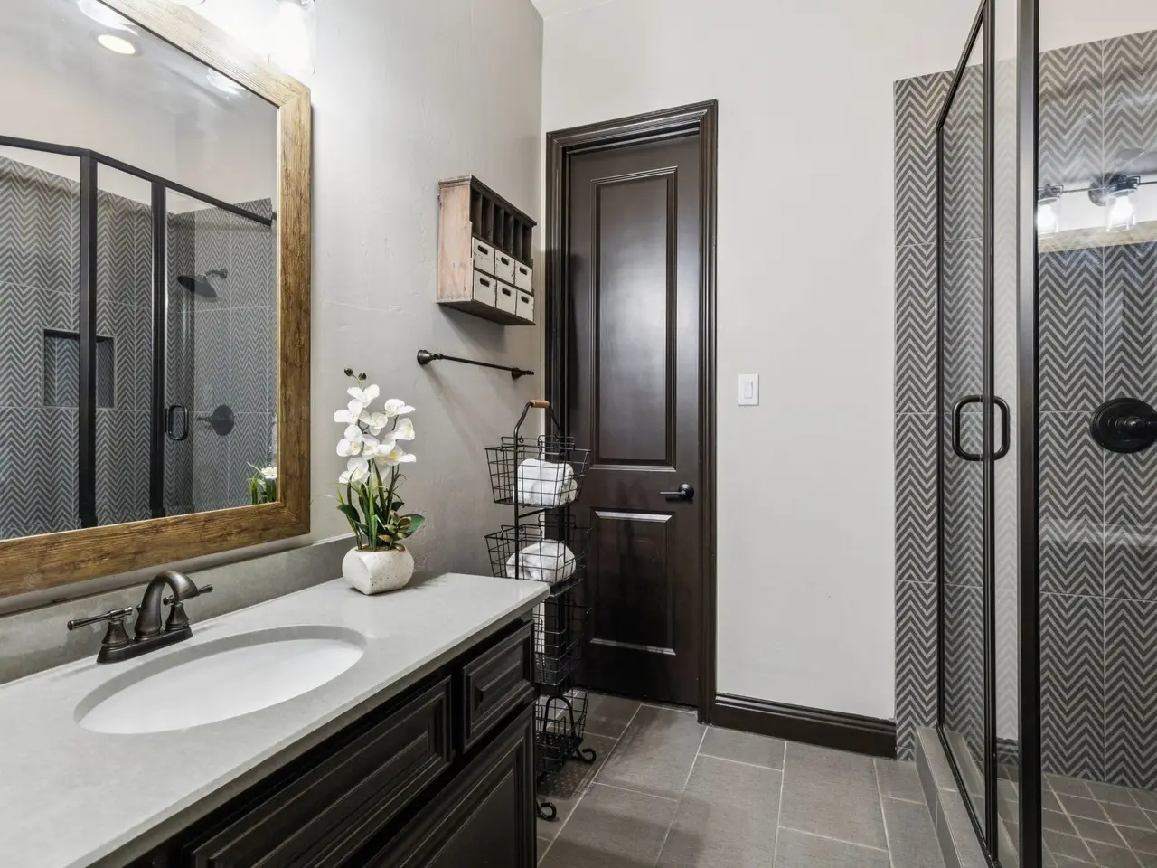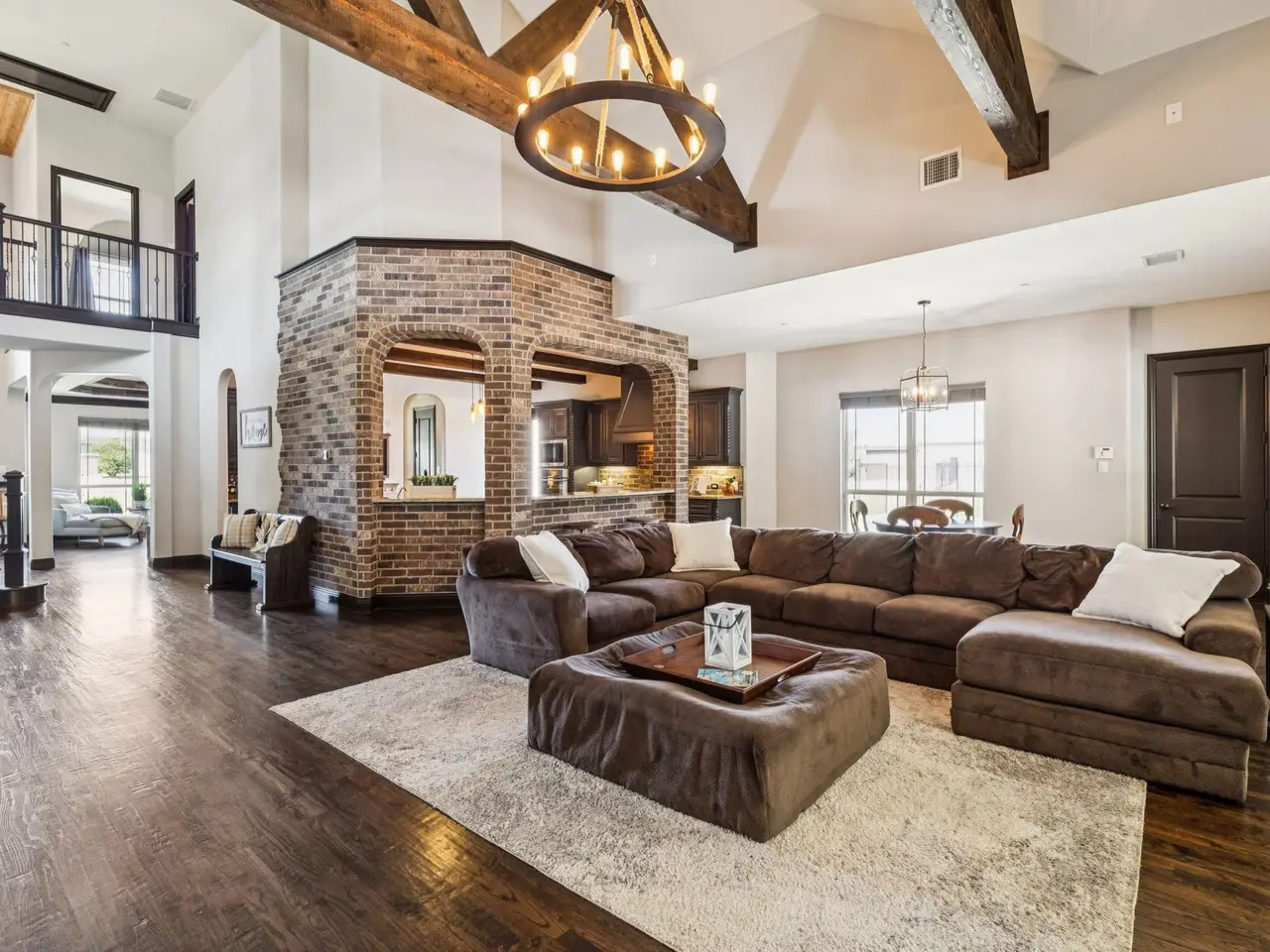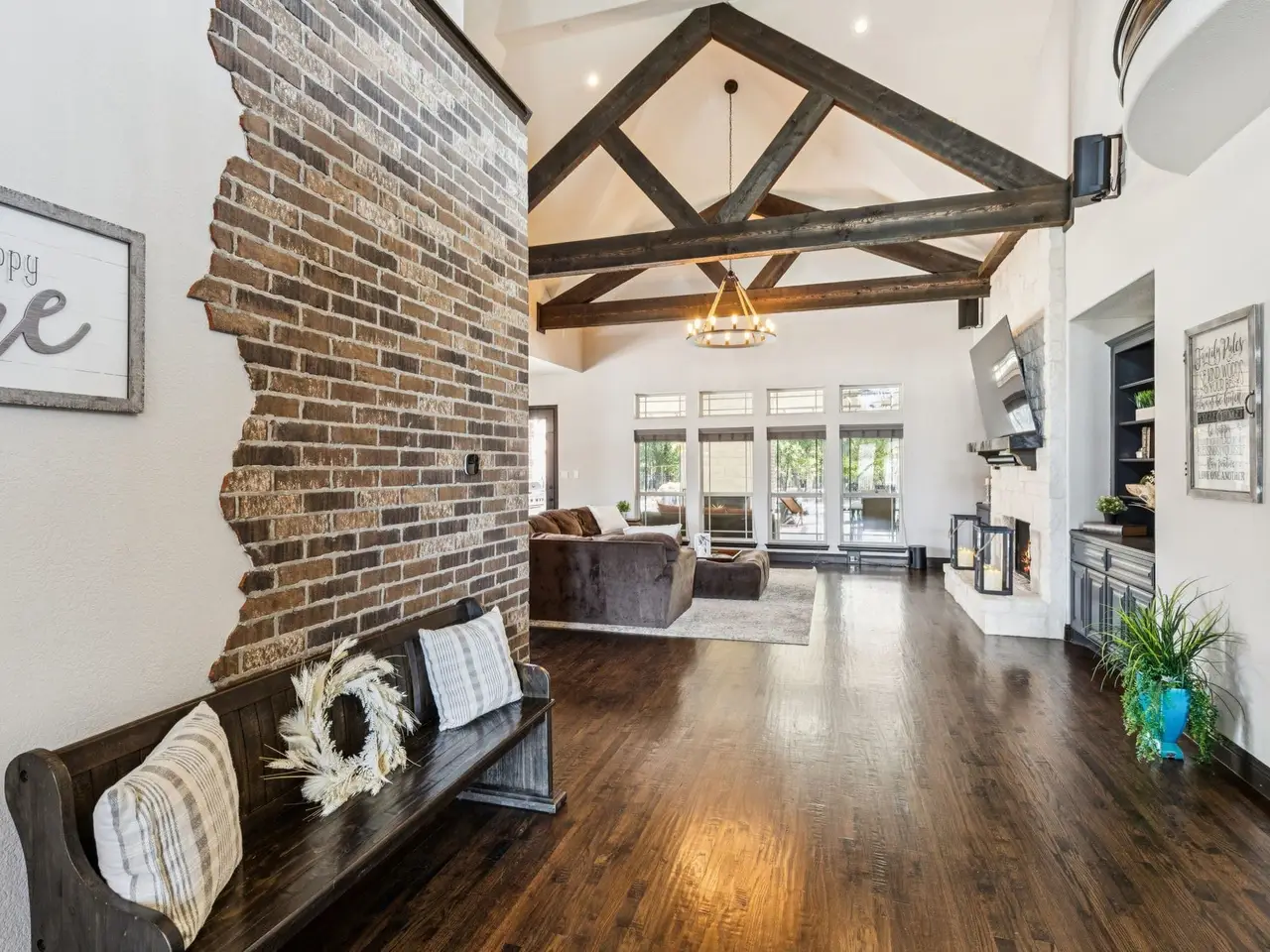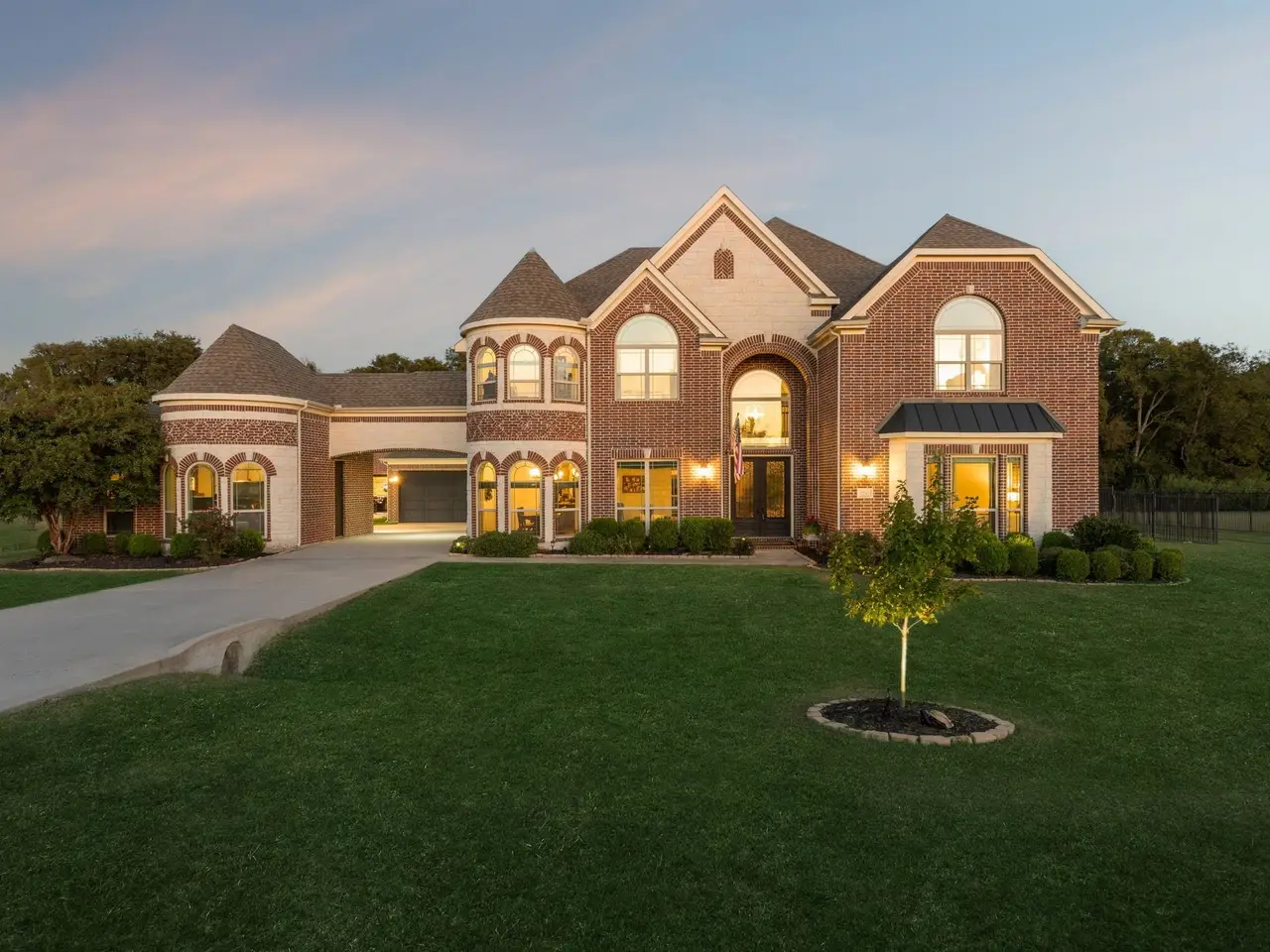Welcome to your private retreat - an EXTRAORDINARY FAMILY ESTATE OFFERING NEARLY 8000sqft OF COMBINED LIVING SPACE which incl the primary residence plus GUEST HOUSE & ULTIMATE MAN CAVE all nestled on 2.65 acres backing to a serene wooded creek. From the moment you arrive, the striking brick and stone architecture, turret detail, and expansive landscaping set the tone for something truly special. Step inside to soaring vaulted ceilings with wood beams, warm wood floors and brick wall accents. The chef's kitchen is a dream with Electrolux appliances, dbl ovens, granite counters, prep sink, RO water system and abundant cabinetry. Entertain with ease in the oversized living areas, game room & media room with Sony projector, speakers, wet bar and wine fridge. Every detail has been carefully planned from the whole-home water softener and filtration system to the thoughtful layout. Downstairs, the luxurious primary suite awaitsfeaturing a sitting area, spa-inspired bath with stone walls, earthy textures and a multi-head rain shower. The private downstairs in-law suite with full bath is perfect for guests. Upstairs the secondary bedrooms are generously sized. Don't miss the closets that can double as study or hang out spaces! Outdoor resort-style living can be enjoyed year-round amidst twinkling Edison lights. The covered patio and pergola feature a built-in kitchen and FP with plenty of room for dining and lounging. The sparkling pool incl a spa and waterfalls with firepit nearby for cool evenings. The separate guest house not only features a fitness and sports enthusiasts ideal man cave complete with industrial finishes, but also a home office and private guest suite. Amenities include a bar, island, home gym, hardwiring for media and CAT7 for hi-speed network. Parking is abundant with two 2-car garages and porte cochere. This property blends comfort, sophistication, and functionality in a way that's rare to find. Don't miss the chance to experience all it has to offer.
