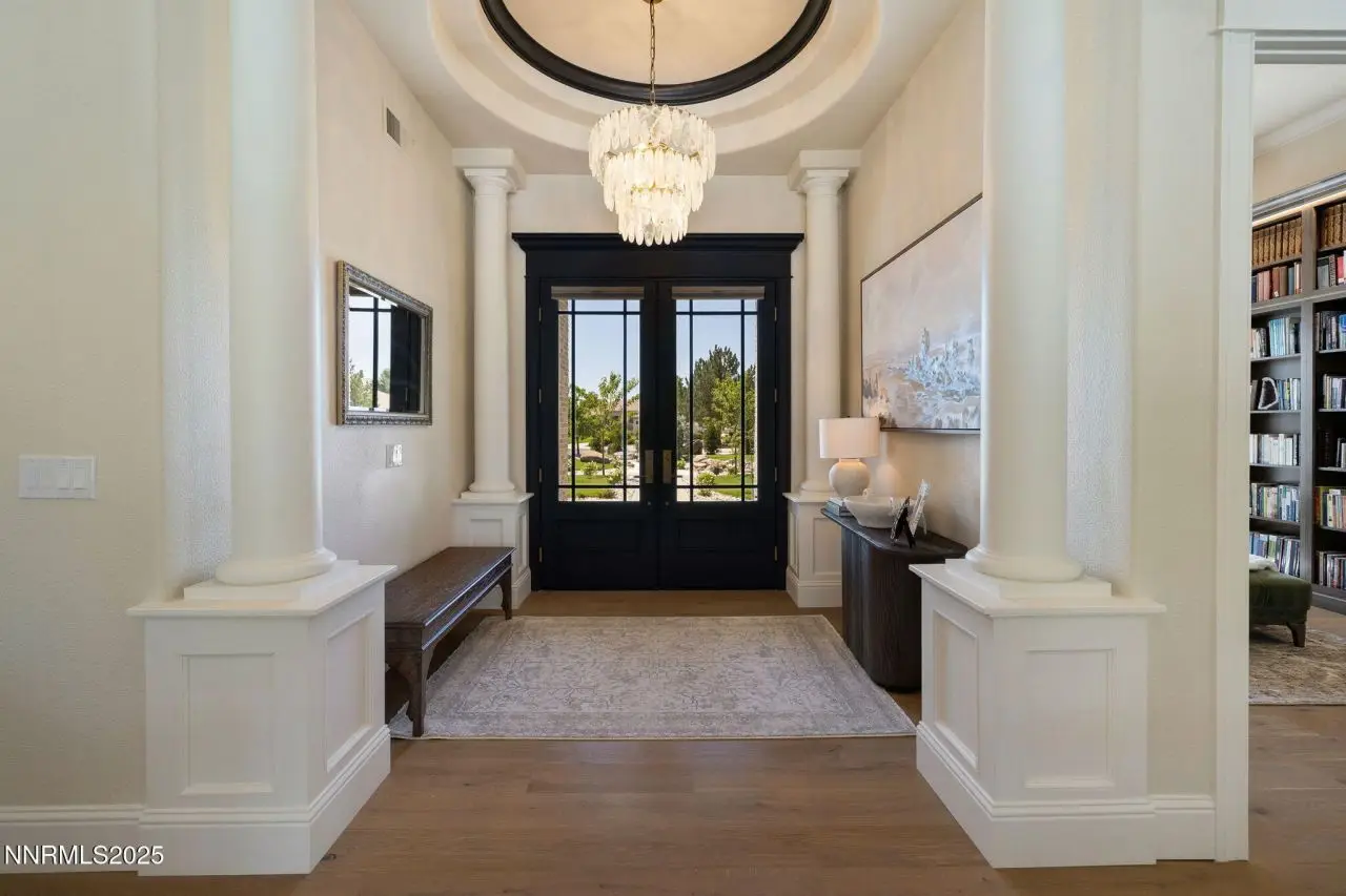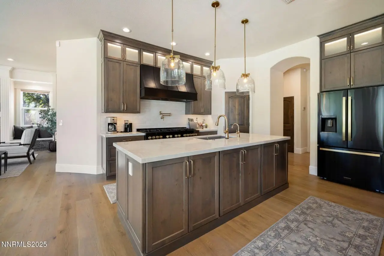 Completely remodeled inside and out, this luxurious single-story home in Spanish Springs sits on a 1.25-acre corner lot in a quiet cul-de-sac, offering the feel of your own private resort. With 3,510 square feet of thoughtfully designed space, the home features four bedrooms, three bathrooms, and a library. The chef's kitchen is the heart of the home, equipped with top-of-the-line ZLINE appliances including an 8-burner dual oven range, stone countertops, ceiling-height cabinets with lighting, Pottery Barn island lighting, a new backsplash, and a remodeled walk-in pantry. The spacious primary suite offers dual walk-in closets, heated tile floors, a cast iron soaking tub, an oversized dual-head shower with floor-to-ceiling stone, glass doors and walls, a heated bidet toilet, custom Omega cabinetry, stone countertops, and private backyard access. Additional highlights include European White Oak stained hardwood flooring, new carpet, custom Closets by Design systems in all bedrooms, fully renovated bathrooms, new blinds, crown molding, new baseboards, new ceiling fans, recessed lighting, a full security system, reverse osmosis drinking water, and a beautifully updated laundry room with dual washers and dryers. The library features a built-in queen-size Murphy bed and a hidden safe room with a concealed door. Step outside to resort-style amenities including a Latham pool with waterslide, spill-over Royal Spa hot tub, custom firepit, new pavers, pergolas, retaining walls, ambient lighting, a fountain with rock feature, lush landscaping with both natural and artificial turf, and mature trees. Three outdoor units include a renovated clubhouse, private office, and utility sheds. With countless additional upgrades throughout, this is a home that truly must be seen and experienced in person - prepare to be wowed! Welcome home!