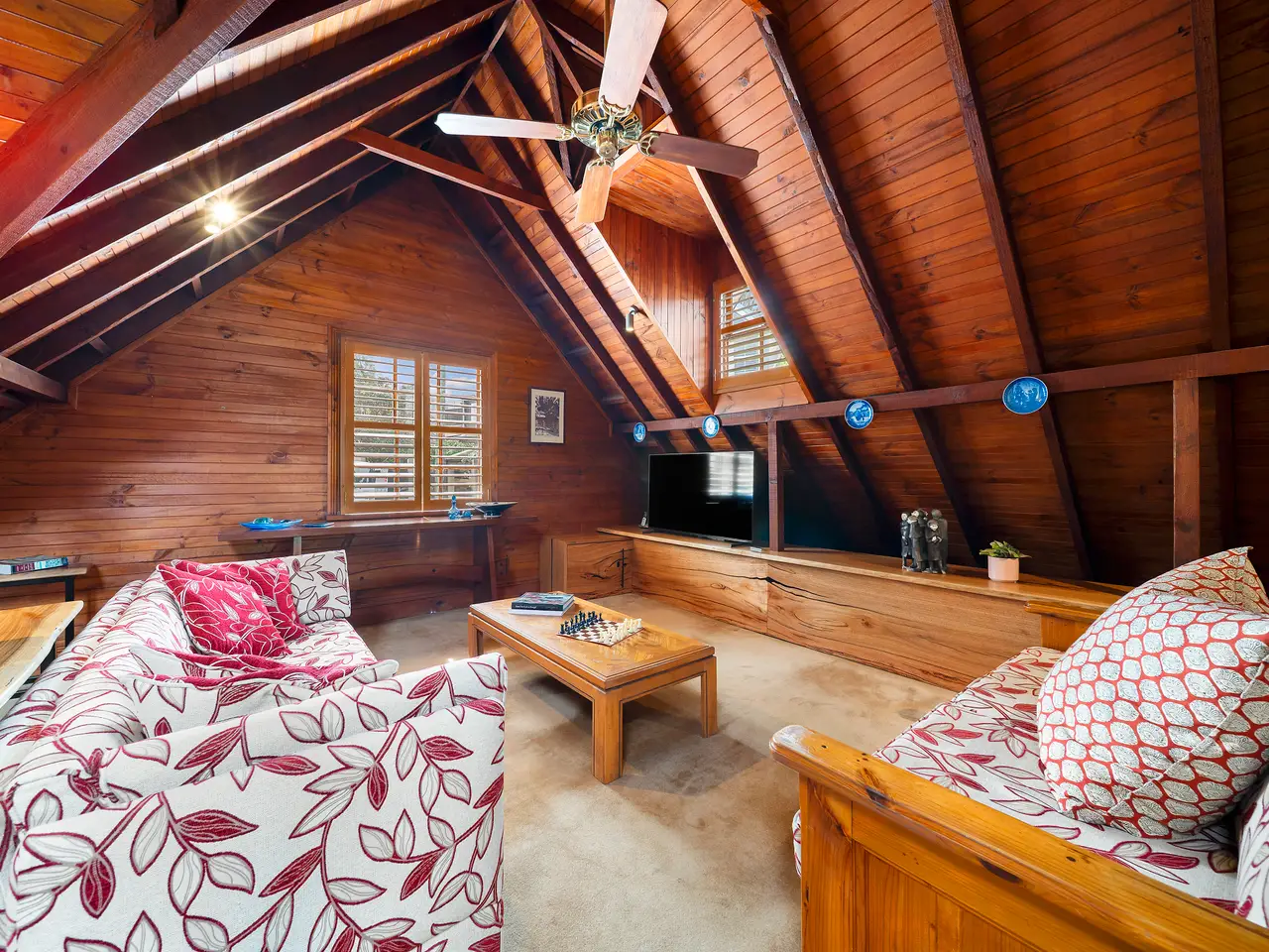 • Chalet-style retreat with timber cathedral ceilings