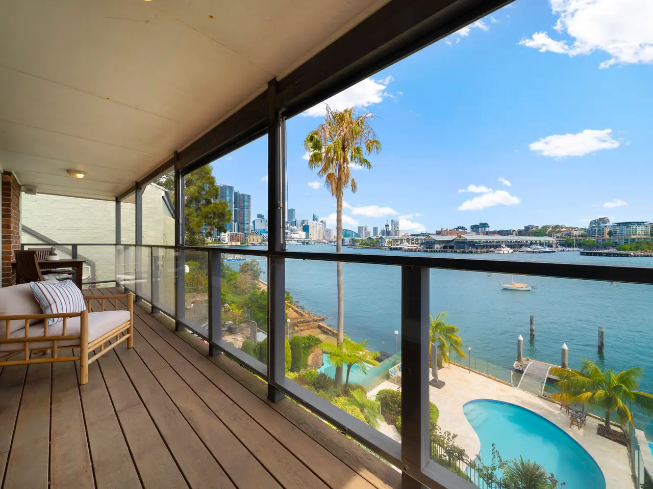 View by appointment Tightly held for 41 years and offered for only the second time, this street-to-waterfront property occupies approx. 607sqm in one of the area's most secluded harbourside enclaves and with panoramic views over the harbour encompassing the Anzac Bridge, Jacksons Landing, Pirrama Park, Darling Harbour, the city and Barangaroo. The home is tucked away in a highly regarded location and features landscaped terraced gardens to the water's edge including approx. 91sqm of boating facilities, a swimming pool and and a side gate at the waterfront providing access to the neighbouring beach and tidal pool. The home showcases two light filled levels with thoughtful renovations designed to maintain both architectural authenticity and modern comfort, including a unique chalet-style retreat upstairs with solid timber cathedral ceilings. A true paradise for entertaining, the home combines generous space, floorplan flexibility and spectacular unobstructed views in a breathtaking location. - Entry with soaring double height ceilings and leadlight windows - Beamed timber ceilings, exposed brick and solid hardwood floors - Each level opens to rear balcony taking in the extraordinary views - Spacious living & dining areas plus two studies that offer versatility - Island kitchen/meals with granite benchtops and quality appliances - Four bedrooms upstairs plus ground floor rumpus/fifth bedroom - Main bathroom with bath, second bathroom, guest powder room - Two ducted r/c air conditioning systems, 4,000L rainwater storage - Hardwood decks, 10m salt pool, private jetty, pontoon, mooring poles - Jetty accommodates a 10.4m vessel with a draft of 3.5m - Shaded car space, 11kW solar panels, EV charger w/ 13kW battery - Footsteps from Illoura and Peacock Point Reserves on the harbour - Within 450m of Balmain East village shops, cafes and the ferry wharf