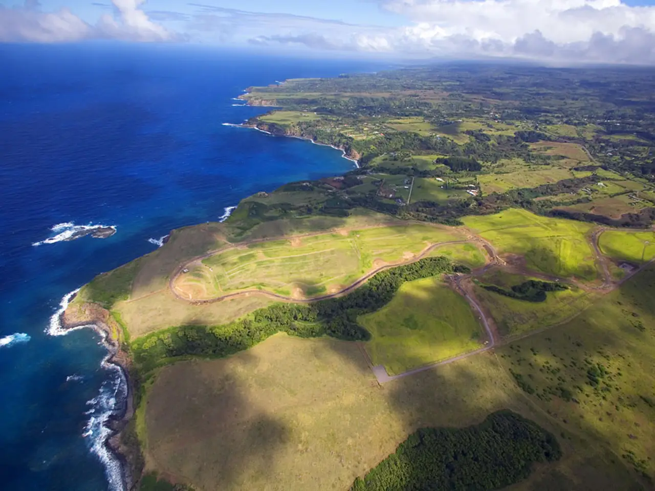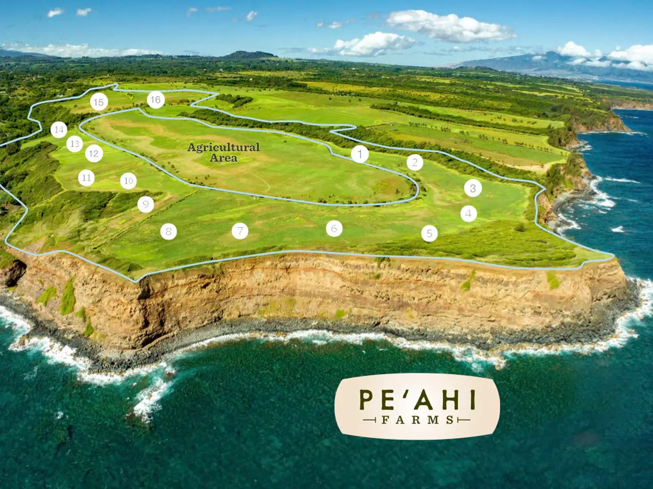 One of only two remaining lots for sale in Pe'ahi Farms and construction of new homes is currently underway. Lot 9 at Pe‘ahi Farms is a prime 13.241-acre parcel with breathtaking views of the Pacific Ocean, Haleakala and the West Maui Mountains. Careful planning integrates just 16 custom estate sites centered around agricultural open space. Set atop 130 ft. bluffs at Opana Point, at the northernmost point of Maui’s North Shore, these shovel ready building sites are ready to be built upon. Each lot has the SMA approval for building within the building envelope. With multiple options such as building a house and cottage, just a house, or starting with a small footprint (and budget) you could build the cottage first. The community takes its name from the nearby big wave surf break commonly called Jaws, whose Hawaiian place name is Pe‘ahi, meaning wave. Pe‘ahi Farms offers sweeping views of the Pacific Ocean, upcountry Maui and the slopes of Haleakala, the West Maui Mountains, the island of Molokai, and the rugged coastline that hugs the winding Road to Hana. The breezy bluff property, cooled by prevailing trade winds, gently slopes and undulates, enhancing views and privacy by design – each home site is purposefully chosen to maximize both.