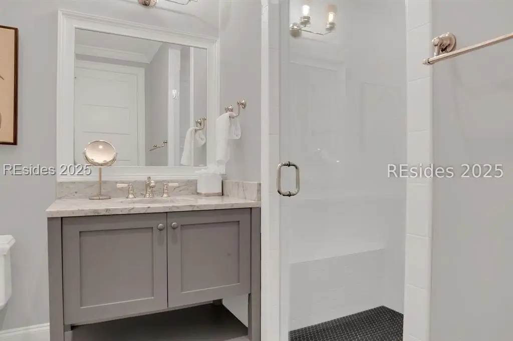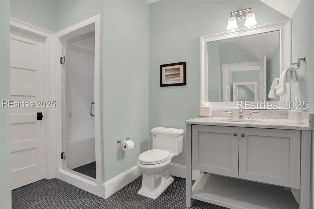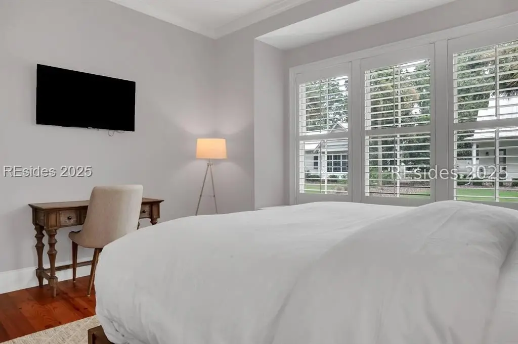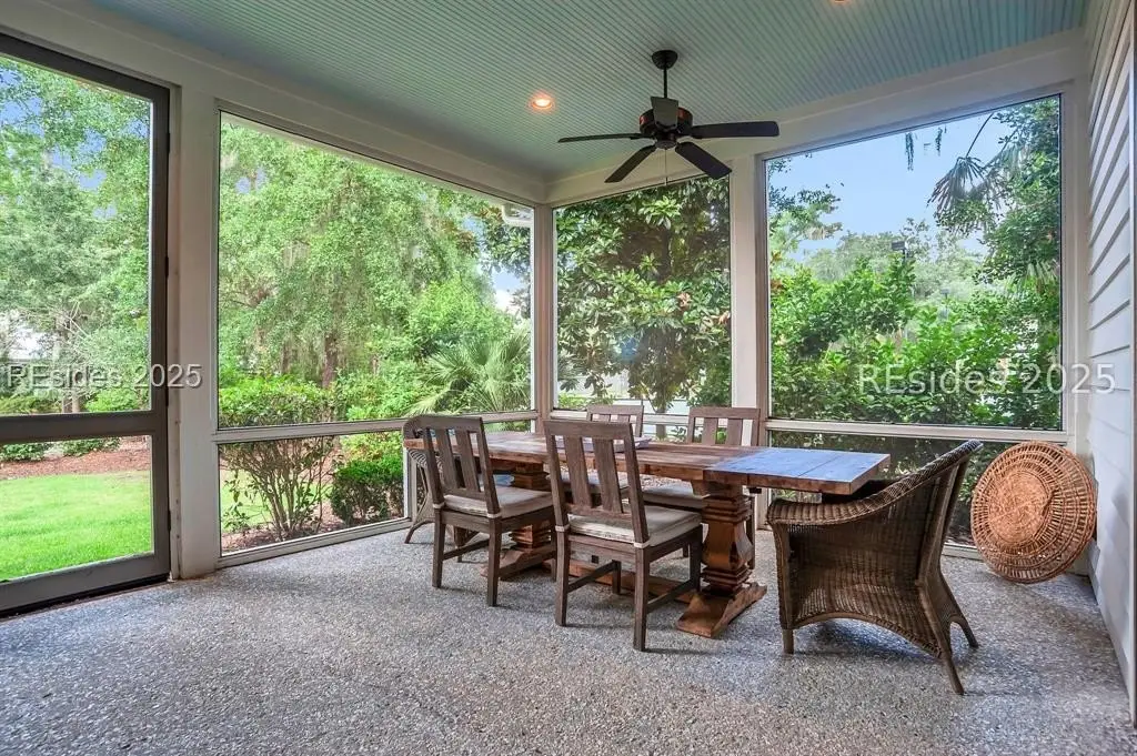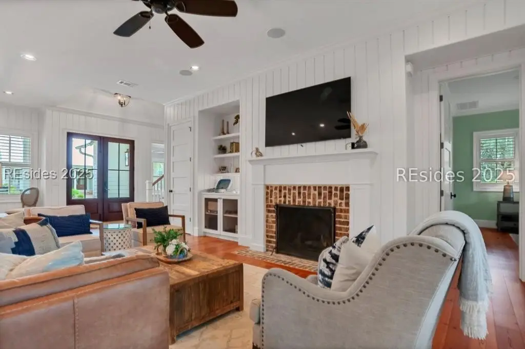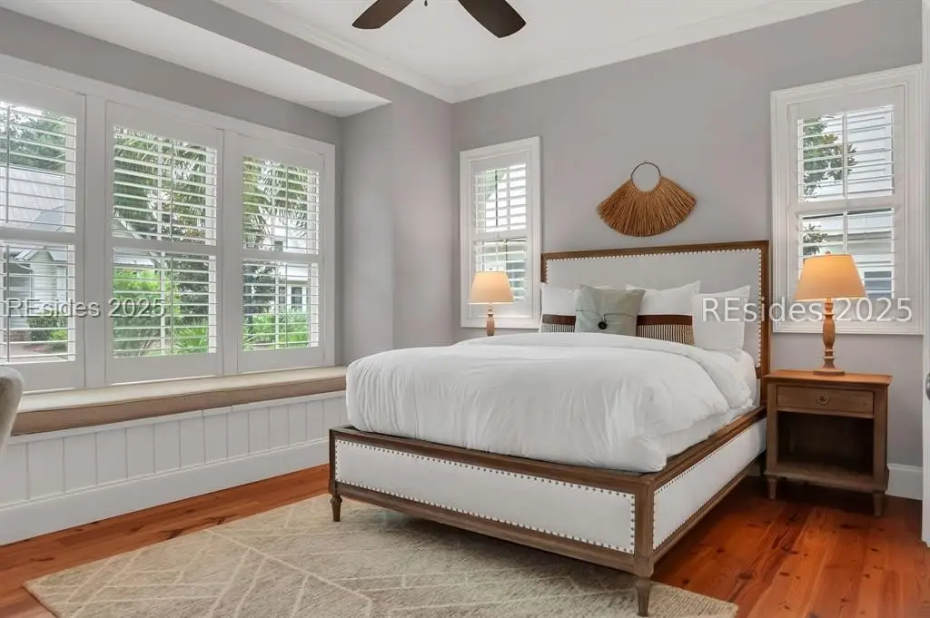 Situated within the heart of Wilson Lawn & Racquet, 5 Rumford Ln presents a Lowcountry-inspired short-term rental cottage comprising four bedrooms, a bonus room, and four bathrooms. The primary living areas exude a cottage-like ambiance, featuring a formal dining area, a brick hearth, and an open kitchen flanked by dual sliding doors. Rich accents of shiplap, Savannah brick, and knotty pine impart a sophisticated visual appeal to these main spaces. The primary suite boasts ample walk-in closets, a private bathroom equipped with a soaking tub and walk-in shower, and a spacious living area. Two full suites are situated on the second floor, along with a third guest or bonus room, and a screened patio provides year-round enjoyment.
