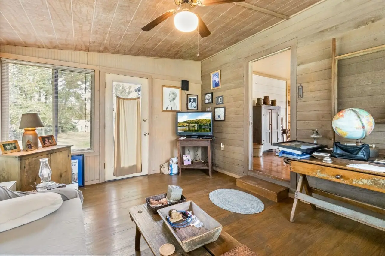 A step back in time in rural Tennessee on 14.5 acres!! Approximately 7 miles from Clarksville and 23 driving miles to Nashville! This log home was constructed originally around the 1800's in Cumberland Furnace, TN. The owner disassembled it and built it back with pine floors like the original and trims like the period of time it was in. It has been featured in magazines such as Simple Life, and Farm Bureau Women's tour of homes in 1994. There are living quarters in one building with 576 sq ft of living space. Another building is a workshop and there are two other structures and a carport. There are some wooded areas, but the land is mostly pasture land. This would make a great horse or cattle farm, a wedding venue, or bed and breakfast! The home is furnished with the same period cabinetry, flooring, and fixtures. There are additional poplar and oak logs to be able to add an another cabin that will convey with the property! Also, an additional 1.7 acre lot will only be offered with the house and land, price to be negotiated with home..