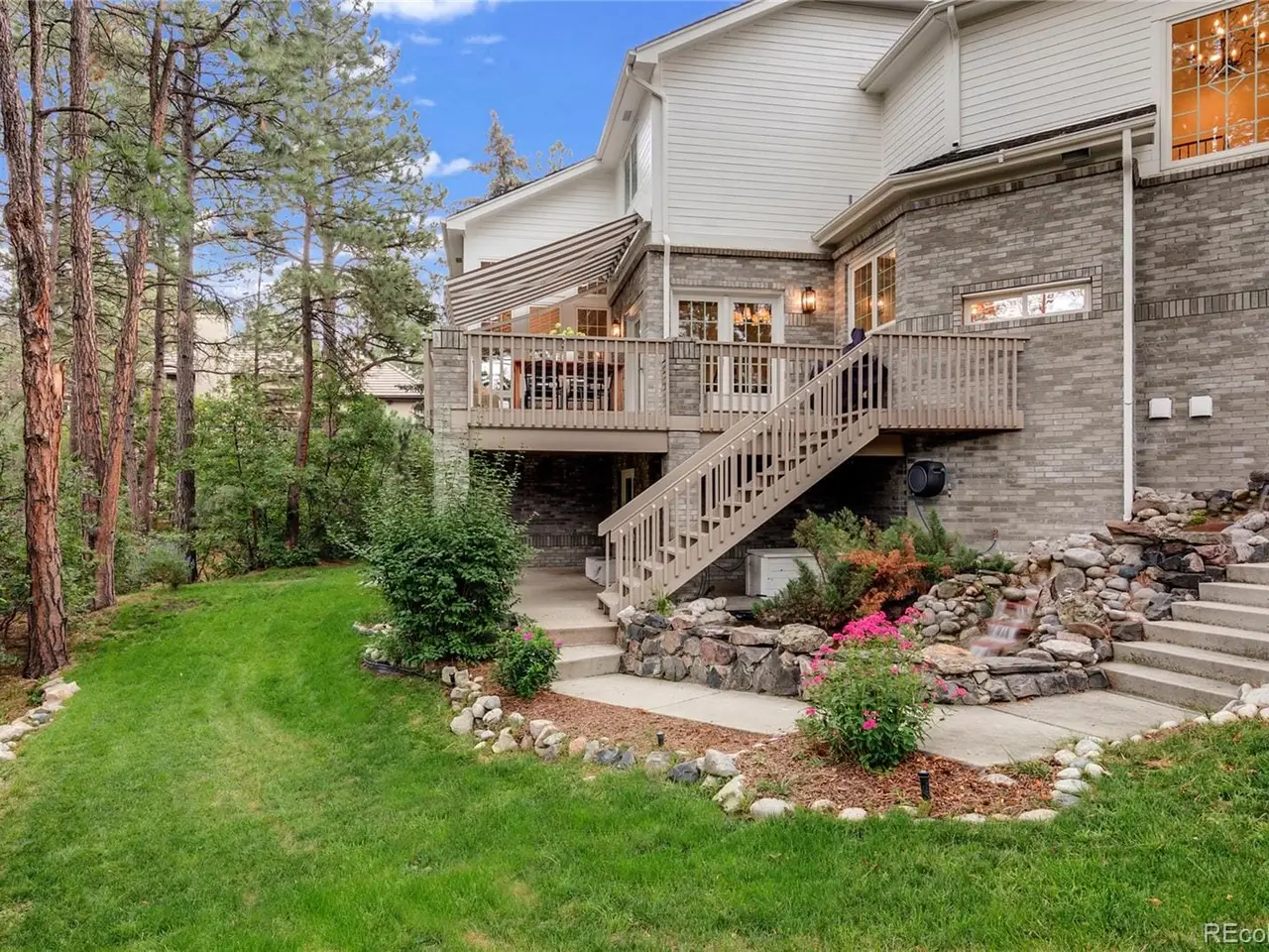 Welcome to 475 Silbrico Way in Castle Pines Village - a fully renovated, custom home built by Golden Design and reimagined top-to-bottom by Halcyon Haus Designs. Nestled on a private half-acre cul-de-sac lot surrounded by towering pines, this two-story residence combines modern sophistication with timeless craftsmanship. Step inside the soaring vaulted entry where natural white oak hardwoods, a rich designer paint palette, and a dramatic row of skylights create a bright, inviting space. The great room features a striking floor-to-ceiling stone fireplace and a showstopping floating staircase with powder-coated iron rails and reclaimed treads - an architectural statement in the heart of the home. The gourmet kitchen has been fully remodeled with top-of-the-line appliances, a cozy eat-in nook, and private access to the deck with a new retractable awning. The main floor also offers a private office, dual staircases, with new hardwoods extending across the main and upper levels. Designed for both comfort and convenience, the home includes a reverse osmosis system, integrated smart-home technology, and Sonos throughout. The lower level offers full in-law living with its own kitchen, radiant floors, and a theater featuring a 120-inch projection screen. Outdoor living is just as refined, with fresh exterior paint, water feature, new circular brick patio with fire pit and multiple private decks. Upstairs, four spacious bedrooms include the serene primary suite - a true retreat with marble-surround fireplace, mood lighting, and a spa-inspired ensuite bath. Living in Castle Pines Village means enjoying more than just a home- it’s a lifestyle. Residents have access to multiple pools, private walking trails, exercise and fitness facilities, playgrounds, and championship golf, along with social memberships and community events-all within the security of a 24-hour manned and gated community. Just minutes away, you’ll find local favorites like Tonys Market, dining, & boutique shopping.
