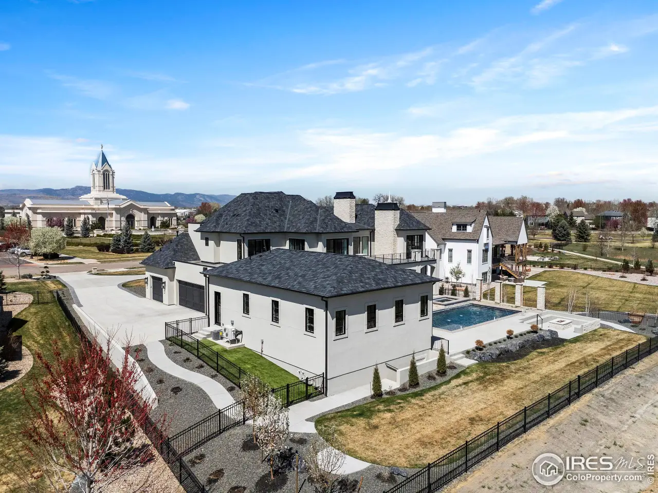 Welcome to this meticulously designed home where every detail has been carefully considered & fulfilled. From the moment you enter, your eye will be drawn to the stunning 2 story view directly out the back windows spanning from floor to ceiling. Just incredible! Main level showcases sitting and office rooms, separate dining, remarkable living area featuring those awe-inspiring views of the pool and open space. Gourmet kitchen features stainless steel Wolf appliances, double oven (steam), double dishwashers, subzero fridge/freezer, Milarc cabinetry, custom pullouts, marble countertops, pellet ice machine. Glass sliders open to outdoor area creating a seamless indoor-outdoor experience. Main level also has a private suite featuring double doors opening directly to the hot tub/pool area. Second floor, you'll find 3 bedrooms, including a wonderful Primary retreat with sitting area opening to the deck, a place you're sure to find serenity. Relax in large soaker tub, walk-in steam shower, seated make-up space and heated flooring. Dual primary closets provide more than enough space to comfortably store your necessities, but also display your special collections. 2 additional bedrooms with en-suite baths, convenient second laundry room currently equipped with dry cleaning station, lounge-loft area. Basement features home gym unlike any other! Spa room currently featuring sauna and cold plunge. Massive room for media or entertainment, built in kitchenette area. This home is ideally located in SE Fort Collins, backing to 14 acres owned by the 8 homeowners who live on Majestic Dr. Here, the homeowners can enjoy tennis, pickleball, basketball, picnic area and walking path. There is a monthly HOA fee of $380 which includes watering & maintenance of the 14 acres. To the west of the home are endless front range views as well as a temple in which some say is the most beautiful building in Colorado, where the grounds/gardens are most beautiful and open for you to enjoy all year!