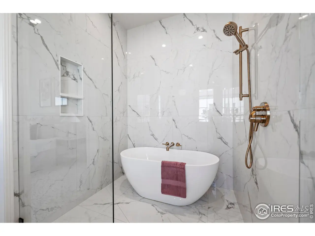 • Soaker tub, steam shower, and heated flooring in primary bathroom