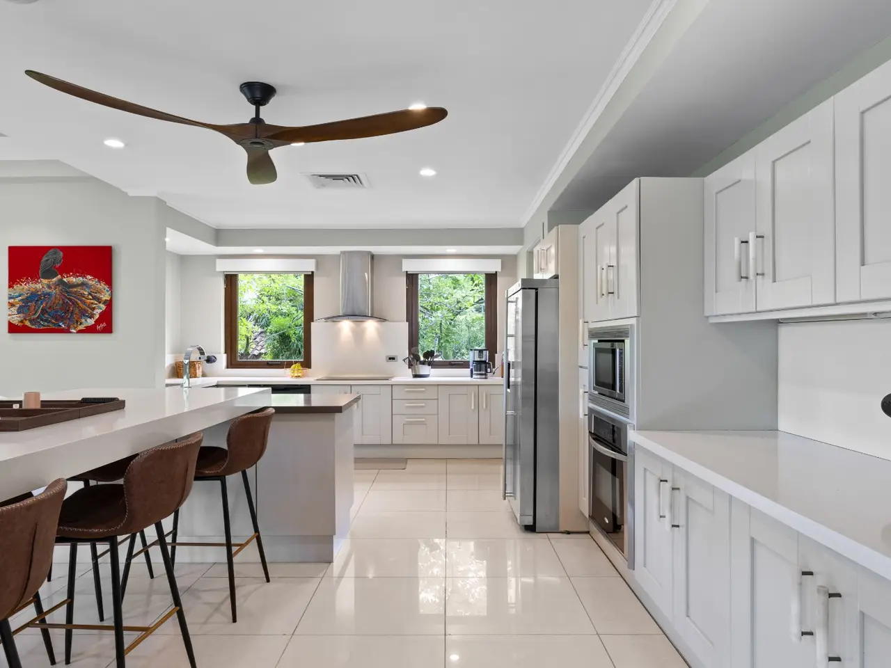 Welcome to Villa Carao #11, a sophisticated sanctuary located within the exclusive and gated Reserva Conchal community—one of Costa Rica’s premier luxury beach and golf resorts. This exquisitely renovated 4-bedroom, 4.5-bathroom villa spans over 6,781 sq ft (630 m²) across two thoughtfully designed levels, offering elegant indoor-outdoor living with spectacular golf course views and upscale amenities throughout. Refined Living Spaces The heart of the home features a bright, open-concept layout with high-end finishes, LED lighting, and elegant custom woodwork. A newly remodeled chef’s kitchen is outfitted with top-of-the-line appliances, two sink areas, abundant cabinetry and expansive countertops. It is ideal for culinary entertaining! Seamlessly connected to the interior, the lower level's expansive covered veranda invites space for outdoor dining and serene lounging with panoramic views of the Robert Trent Jones II–designed golf course. Whether sipping coffee at sunrise or hosting a sunset gathering, the setting is nothing short of spectacular. Private Bedroom Suites Each of the villa’s four bedrooms offers privacy, comfort, and style—each with its own ensuite bathroom: • The primary suite on the main level boasts a King bed, oversized walk-in closet, private terrace, and spa-inspired bathroom with skylit shower and two-person Jacuzzi tub. • A second main-level bedroom features a loft bed with a desk and garden views. It offers extra closet space. • Downstairs, a spacious guest suite includes two Queen beds, a sleeper sofa, and terrace access • Last, the 4th bedroom is currently being used as an office. Each has its own private bathroom with a convenient exterior door for poolside access. Luxury Outdoor Entertaining Designed for the ultimate in relaxation and entertaining, the villa’s outdoor living area features: • A newer custom pool and jacuzzi surrounded by lush tropical landscaping • A state-of-the-art summer kitchen with BBQ, dishwasher, and outdoor dining • Electric privacy blinds that convert the terrace into an enclosed, breezy living room • Hammocks, sun loungers, outdoor shower, and beautifully maintained gardens (HOA includes landscaping and irrigation) Additional highlights include a full generator (covered by HOA), custom electric blinds and LED lighting throughout, and generous walk-in closets for ample storage. A secondary entertainment kitchenette on the lower level offers double ovens, a wine and beverage refrigerator, and extensive storage. It is perfectly positioned for effortless poolside hosting! Lifestyle & Location As a privileged owner of Reserva Conchal, you gain exclusive access to: • A 60,000 sq ft private Beach Club with infinity pool and fine dining • A world-class fitness center, hiking and biking trails, dog park, and skate park • Stand-up paddleboards, kayaks, bikes, billiards, and nearly daily events • Discounts at 13 restaurants and 2 spas, plus vibrant community volunteer opportunities Ideally located just 2–10 minutes from the top international schools (La Paz, CRIA, Educarte), and only 1 hour from Liberia International Airport, Villa Carao #11 offers both unmatched convenience and a front-row seat to the best white sand beach in the region—Playa Conchal. Villa Carao 11 isn’t just a home—it’s a lifestyle. Don’t miss your chance to own a luxury golf villa in Costa Rica’s most coveted resort community. Schedule your private tour of Villa Carao #11 today.