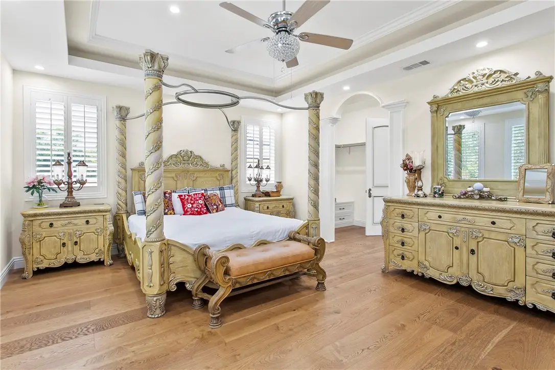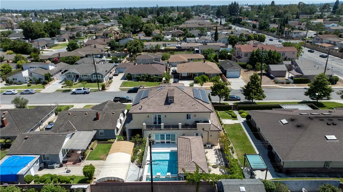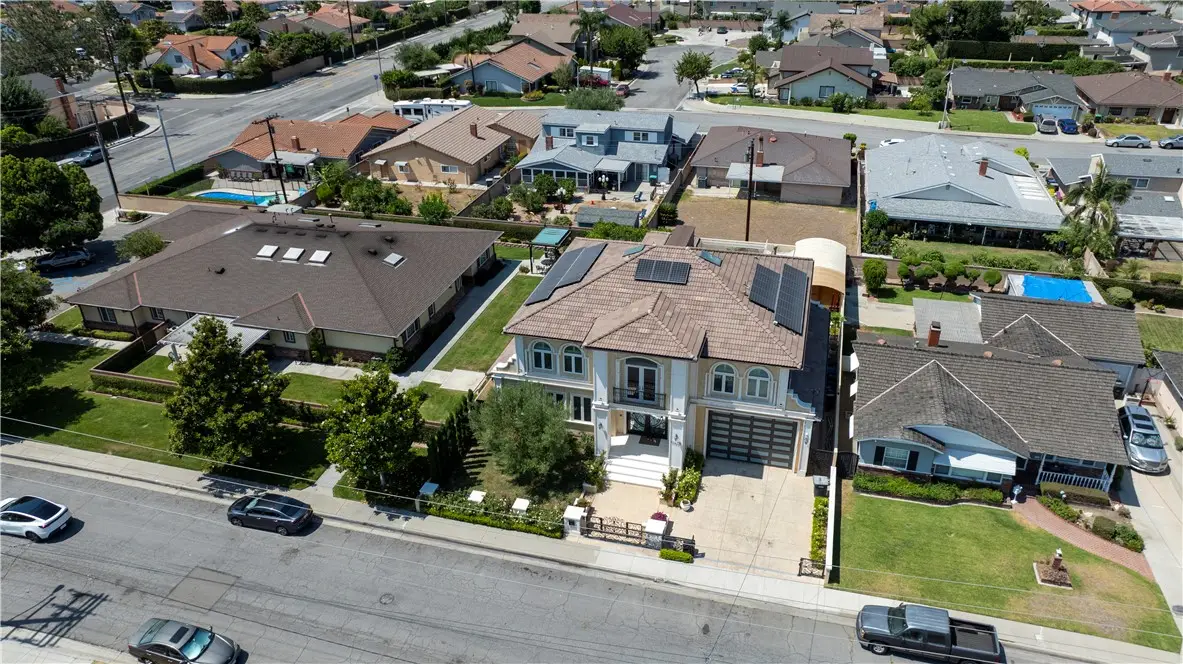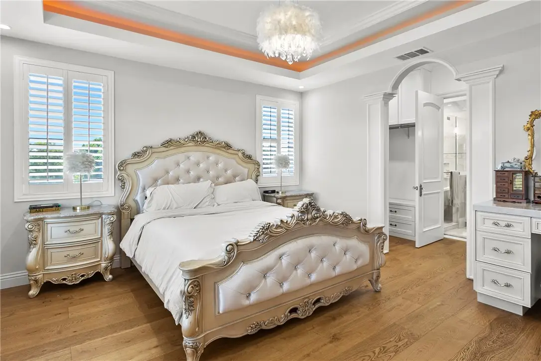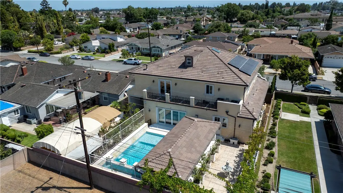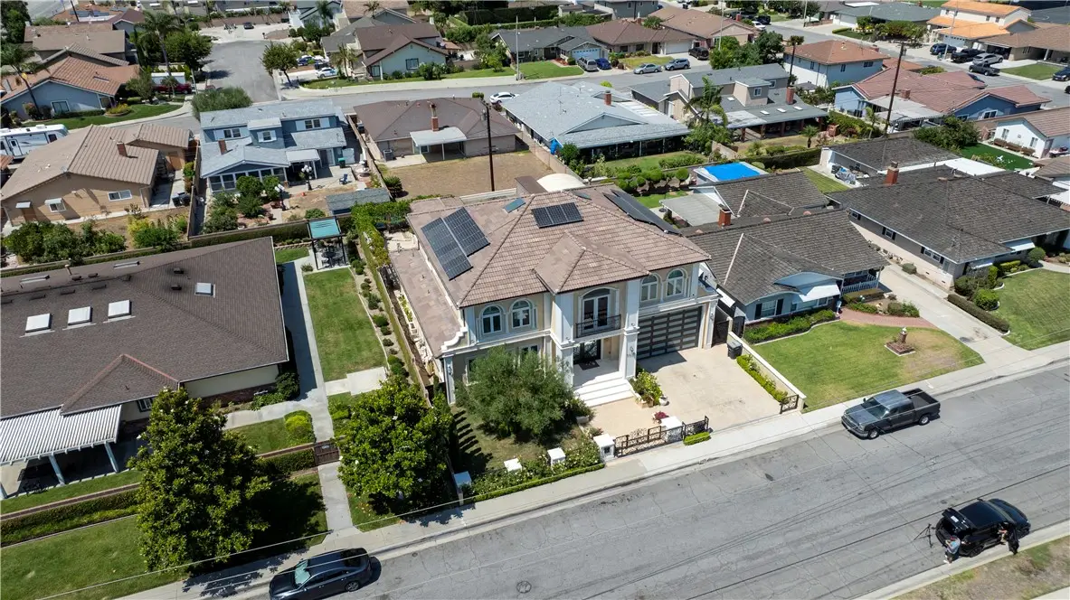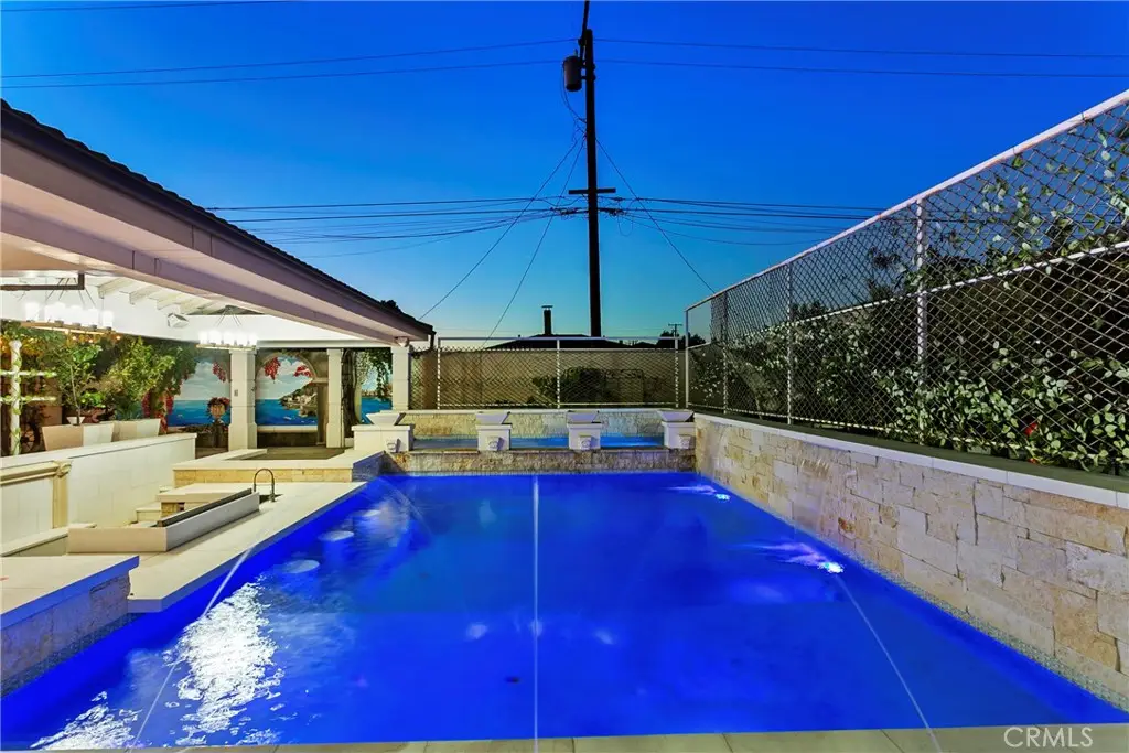 Stunning Mediterranean-Style Luxury Smart Home, Custom Built by Loving Father for Family. This extraordinary custom-built home blends top-tier craftsmanship with unparalleled comfort, style, and functionality, offering a fully integrated Smart Home experience and every amenity imaginable for modern luxury living. Every inch of this home was built with meticulous care and loving devotion. Inside, you'll find solid-core 8 ft tall wood doors, dual-pane fiberglass windows, high-end wood & stone flooring, coffered 10 ft tall ceilings, custom-built crown moldings, golden accents, and an intercom system throughout rooms. In Living Room built into wall is Custom See-Through Salt Water Fish Tank with Exotic fish! Upon entering is wonderful Art Wall depicting landscape and concrete branch design with molded flowers-- A Delightful Artistic Touch. All Bedrooms are Master Bedrooms, featuring en-suite baths, free standing tubs in showers, wet room, Crema Merfil bathroom counters, decorative soffits, walk-in closets, chandeliers, LED remote controlled ceiling lights, bluetooth speakers, and casement double-pane windows with shutter blinds. Upstairs Master Suite features two walk-in closets, gas fireplace, jacuzzi tub, balcony overlooking Oasis, and the Most Enchanting Custom-Design Ceiling Decor! Ceiling above Master Suite jacuzzi is beautiful Venetian Plaster with Golden Veins. Gorgeous Gourmet kitchen with expensive Quartz counters, high-end stove with pot filler and hood, beautiful built-in cabinets in Antique White, spice drawers, eating bar, and thick, durable glass sliding pocket doors overlooking the pool. Enjoy a lush salt-system pool and adjacent jacuuzzi all year long, with water-heating system and waterworks all controlled via phone-- including waterfall, water jets, and underwater LED color-changing lights. Beneath the cabana held up by custom murals is a built-in BBQ with mini fridge, installed bluetooth speakers, and Baja with built in bar stools. Elaborate Smart Home System nestled out of sight, yet easily accessible, manages all features of the home, which YOU can easily control via cell phone! 3 Car Garage includes RV hook ups and Electric Car Charger. A Variety of fruit trees are planted in large pots-- already giving fruit! Access to Bonus Room is in upstairs laundry room. And to wrap it all up, an Underground Lock Safe is nestled below 8 inches of concrete for secure, personal use. This House has it all. Truly, a One-of-a-Kind Home.