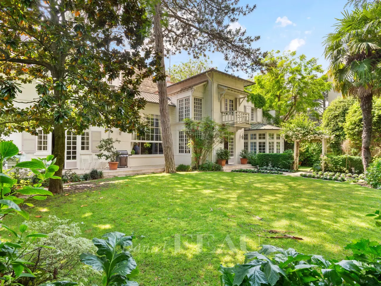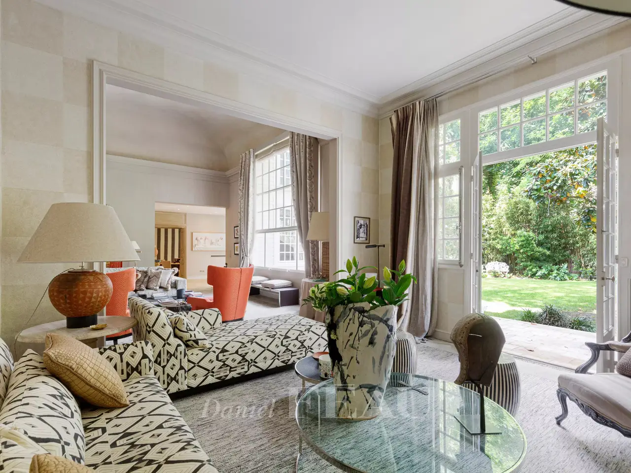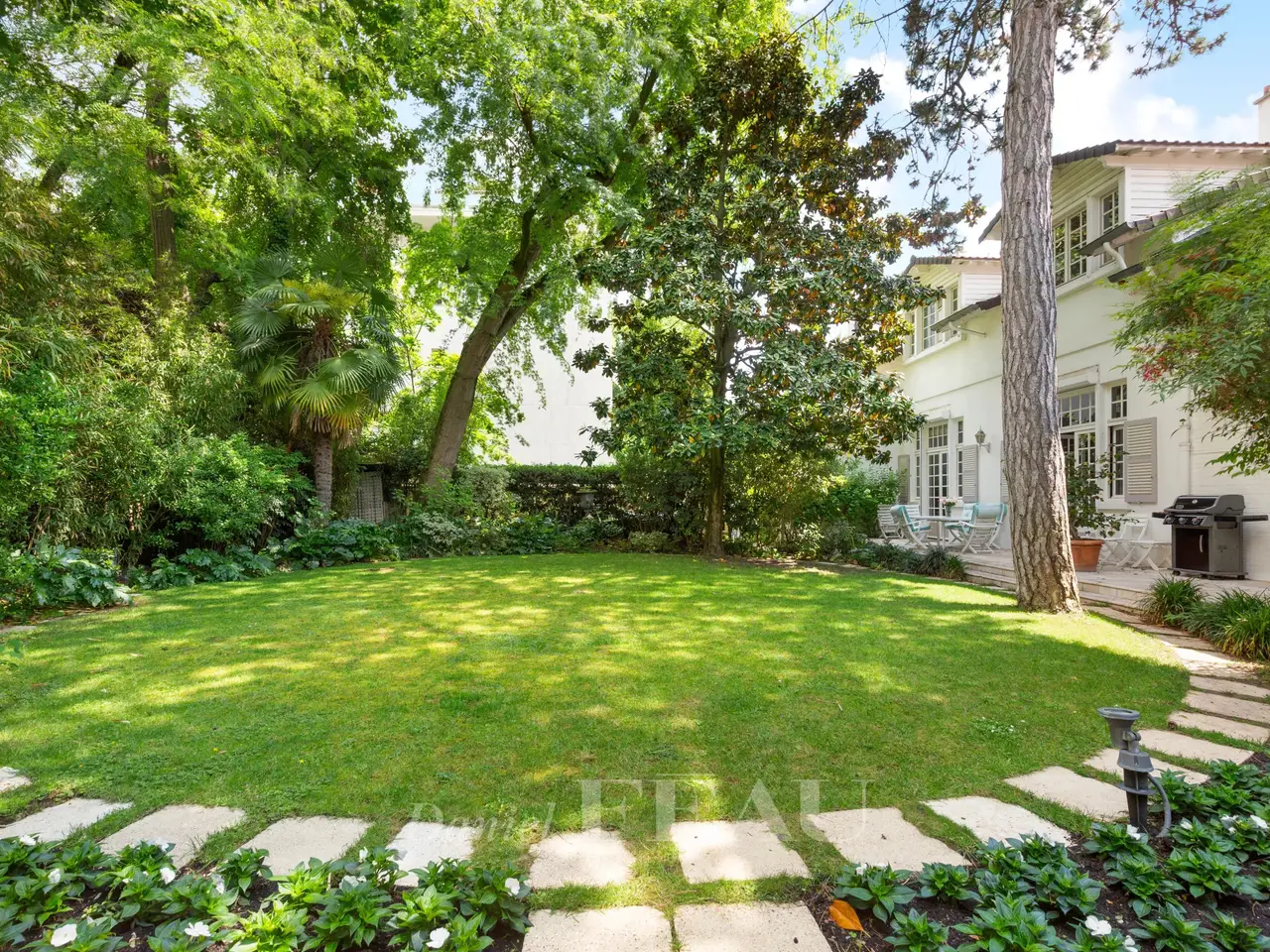 This superb property hidden from view in a secure co-ownership with a caretaker benefits from an entirely enclosed near 500 sqm garden. About 500 sqm of living space includes an entrance hall with a cloakroom and a guest toilet, two adjoining living/reception rooms featuring 6-metre high ceilings and fireplaces, a dining room, a kitchen with a skylight and a dining area, and an air-conditioned master suite with a bathroom and dressing rooms. Accessed from both sides of the ground floor, the upper floor comprises five bedrooms and three bathrooms. A further bedroom featuring exposed beams is on the top floor. The basement comprises a utility room, technical premises and storage rooms. A workshop is adjacent to the main house. With two basement parking spaces, and outdoor parking space for a further two cars. An exceptional property on the north-western edge of the capital.