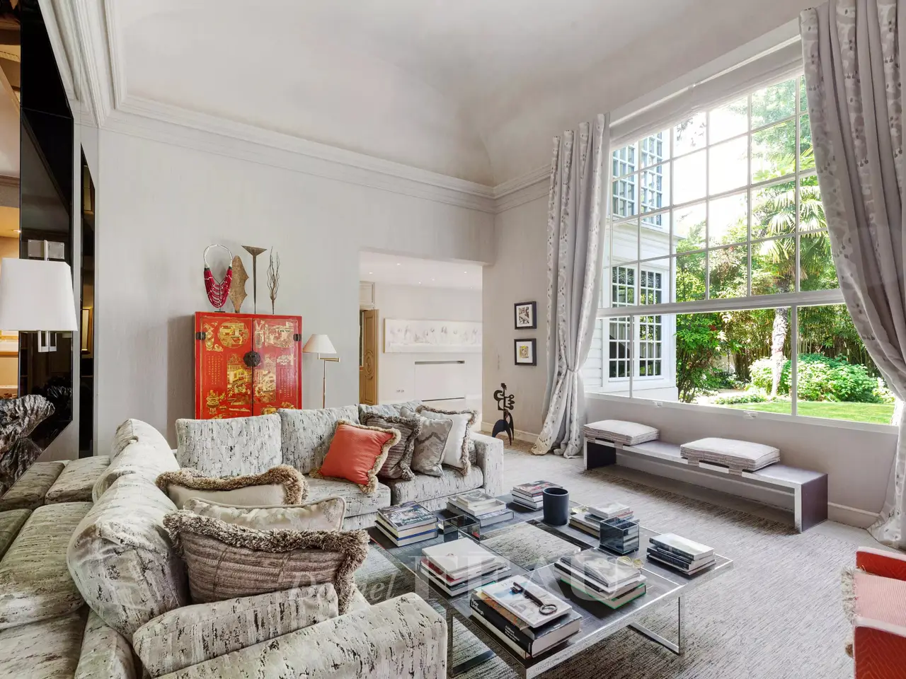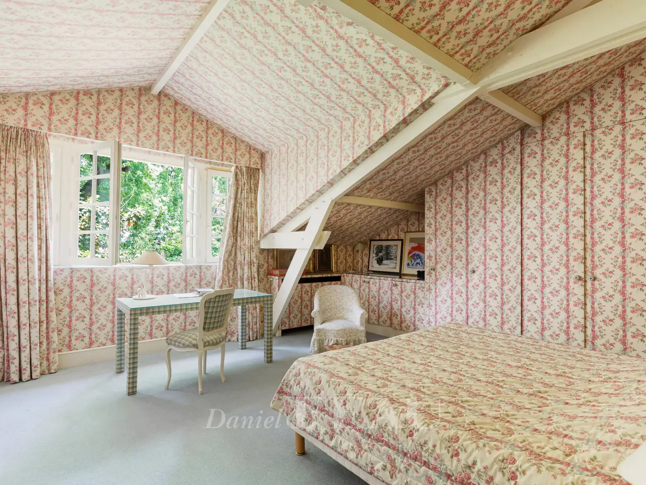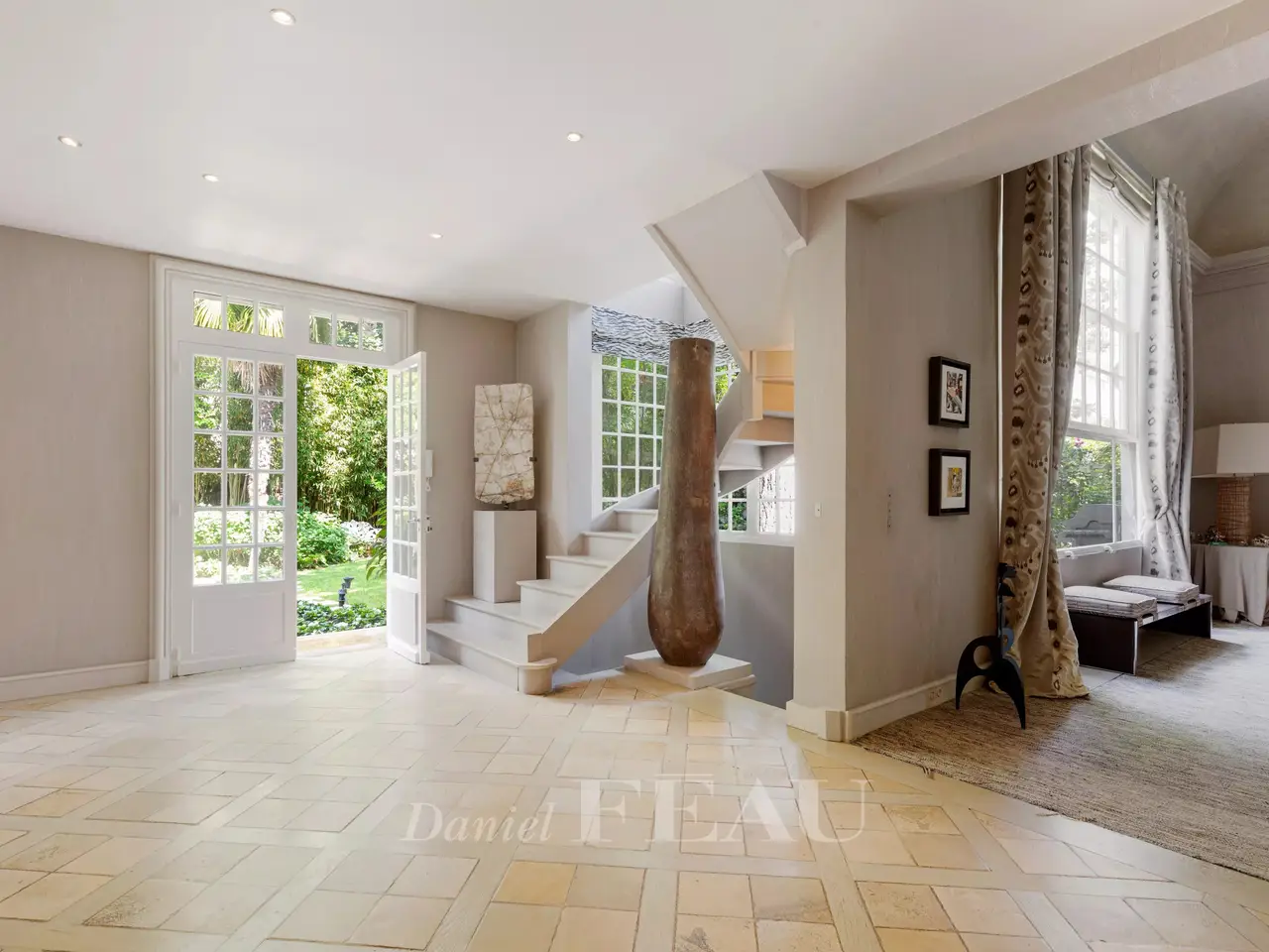 This superb property hidden from view in a secure co-ownership with a caretaker benefits from an entirely enclosed near 500 sqm garden. About 500 sqm of living space includes an entrance hall with a cloakroom and a guest toilet, two adjoining living/reception rooms featuring 6-metre high ceilings and fireplaces, a dining room, a kitchen with a skylight and a dining area, and an air-conditioned master suite with a bathroom and dressing rooms. Accessed from both sides of the ground floor, the upper floor comprises five bedrooms and three bathrooms. A further bedroom featuring exposed beams is on the top floor. The basement comprises a utility room, technical premises and storage rooms. A workshop is adjacent to the main house. With two basement parking spaces, and outdoor parking space for a further two cars. An exceptional property on the north-western edge of the capital.