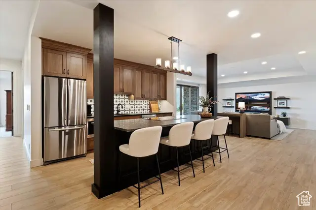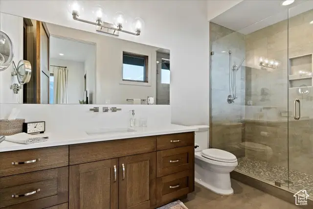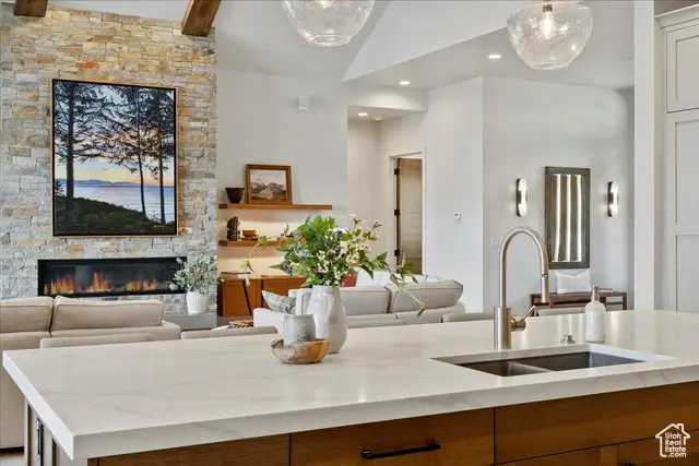 Tucked into the quiet enclave of Durfee Creek Estates, this five bed, five bath mountain retreat balances elegance, function, and the beauty of Ogden Valley's surroundings. With 1.21 acres of privacy backing forested open space, the home embraces its Wasatch Mountain setting in every season-snowy peaks, golden aspens, or lush summer greenery. Inside, natural light floods the great room through expansive windows that frame uninterrupted views of North Fork. Beautiful 7.5 wide plank engineered wood floors anchor the living spaces, while the chef's kitchen, with quartz countertops and a butler's pantry, flows seamlessly to a covered deck-perfect for gathering, dining, or simply soaking in the view. The primary suite offers a spa-like escape with a luxurious steam shower, while the walk-out lower level adds versatility with its own kitchenette - ideal for guests or extended family. Practical luxury defines the home with a heated garage featuring an epoxy floor, whole-house water filtration, surge protector, backup generator, and heat tape. A durable metal roof and oversized garage ensure lasting comfort and peace of mind. Outdoors, covered patios and low-maintenance landscaping extend living into the mountain air. Facing the Wasatch Mountains, this retreat also includes the option to expand: the neighboring 1.4-acre lot, available with engineered plans and a Liberty Pipeline C share. Minutes from world-class skiing, Pineview Reservoir, and endless trails, this home is where mountain serenity and year-round adventure meet in perfect harmony. All property information, boundaries and documents to be verified by buyer.