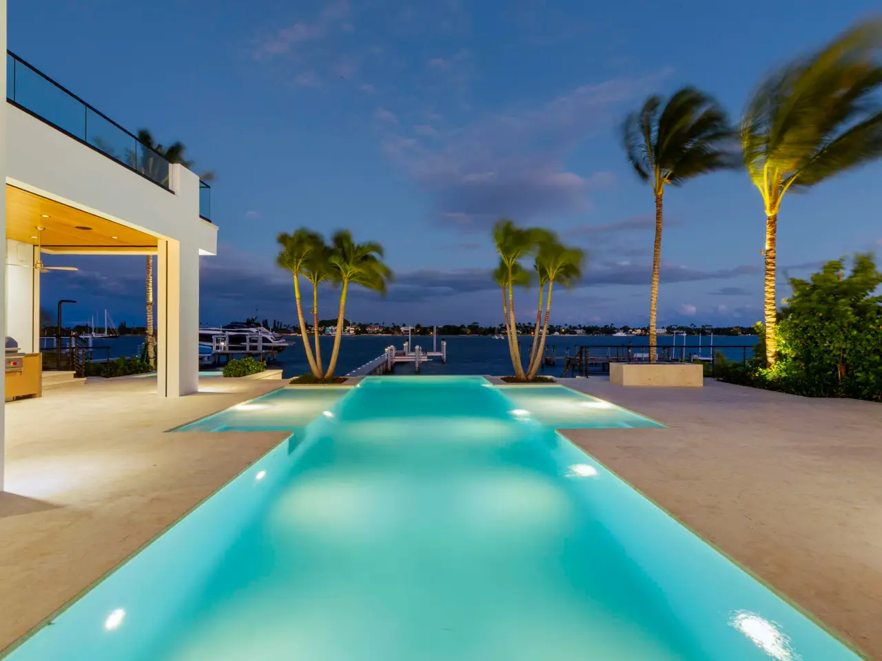 Spectacular new modern waterfront estate on the Intracoastal in West Palm Beach. Designed by architect David Lawrence, this 2024-built residence offers 12,730 total SF with 8,540 SF under air, featuring 7 bedrooms, 8 full baths, 2 half baths, elevator, 40' saltwater pool, spa, rooftop decks, fire pits, and summer kitchen. Elevated 10' above sea level on a 20,000 SF lot with 80' of direct waterfront, dock with 50k lb lift, no fixed bridges, and ocean access. Chef's kitchen, multiple living areas, media room, sauna, and in-law suite. Impact glass, 150KW whole-house generator, 3-car garage, and security system. No HOA. Minutes to beaches, Palm Beach Island, The Square, and PBI. A true Intracoastal showpiece.