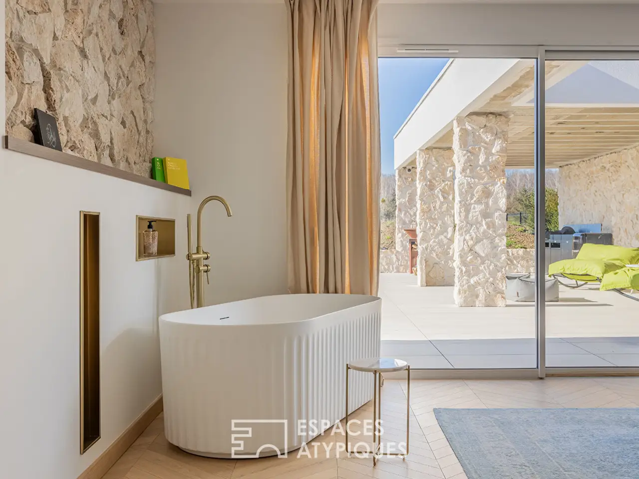 Located in a sought-after residential area on the edge of the golf course, this contemporary single-storey villa offers 252 m2 of living space on a wooded plot of over 16 acres. Designed to offer optimal comfort, it boasts unobstructed views, a swimming pool, a finished basement and a spacious terrace that blends seamlessly with the house and its surroundings.The interior layout emphasises spaciousness and fluidity, enhanced by high-end features and materials. The entrance opens onto a light-filled living area, centred around a lounge, an open-plan kitchen and a dining area facing the garden and swimming pool. The layout allows for fluid movement, conducive to a convivial lifestyle. A large master suite offers a comfortable sleeping area with a bathroom equipped with a double shower, a bathtub and a custom-made dressing room. Two other bedrooms, each with their own bathroom, complete this sleeping area, ensuring privacy for each occupant. A laundry room completes the everyday functionalities. In the basement, a wine cellar and a gym add a leisure and relaxation area to this already very complete house. A double garage and two parking spaces complete the amenities.Outside, the spacious 150 m2 terrace naturally extends the living spaces towards the garden, which is ideally exposed. The wooded grounds invite you to relax. The swimming pool, set in a green environment, is a major asset for enjoying sunny days. The property benefits from a quiet location, while being close to shops, schools and transport links, allowing you to reach Metz in a few minutes.This exceptional property stands out for its clean lines, meticulous finishes and rare location in a sought-after area. A unique property, both functional and elegant, which will appeal to lovers of modern spaces, open to nature, and looking for a peaceful living environment just a stone's throw from the city.Shops and leisure activities in the villageNursery, primary and secondary schools 3 minutes away by carSchool complex in Montigny-Les-Metz 14 minutes away by carHigh school in Metz 16 minutes away by carENERGY CLASS: A / CLIMATE CLASS: AConstruction dating from 2023.Building compliant with RE 2022 within the meaning of ThBCE.REF. 445Additional information* 5 rooms* 3 bedrooms* 3 bathrooms* Outdoor space : 1660 SQM* Parking : 2 parking spacesEnergy Performance CertificateEPC : 43 kWhEP/m2.year* A 450GHG : 5 kgeqCO2/m2.year* A 80Agency feesThe fees include VAT and are payable by the vendorMediatorMediation Franchise-Consommateurswww.mediation-franchise.com29 Boulevard de Courcelles 75008 ParisInformation on the risks to which this property is exposed is available on the Geohazards website : www.georisques.gouv.fr