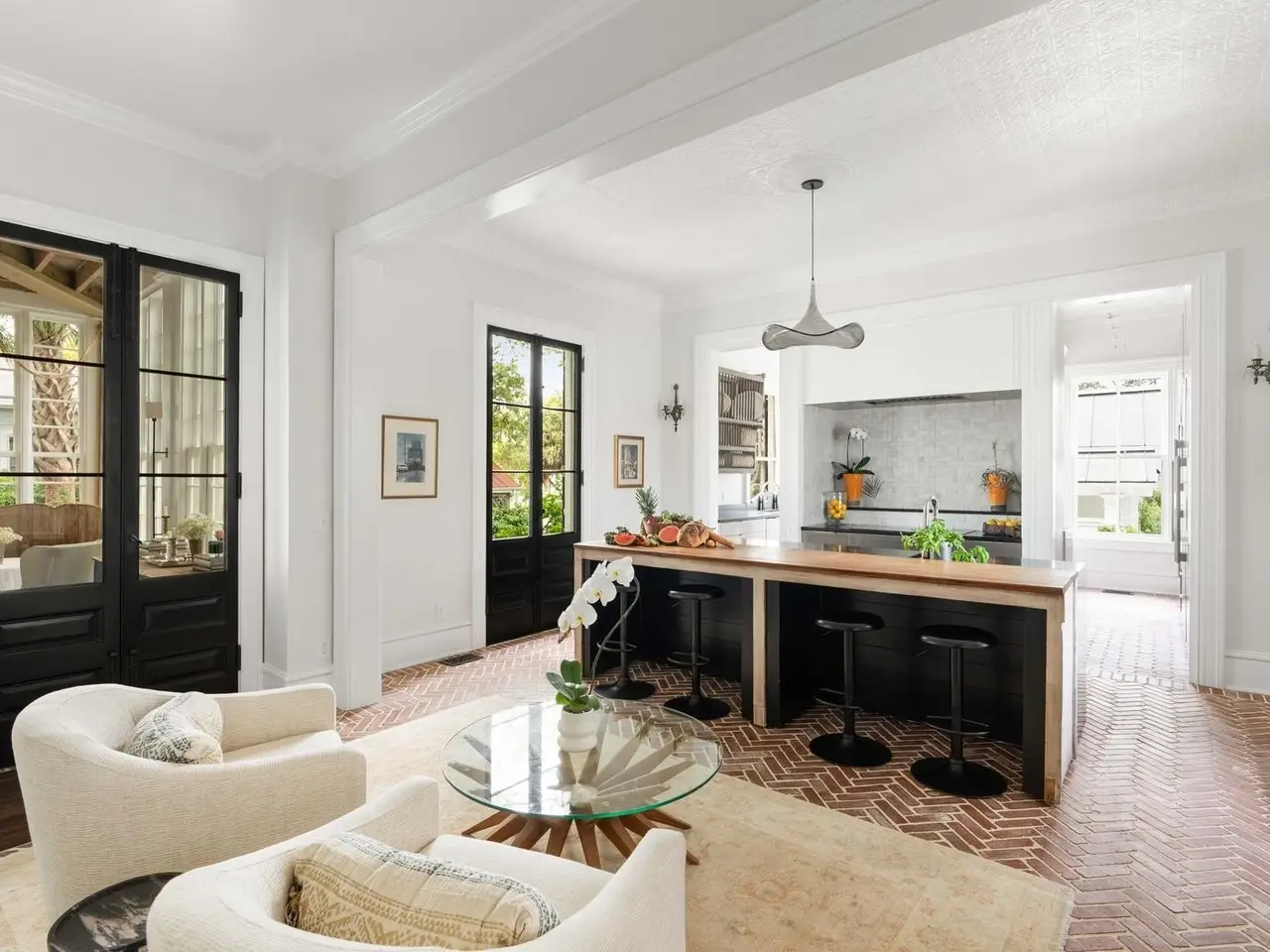 On one of Sullivan's Island's quietest oak-lined streets, steps from the beach, stands a piece of history. Originally constructed in 1900 by the Army Corps of Engineers, this storied home stands watch as island life reveals itself, holding fast to its original bones. Thoughtfully restored, its character remains intact--pressed-tin 11-foot ceilings, vertical grain heart pine floors, original chandeliers, and five working fireplaces, every update made with modern living in mind. Spanning more than 6,000 square feet across three levels, the residence offers six bedrooms and five-and-a-half baths, with bedrooms opening onto wraparound porches that capture ocean breezes directly from the Atlantic.Rooms framed by beautiful crown moulding are made all the more beautiful by the sunlight pouring through 11' walls of floor to ceiling windows. The renovated kitchen is both soulful and state-of-the-art: Granite countertops, Moroccan zellige tile, an antique island topped with a Murano glass light fixture, and professional-grade Thermador appliancesincluding twin refrigerators, double ovens, wine fridge, freezer, and nugget ice machine. Outside, the grounds unfold like a private garden estate. Mature oaks stretch overhead, palms sway in the salt air, and citrus trees brighten the landscape. A crushed oyster shell dining terrace invites long evenings under the stars, while a historic cistern tells the story of another era. The utility shed and carport stand ready to support your island adventures, along with a whole-house generator for peace of mind. This beautiful home, set within the Officers' Quarters district, balances serenity with convenience better than any on the island: the beach, tennis and pickleball courts, island restaurants, public boat ramp and Downtown Charleston all close at hand. Yet here, on this high ground shaded by grand old oaks, quiet still reigns.
