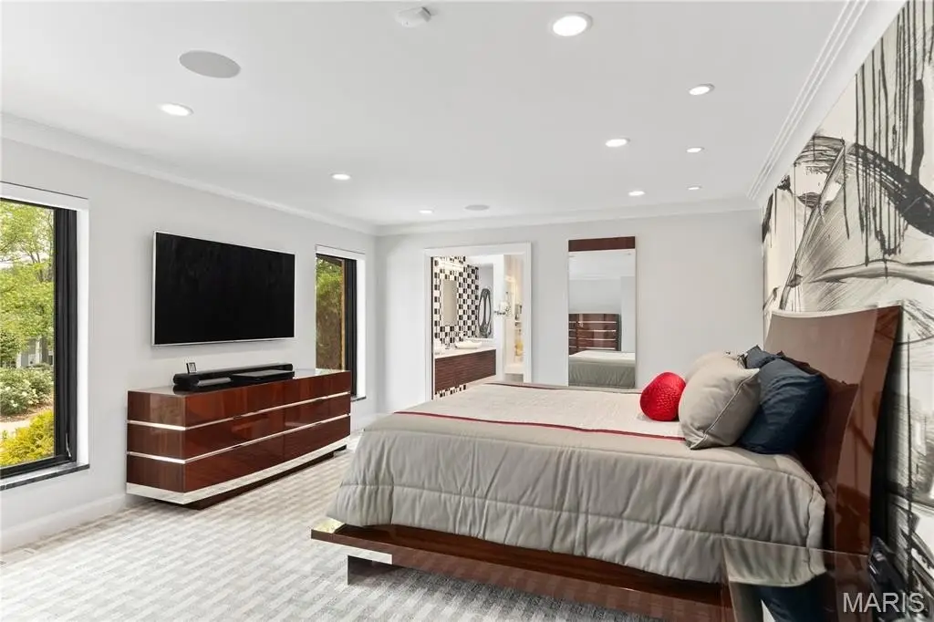 A Mid-Century Modern comprehensively reimagined, rehabbed, and rebuilt both inside and out effectively creating a 5 year new home, pool, and landscape on grounds of the prestigious Westwood Country Club. With 5BRs, 6BAs, and nearly 7,300SF of finished living area, the home pays homage to it's original architect Ralph Hohlt, while presenting a thoroughly modern masterpiece, utilizing highest levels of finish and technology for a completely turn-key experience. No amenity is left to be desired. Hallmarks include vaulted ceilings, marble and stone flooring, solid mahogany doors, low voltage smart home features including audio, video, lighting, heating, cooling, and security all controlled by touch screen or SmartPhone. The chefs kitchen showcases Zanzibar ebony and acrylic white high gloss cabinetry, Sub-Zero, Wolf, Thermador, Bosch, and Fisher & Paykel appliances with abundant accent lighting. The Primary suite expansion created a luxe bath and a room-size organized closet. The 5th bedroom suite on main level is ideally suited for in-laws or au-pair, with private exterior entrance. Lower level includes media, recreation, exercise, and game rooms, as well as a full kitchen and bath, plus abundant storage. The pool is refinished; all systems rebuilt. A pool house with full bath and shower offer additional storage. The entirety of grounds, landscaping, retaining walls, patios and circle drive have been replaced. A pergola completes the property, ideal for al fresco dining.