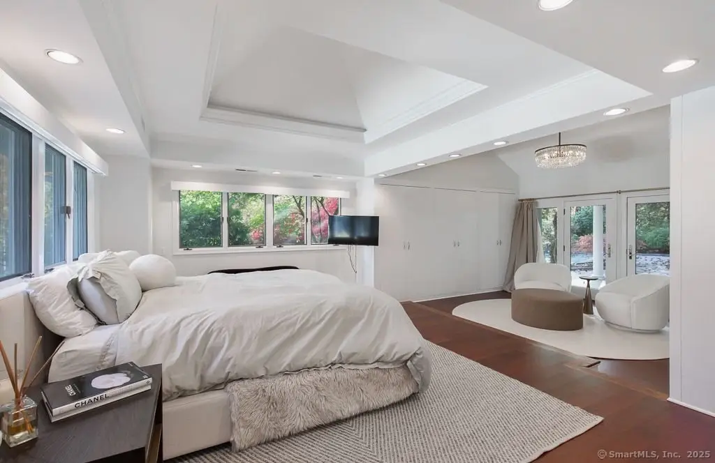 Bring the country club home with breathtaking gardens surrounding this magnificent contemporary California ranch, perfectly set at the end of a quiet cul-de-sac in one of Woodbridge's most desirable neighborhoods. You'd never guess you were just minutes from downtown New Haven while tucked away in this private nature lover's retreat backing up to the Wepawaug Falls-a series of cascading waterfalls owned by the Woodbridge Land Trust. Relax on the expansive deck and enjoy the tranquil sounds of the backyard pond and waterfall. Take a dip in the heated gunite pool with spa or host a friendly game on your private tennis/sports court. Surround sound inside and out enhances every gathering. You simply won't find another property like this in Woodbridge! Step inside and be wowed by the open, light-filled layout with vaulted ceilings, gleaming hardwood floors and designer lighting. A welcoming foyer leads to the formal living room and a spectacular great room with a custom stone fireplace and a spiral staircase to an open loft. The chef's kitchen with adjoining butler's pantry opens to a spacious formal dining room. Four generous bedrooms include a primary suite with a spa-like bath, abundant custom closets, and a private deck overlooking the grounds. Lower level adds even more living space. Conveniently located close to major highways, shops, restaurants, and Yale University.