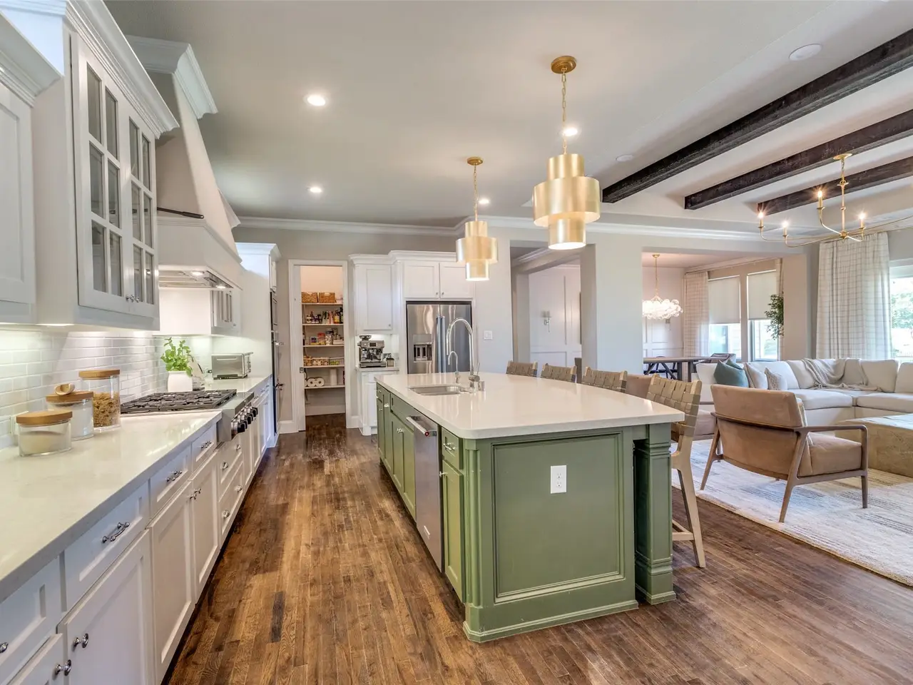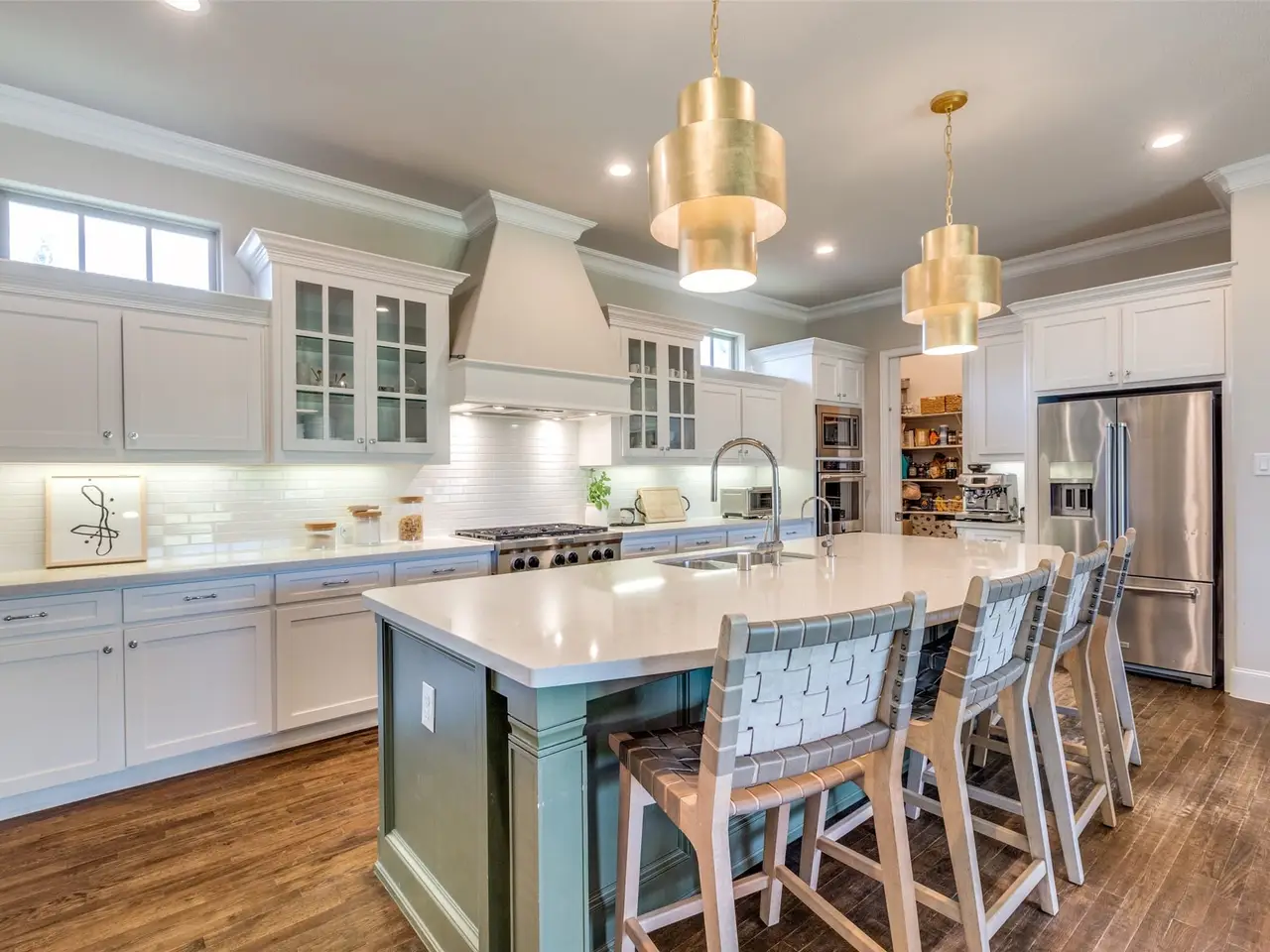 Chef's kitchen with white cabinetry