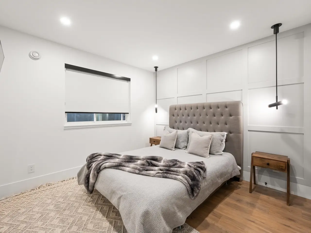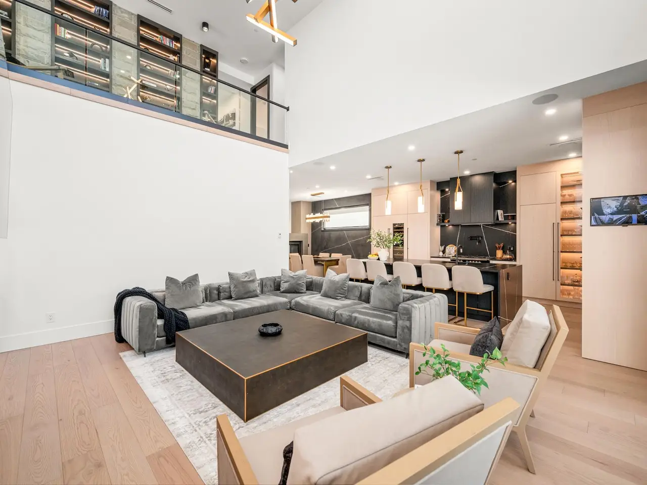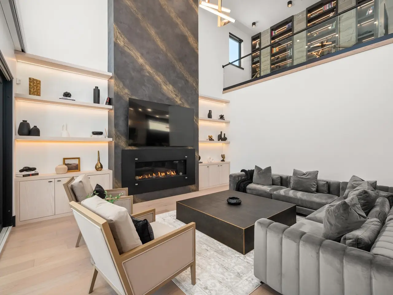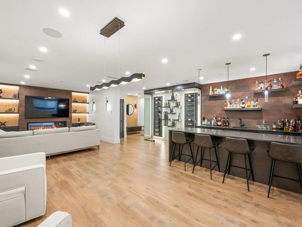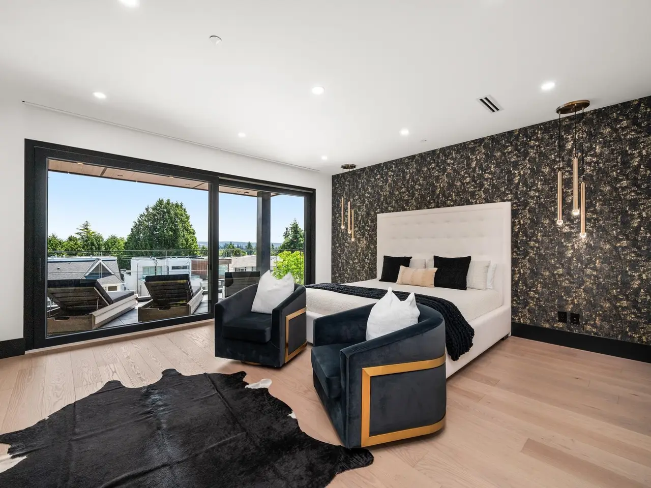Stunning design & quality construction by Rychter Custom Homes. Elegant Hardwood, floating staircase, abundant light, & extensive wood features are just the start. Spacious covered deck access from living room with view. Radiant heat, A/C, automated blinds, Control 4 - smart home, on demand H/W, Retractable B/I Vac, Shinnoki Panel Cabinetry with integrated Liebherr Fridge, wine cooler & 24" Freezer. Fisher Paykel appliances, B/I Coffee/Espresso & Steam Oven. Spice kitchen. Covered outdoor living space with built-in barbecue station. Primary suite has open glass wall to the sundeck with view of the mountains & ocean. Additional balcony off back bedroom. 1-bed legal suite is also registered with Airbnb. Basement offers rec room with wet bar, wine storage & sauna.