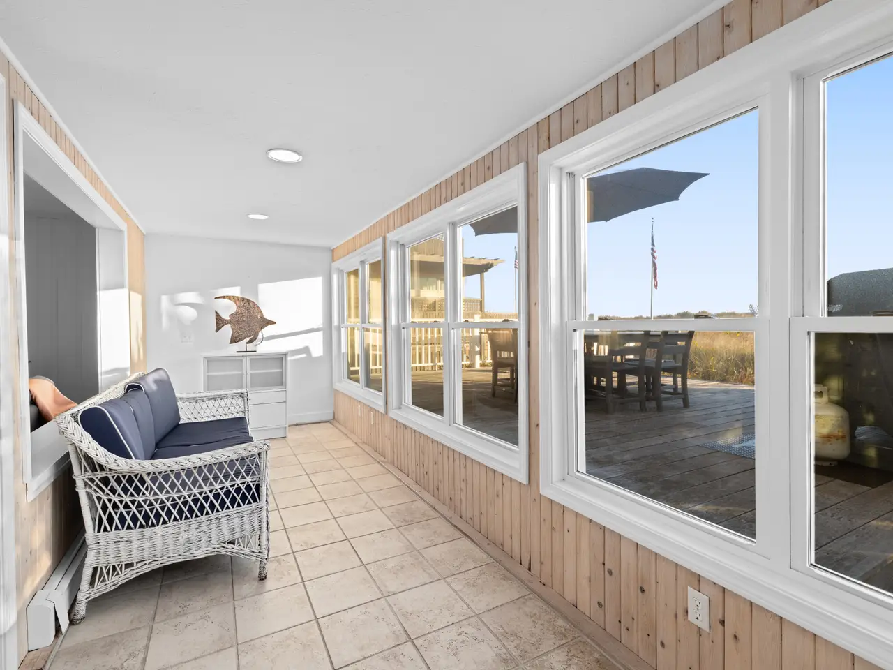 Wake up to breathtaking sunrises over Cape Cod Bay and savor serene views of the ocean and seagrass from your Garapa wood deck — the perfect spot for morning coffee or evening sunsets. Just steps from your door, the sandy beach awaits. Inside, spacious living areas blend comfort and style, featuring a living room with a gas fireplace and a sunroom with brand-new windows and tiled flooring. Thoughtful updates include natural gas heat, a whole-house generator, and a passing Title V. Outdoor shower, ample parking, and transferrable flood insurance add convenience and peace of mind. Beyond the home, enjoy an active community with a social and tennis club. With direct waterfront access, this is a true seaside escape where every day feels like vacation.