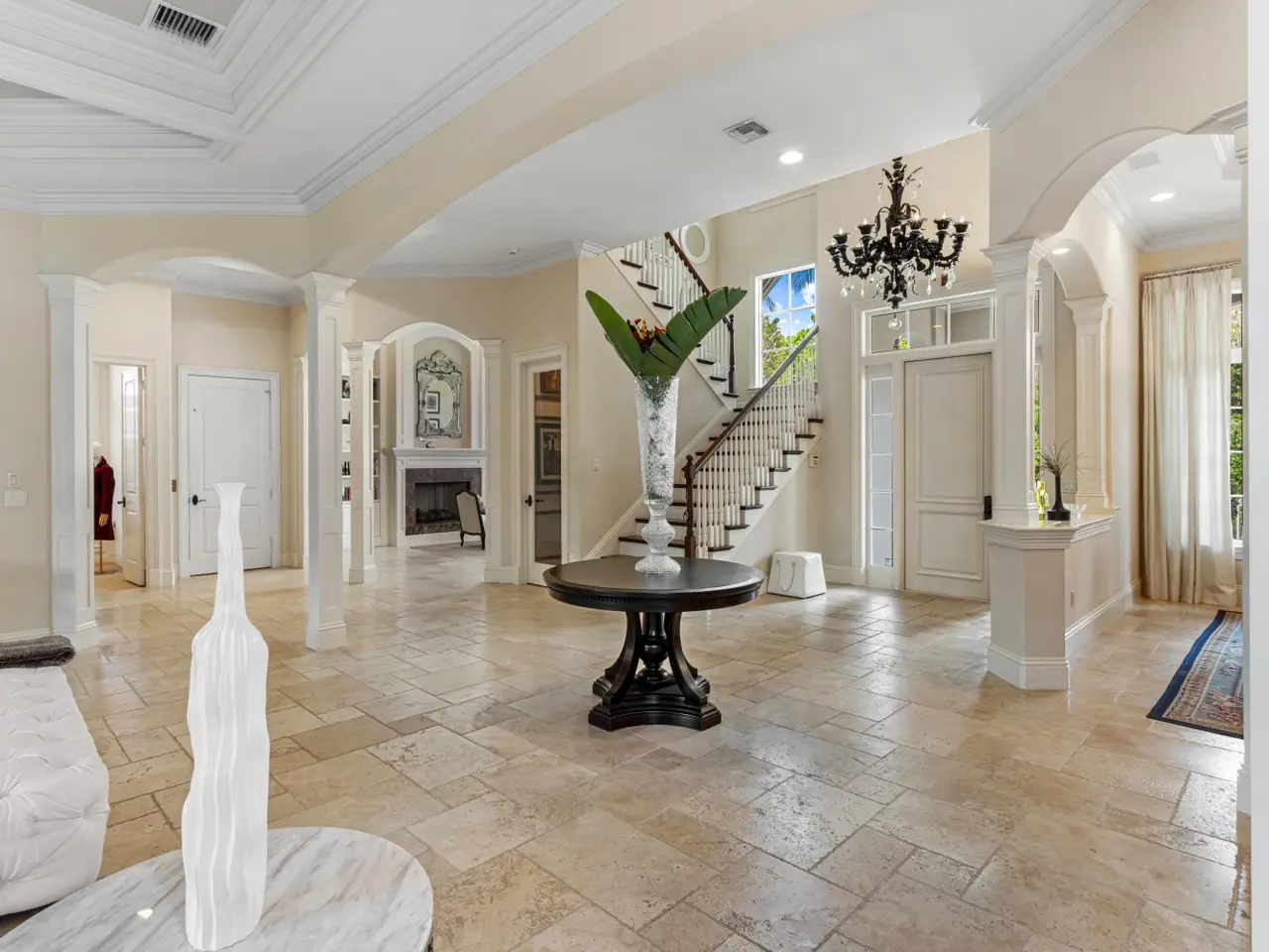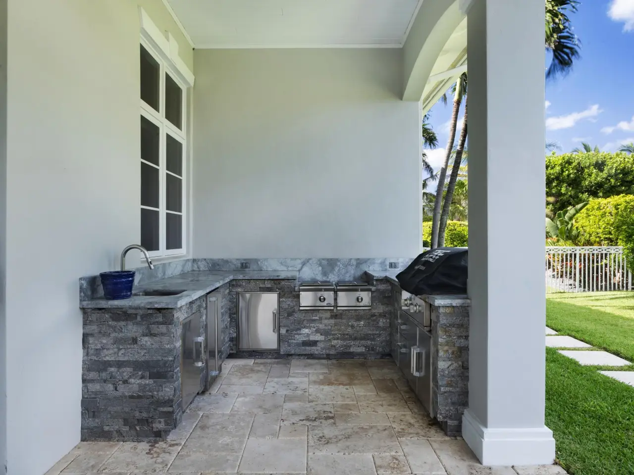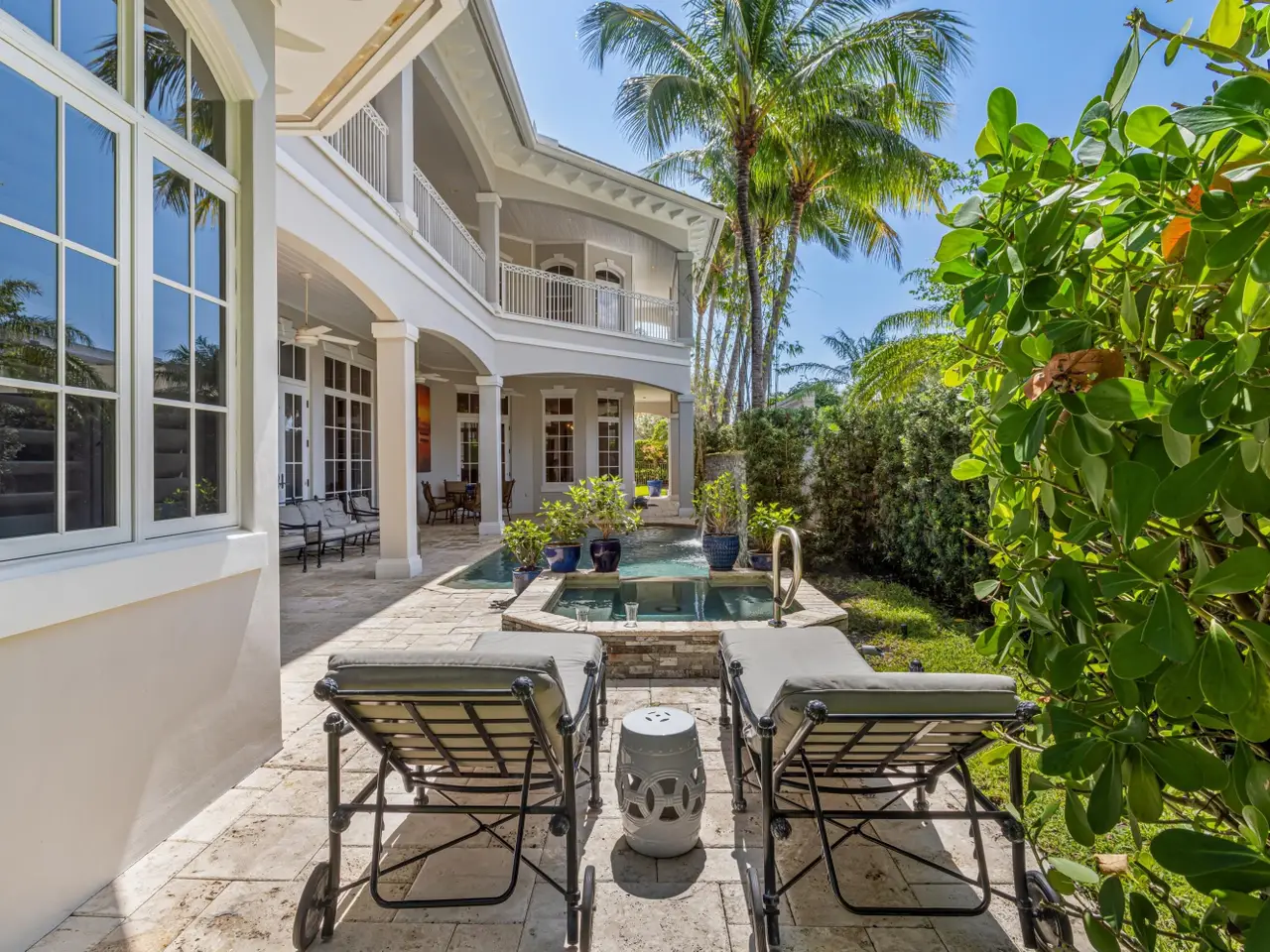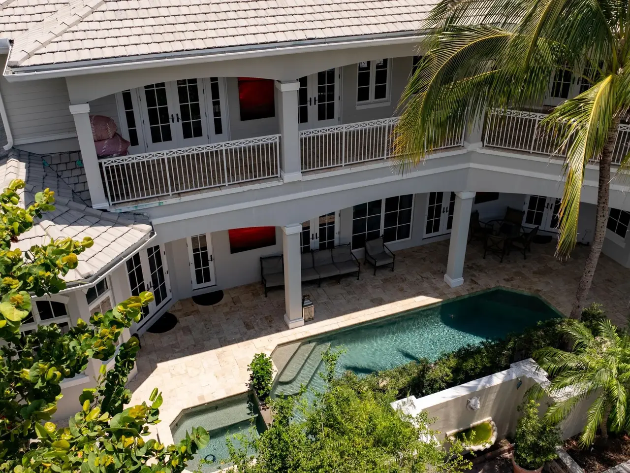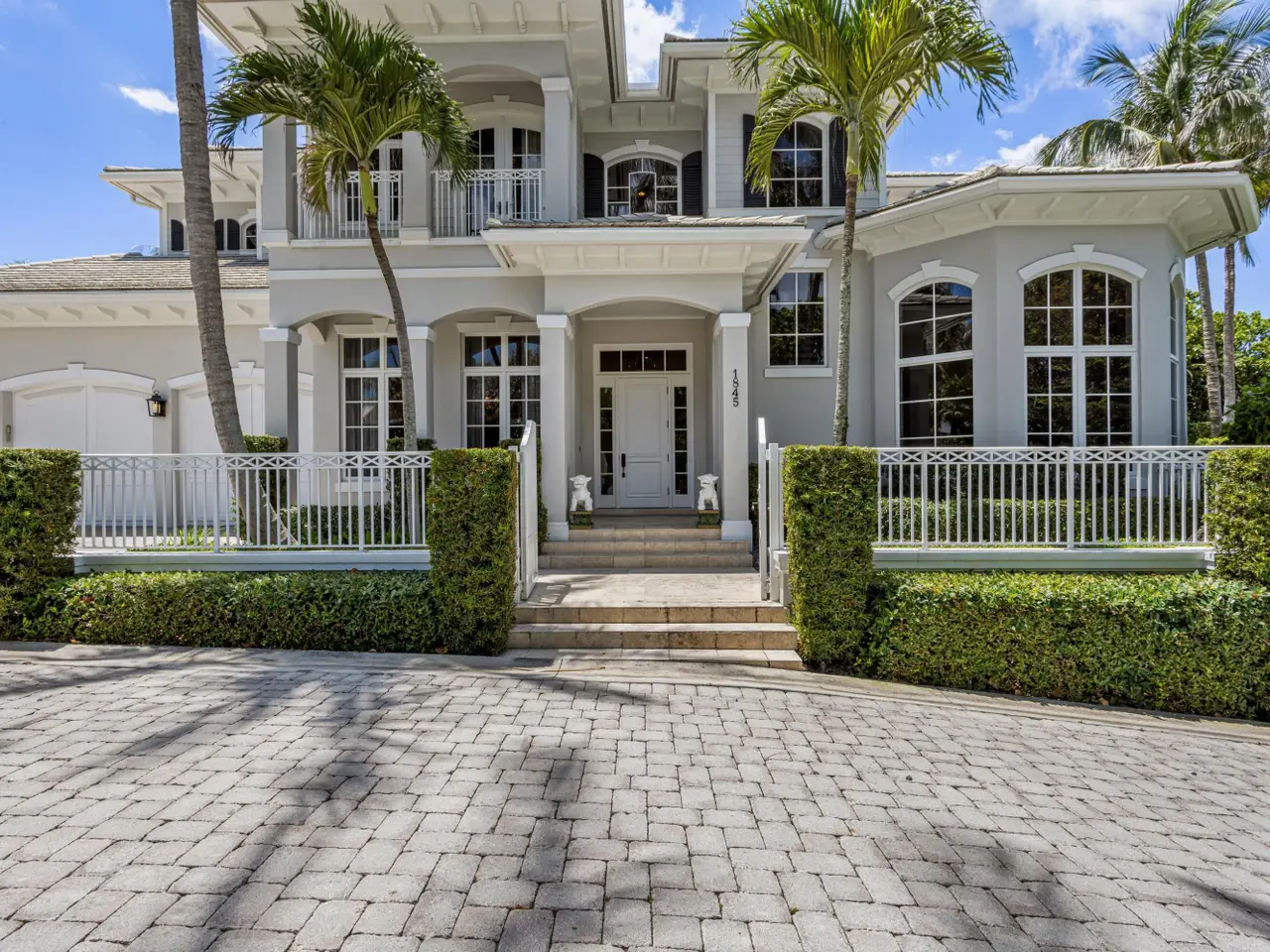 Located in a private, gated oceanfront enclave of only three homes, this elegant British West Indies-style home offers an open floor plan with large rooms and elegant interior. Unique features include third story viewing balcony, deeded beach access with a private beach pathway, formal living room and dining room, first-floor VIP bedroom, expansive balconies and large office with fireplace.