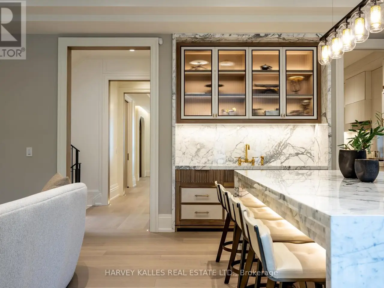 Without exaggeration--this is one of Bedford Park’s most remarkable homes. 508 St. Germain Avenue delivers over 6,000 Sq. Ft. of total living space across four levels with 4+2 bedrooms and 11 bathrooms, crafted for both refined entertaining and everyday ease. Timeless curb appeal is achieved with an Indiana limestone façade, high-grade aluminum windows, and a faux slate roof, while the interior showcases designer finishes, extensive custom millwork, and stone fabrication throughout. Every faucet, fixture, and hardware detail has been carefully selected for both quality and style. An elevator connects all levels, from the show-stopping kitchen with Lacanche range plus a hidden catering kitchen, to elegant principal rooms, and a lower level designed for entertaining. A rare sub-basement adds even more versatility with gym/media room, guest suite, cold storage, and state-of-the-art mechanicals. The private primary retreat features dual dressing rooms hers with centre island and vanity, his with custom built-ins--and an opulent spa-inspired ensuite with radiant-heated marble, freestanding soaker tub, curbless steam shower with rain head and multiple sprays, and dual water closets with integrated bidets. Each secondary bedroom enjoys its own heated ensuite bath. The lower-level recreation room and card lounge feature a wet bar, built-in speakers, fireplace, and direct walk-out to the landscaped yard with resort-inspired zero-edge mosaic pool, cabana with garden suite and basement, and covered terrace. Indoors, all tiled floors are heated with hydronic radiant heat; outdoors, an extensive snow melt system ensures effortless maintenance through the winter months. Additional highlights include a 3-car heated garage with hydraulic bollards on the driveway, Control4 home automation, integrated audio/security, and security roller shades. This is not just a home, but a lifestyle statement in one of Toronto's most sought-after neighbourhoods.