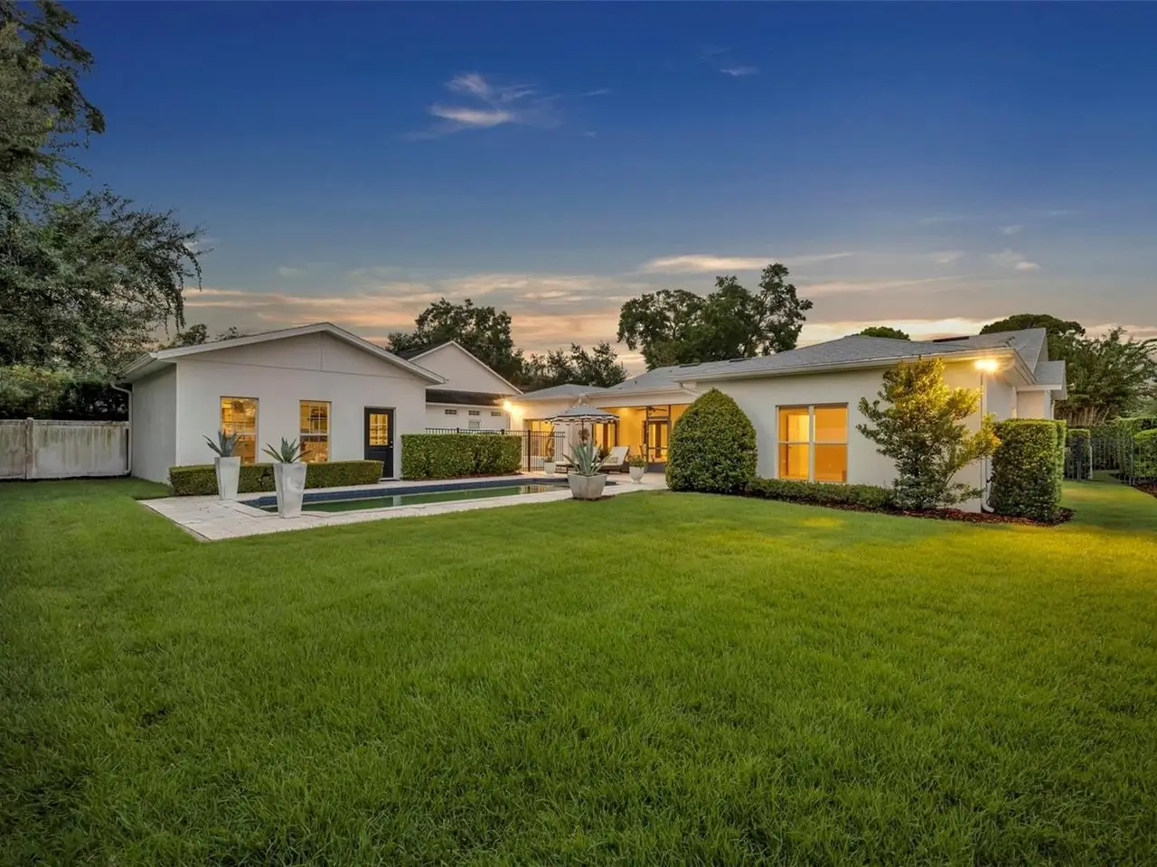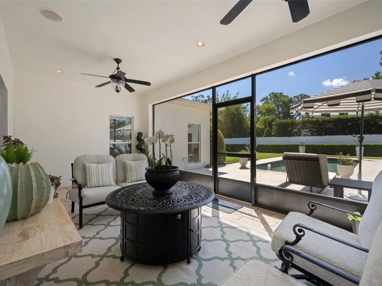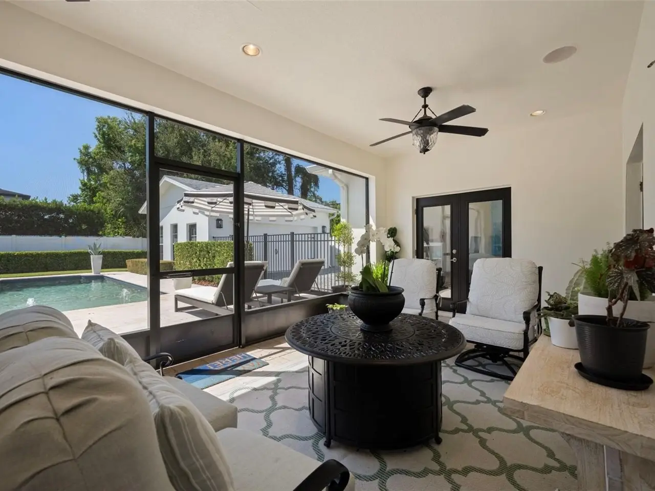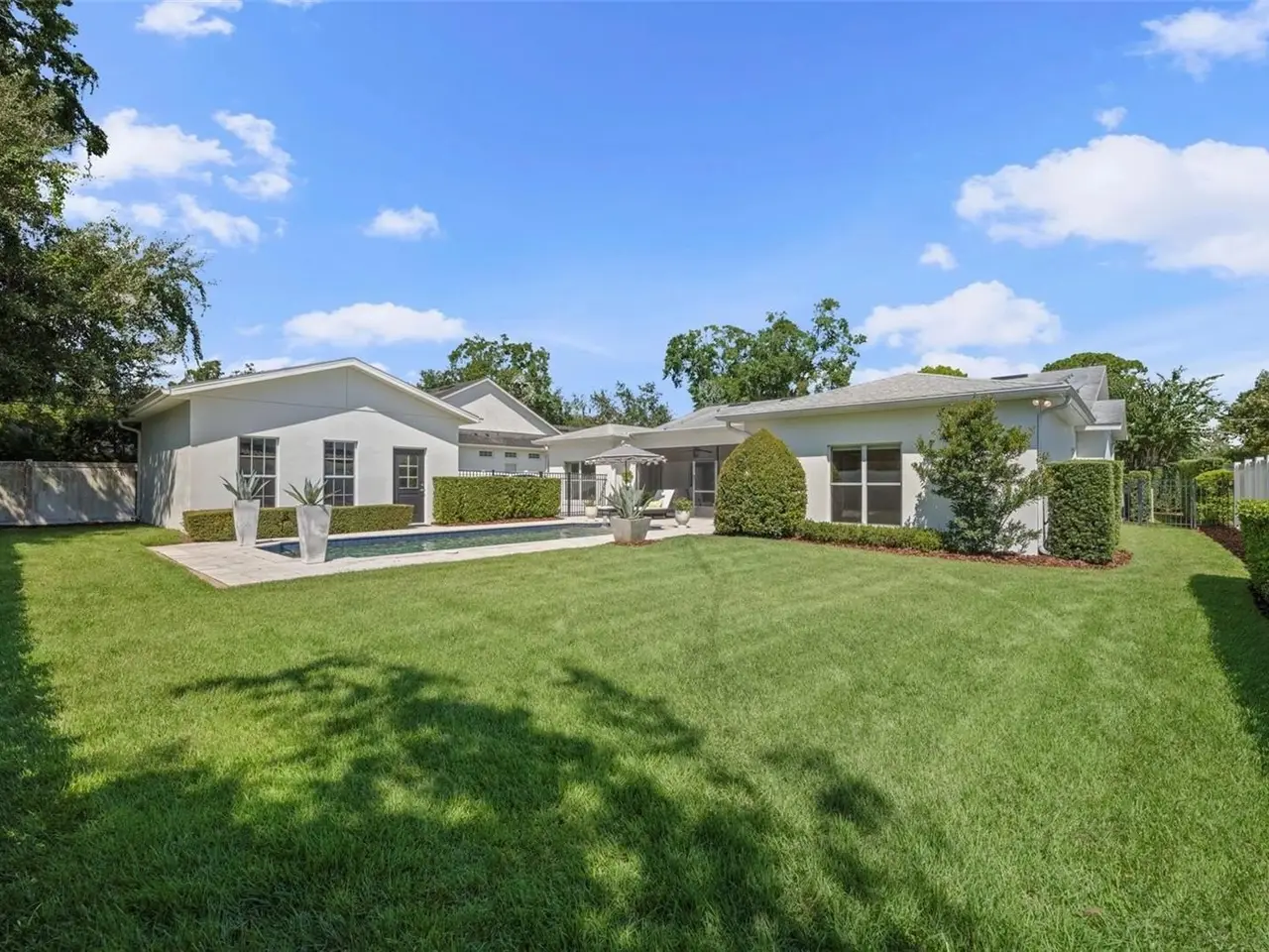 Welcome to this stunning SINGLE STORY five-bedroom home in one of Winter Park’s most desirable neighborhoods, where charming restorations and luxury new builds create a vibrant community feel. Designed with both beauty and comfort in mind, this open-concept home offers bright, welcoming living spaces and thoughtful upgrades throughout. Completely rebuilt in 2014 and tons of upgrades completed in 2025. The home sits on a 1/3-acre lot with 5 bedrooms and 3 ½ baths plus an office and features a 4-way split plan with privacy for all. Upon entering, you're greeted by an open floor plan with marble foyer and white oak engineered wood flooring. The Owners' Retreat is a true sanctuary, featuring newly sanded and smoothed walls with luxe finish, automatic Hunter Douglas shades and an artful chandelier. The brand-new spa-inspired bathroom (2025) showcases the best in design and function which includes Kohler Bask heated surface tub, private toilet room with heated seat, auto lid and integrated bidet. The primary bath also has a new expanded shower, a new double sink vanity and Kohler champagne brass fixtures. The Family/Gathering space with an open chef's kitchen includes a stainless gas range, French door refrigerator, waterfall Quartzite counters and touchless kitchen and bar champagne faucets. The great room has a modern electric fireplace and leads to a screened porch and overlooks the salt water pool and large fenced backyard. Black metal remote controlled gate leads to the large 2 car detached garage with a side entry for grocery and package drop off. Home has updated cameras and security with touch screen keypad. Smart home technology Lutron lighting to schedule and control lights with mobile or Google home. Redesigned Laundry and 1/2 bath with beautiful designer wallpaper and tile and Samsung washer/dryer integrated single unit. Ideally located in one of Winter Park's coveted neighborhoods, with easy access to Park Av, Phelps Park, YMCA and Rollins College. Excellent schools, Lakemont Elem, Maitland Middle and Winter Park High. This is a rare offering of a newer one-story home, that is move in ready in the heart of Winter Park. A Must See!