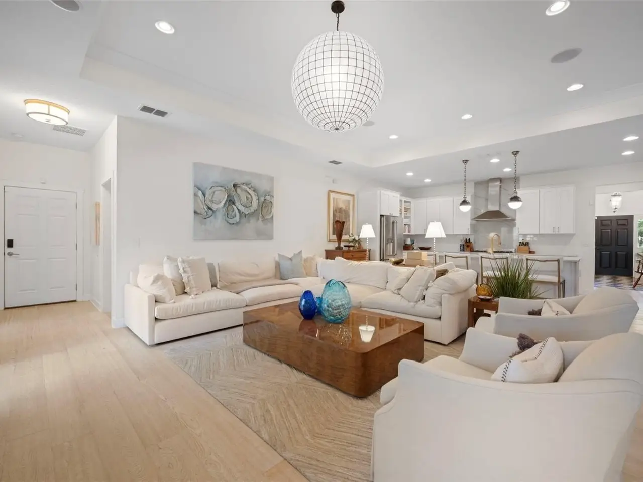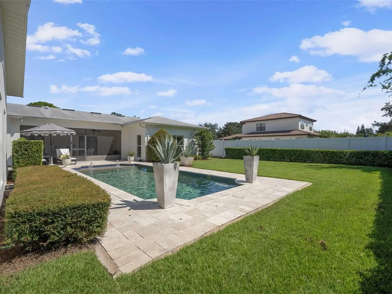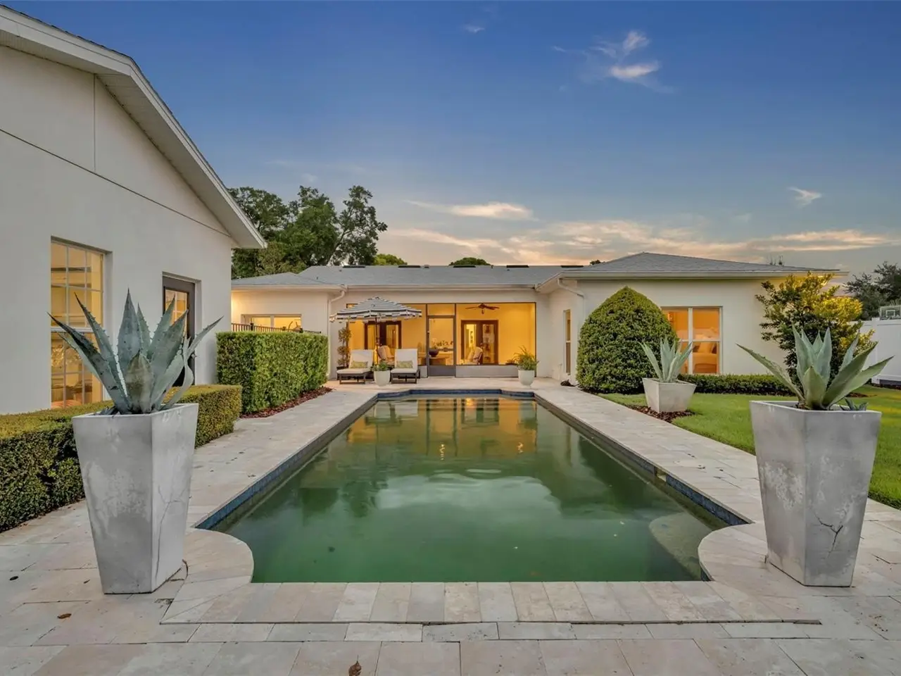 Welcome to this stunning SINGLE STORY five-bedroom home in one of Winter Park’s most desirable neighborhoods, where charming restorations and luxury new builds create a vibrant community feel. Designed with both beauty and comfort in mind, this open-concept home offers bright, welcoming living spaces and thoughtful upgrades throughout. Completely rebuilt in 2014 and tons of upgrades completed in 2025. The home sits on a 1/3-acre lot with 5 bedrooms and 3 ½ baths plus an office and features a 4-way split plan with privacy for all. Upon entering, you're greeted by an open floor plan with marble foyer and white oak engineered wood flooring. The Owners' Retreat is a true sanctuary, featuring newly sanded and smoothed walls with luxe finish, automatic Hunter Douglas shades and an artful chandelier. The brand-new spa-inspired bathroom (2025) showcases the best in design and function which includes Kohler Bask heated surface tub, private toilet room with heated seat, auto lid and integrated bidet. The primary bath also has a new expanded shower, a new double sink vanity and Kohler champagne brass fixtures. The Family/Gathering space with an open chef's kitchen includes a stainless gas range, French door refrigerator, waterfall Quartzite counters and touchless kitchen and bar champagne faucets. The great room has a modern electric fireplace and leads to a screened porch and overlooks the salt water pool and large fenced backyard. Black metal remote controlled gate leads to the large 2 car detached garage with a side entry for grocery and package drop off. Home has updated cameras and security with touch screen keypad. Smart home technology Lutron lighting to schedule and control lights with mobile or Google home. Redesigned Laundry and 1/2 bath with beautiful designer wallpaper and tile and Samsung washer/dryer integrated single unit. Ideally located in one of Winter Park's coveted neighborhoods, with easy access to Park Av, Phelps Park, YMCA and Rollins College. Excellent schools, Lakemont Elem, Maitland Middle and Winter Park High. This is a rare offering of a newer one-story home, that is move in ready in the heart of Winter Park. A Must See!