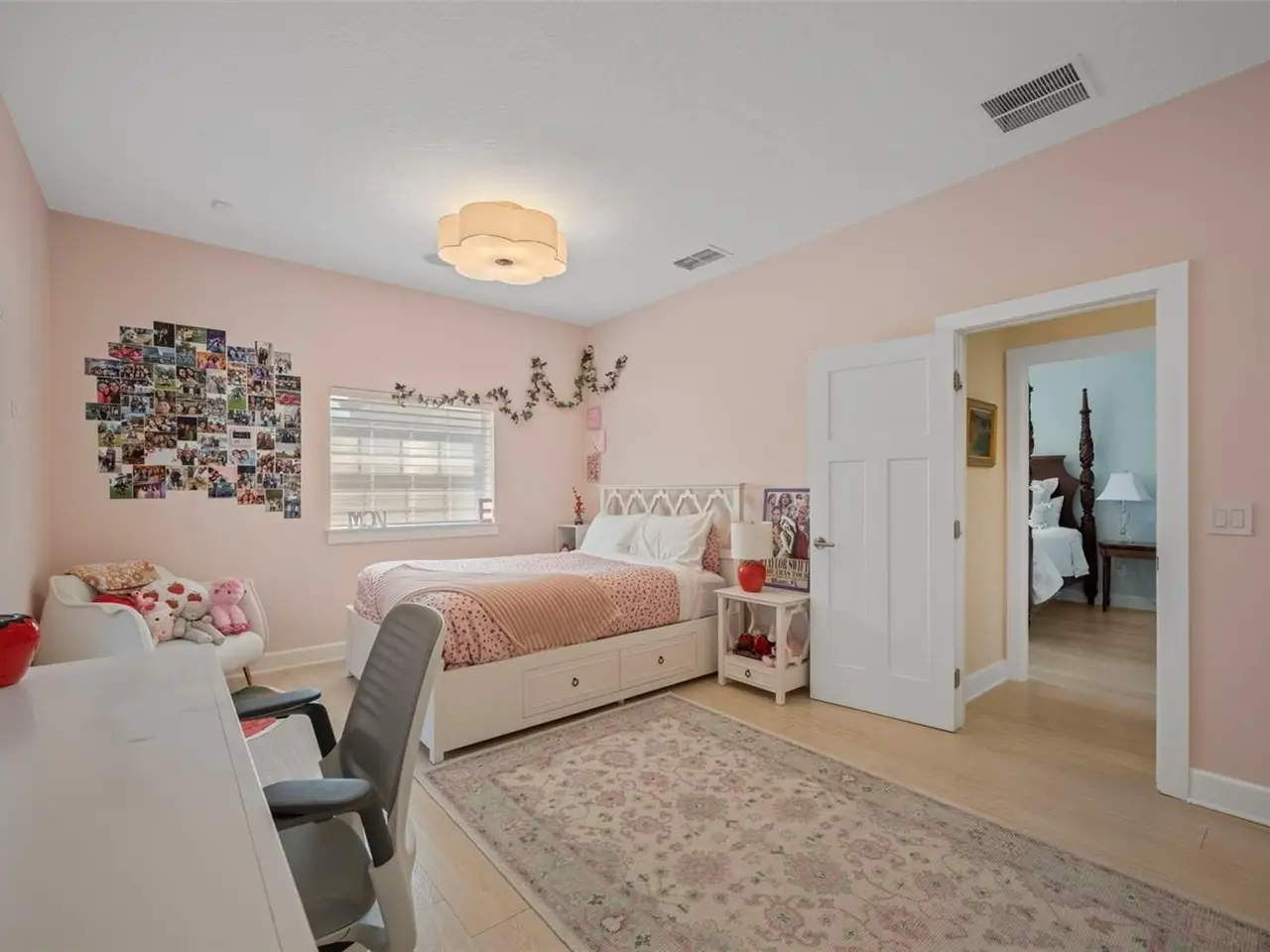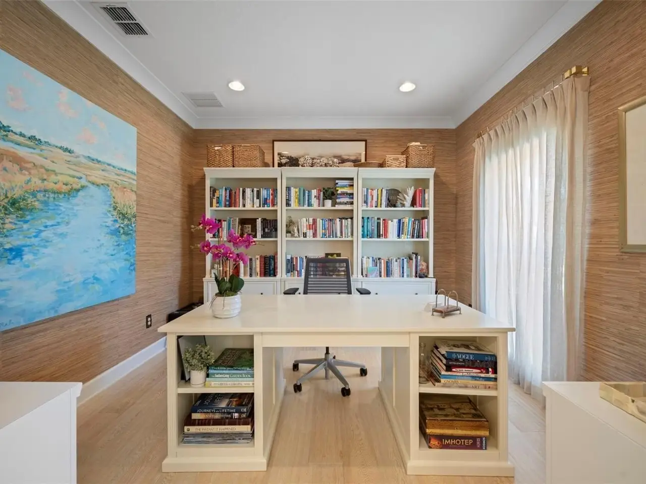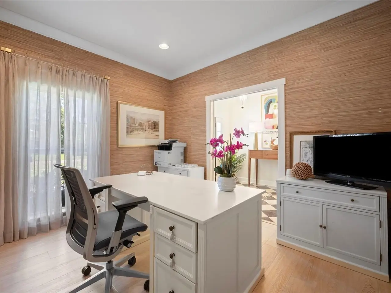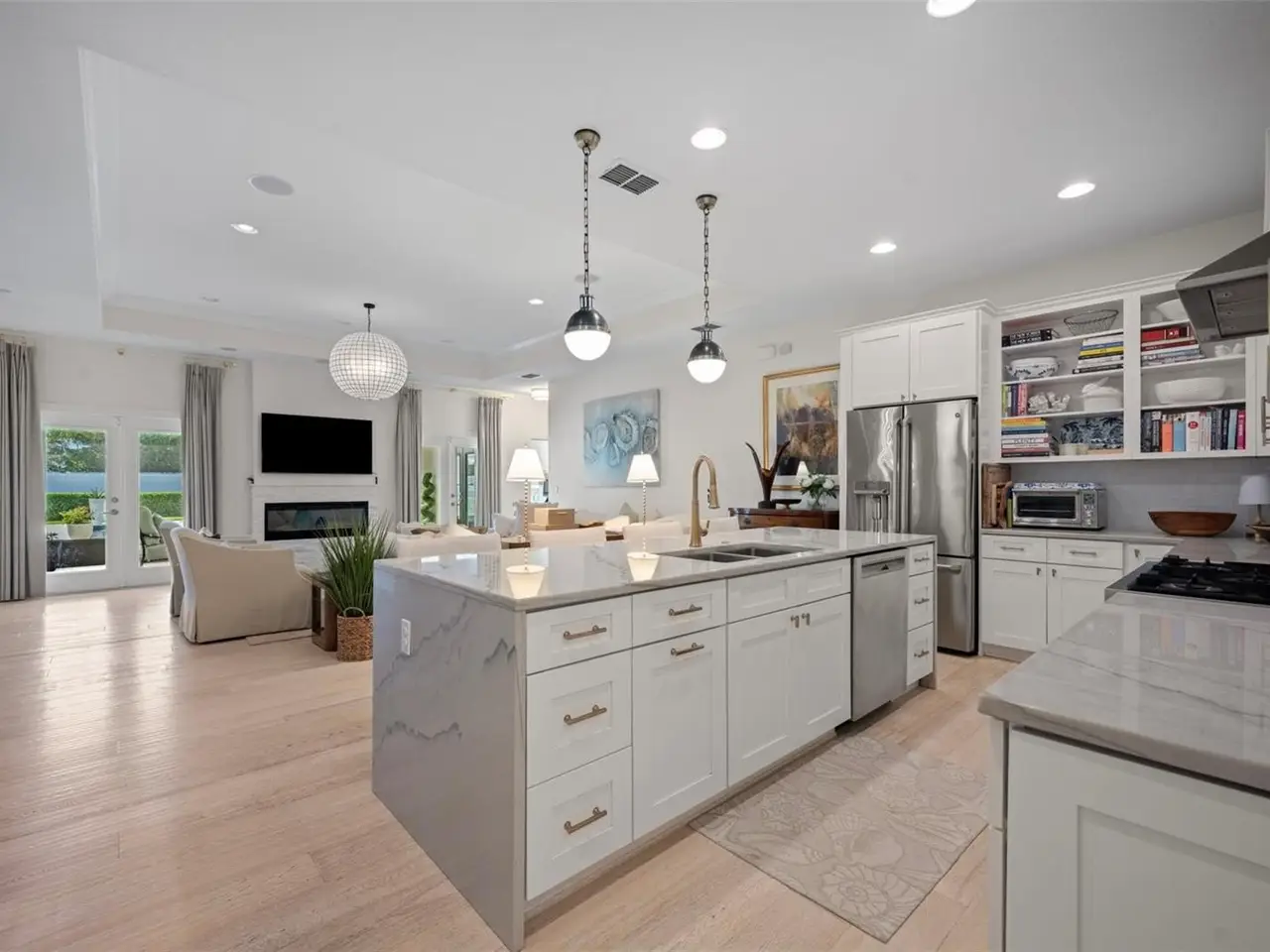 Welcome to this stunning SINGLE STORY five-bedroom home in one of Winter Park’s most desirable neighborhoods, where charming restorations and luxury new builds create a vibrant community feel. Designed with both beauty and comfort in mind, this open-concept home offers bright, welcoming living spaces and thoughtful upgrades throughout. Completely rebuilt in 2014 and tons of upgrades completed in 2025. The home sits on a 1/3-acre lot with 5 bedrooms and 3 ½ baths plus an office and features a 4-way split plan with privacy for all. Upon entering, you're greeted by an open floor plan with marble foyer and white oak engineered wood flooring. The Owners' Retreat is a true sanctuary, featuring newly sanded and smoothed walls with luxe finish, automatic Hunter Douglas shades and an artful chandelier. The brand-new spa-inspired bathroom (2025) showcases the best in design and function which includes Kohler Bask heated surface tub, private toilet room with heated seat, auto lid and integrated bidet. The primary bath also has a new expanded shower, a new double sink vanity and Kohler champagne brass fixtures. The Family/Gathering space with an open chef's kitchen includes a stainless gas range, French door refrigerator, waterfall Quartzite counters and touchless kitchen and bar champagne faucets. The great room has a modern electric fireplace and leads to a screened porch and overlooks the salt water pool and large fenced backyard. Black metal remote controlled gate leads to the large 2 car detached garage with a side entry for grocery and package drop off. Home has updated cameras and security with touch screen keypad. Smart home technology Lutron lighting to schedule and control lights with mobile or Google home. Redesigned Laundry and 1/2 bath with beautiful designer wallpaper and tile and Samsung washer/dryer integrated single unit. Ideally located in one of Winter Park's coveted neighborhoods, with easy access to Park Av, Phelps Park, YMCA and Rollins College. Excellent schools, Lakemont Elem, Maitland Middle and Winter Park High. This is a rare offering of a newer one-story home, that is move in ready in the heart of Winter Park. A Must See!