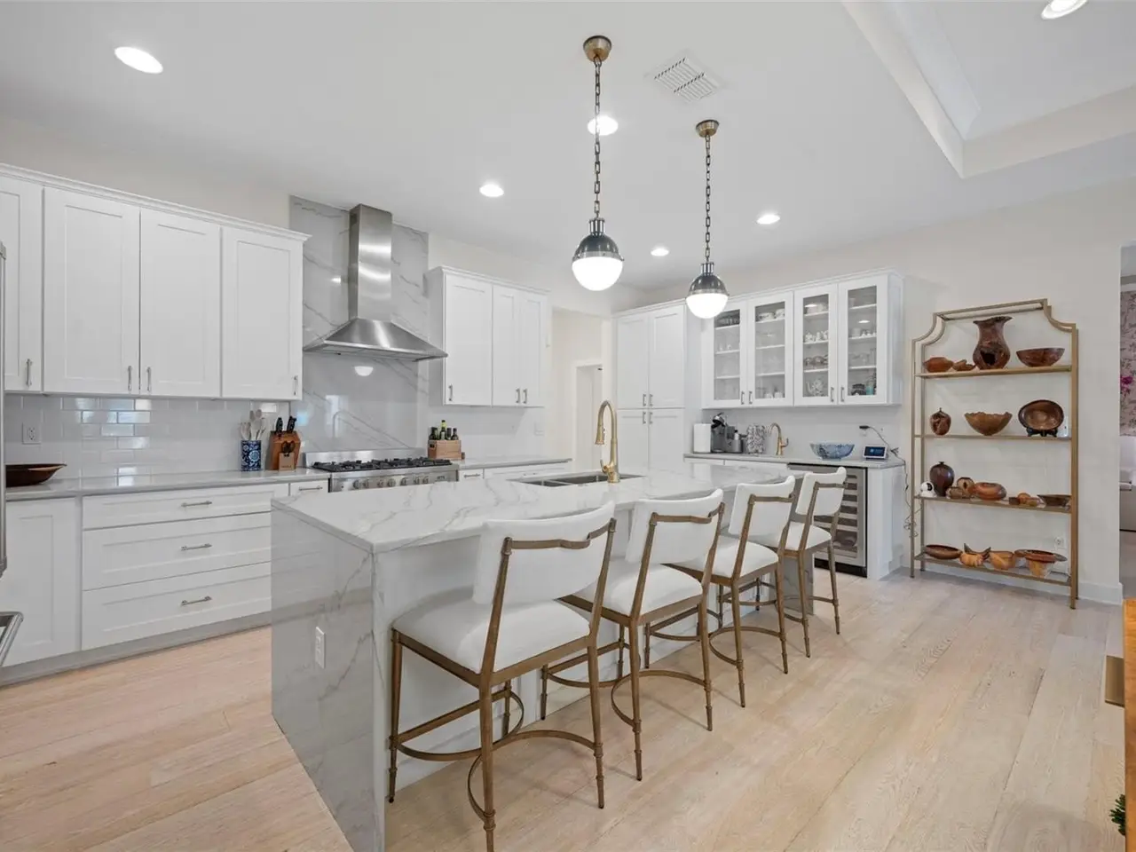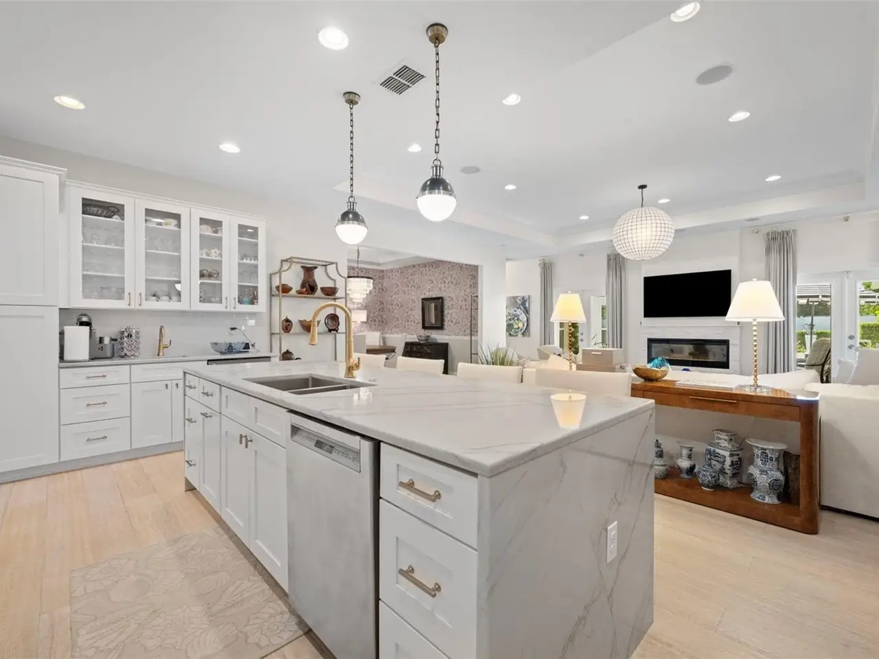 Waterfall Quartzite counters and touchless champagne faucets