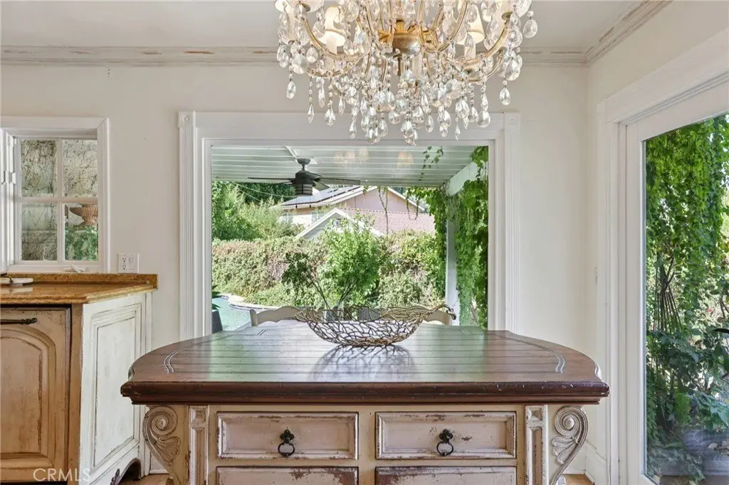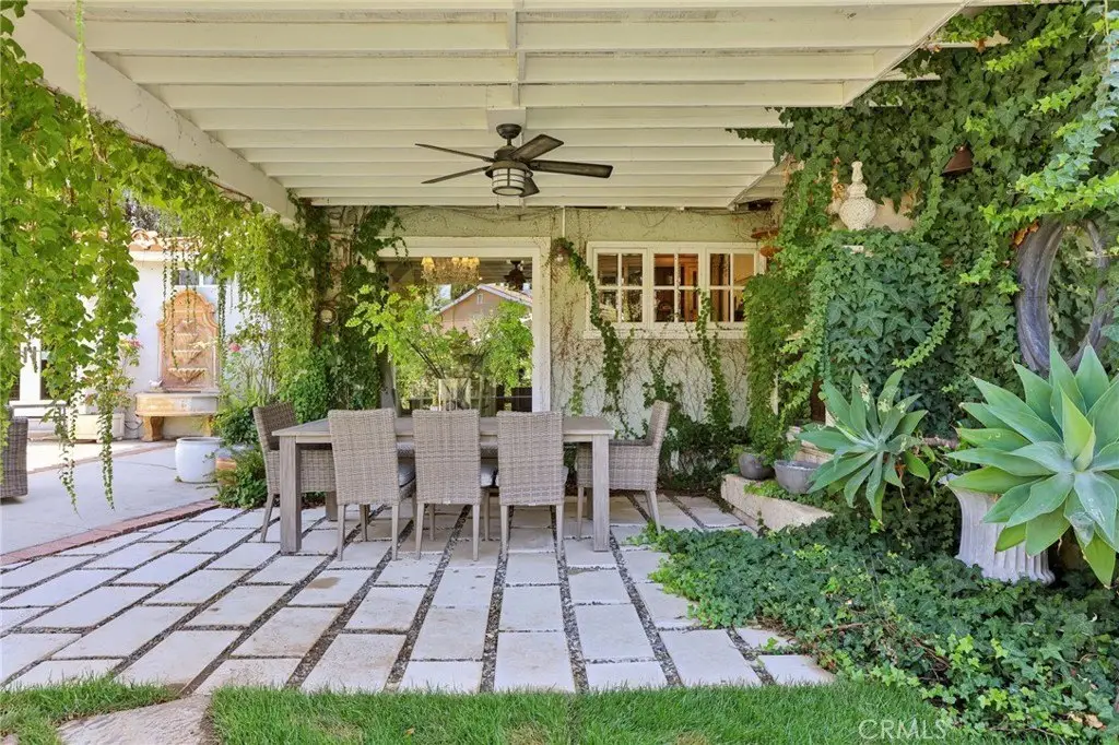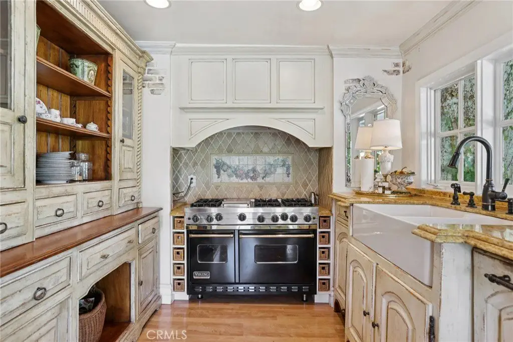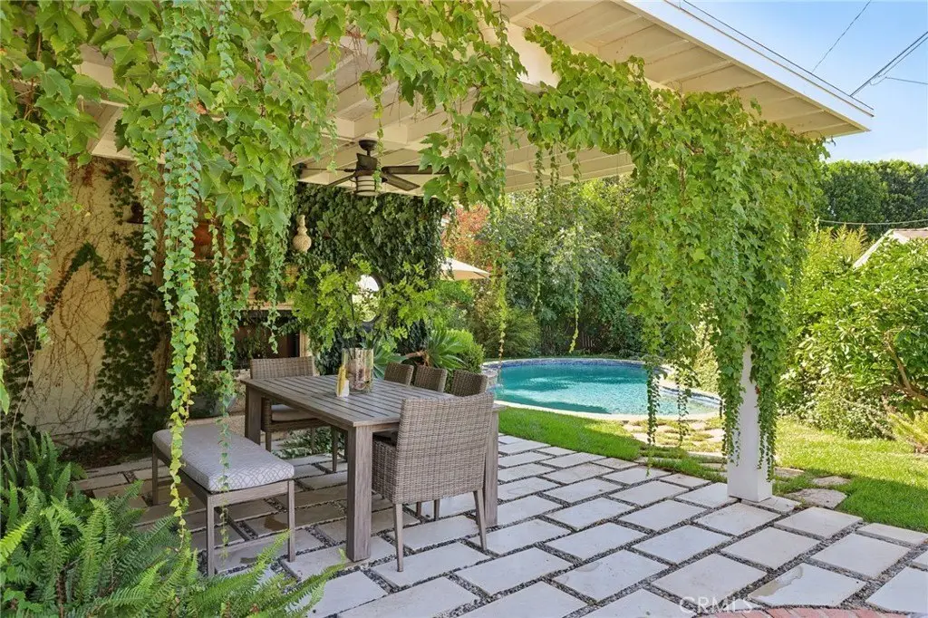 Exquisite Single-Story Home in Prime Woodland Hills – South of the Boulevard! Welcome to a rare offering in one of Woodland Hills’ most coveted neighborhoods—an impeccably appointed, move-in-ready single-story residence boasting timeless elegance, luxurious finishes, and over 2,550 SQFT of thoughtfully designed living space. This sophisticated 3-bedroom + office, 2-bathroom home effortlessly blends classic charm. Step through the formal foyer into a stunning entertainer’s living room, highlighted by soaring wood-beamed ceilings, a statement gas fireplace, and an open, inviting layout. The gourmet kitchen adorned with elegant French-style cabinetry, a premium 6-burner Viking gas range, built-in refrigerator, and a cozy breakfast nook framed by an expansive picture window showcasing tranquil views of the lush, manicured backyard. Custom French doors seamlessly connect indoor and outdoor living, opening to a breathtaking private oasis designed for both relaxation and grand entertaining. The resort-style backyard features a sparkling Pebble Tec pool, a covered patio with a charming outdoor fireplace, vibrant landscaping, multiple mature fruit trees, and an ambiance of total seclusion. Perfectly positioned just minutes from the high-end shops and restaurants of The Village at Topanga, Westfield Mall, and a short drive to the iconic Calabasas Commons, this extraordinary residence offers luxury, location, and lifestyle at an exceptional value. A true gem and one of the best-priced homes in this prestigious enclave.