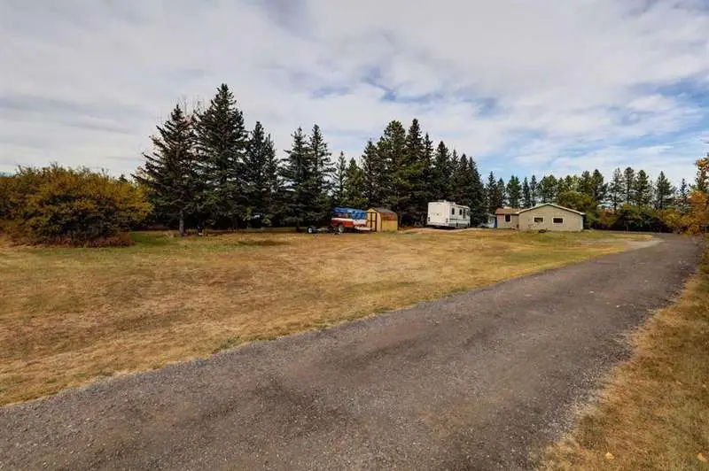 Experience the best of country living just 5 minutes from town! Tucked away on 4 private, beautifully treed acres, this charming 4-level split is the perfect retreat for those craving space, privacy, and a touch of nature. Step inside and you’re welcomed by a bright open-concept kitchen and dining area that flows into the living room, where west-facing windows frame peaceful mountain views. Upstairs you’ll find 3 comfortable bedrooms and 2 full bathrooms, including a relaxing primary suite with its own 4-piece ensuite. The lower level offers cozy family living with a wood-burning stove, a 4th bedroom, laundry, and an additional bathroom. Head down one more level to the basement and you’ll discover a games room (yes—the pool table stays!), bar area, plus plenty of storage and a cold room for all your extras. Recent updates mean peace of mind: new roof (2023), newer composite siding, newer septic tank (approx. 5 years), hot water tank and some new doors/windows (2025). But the real treasure is outside—whether you’re tinkering in the heated garage and shop (with running water!), relaxing by the waterfall pond, or enjoying evenings in the bunkhouse with its own propane stove and power. There’s room for animals with a paddock and shelter, plenty of sheds for storage, RV parking, and rows of fruit trees that add both privacy and charm. This isn’t just a property—it’s a lifestyle. A place where you can breathe, unwind, and enjoy the tranquility of acreage living, all while being just minutes from Airdrie.