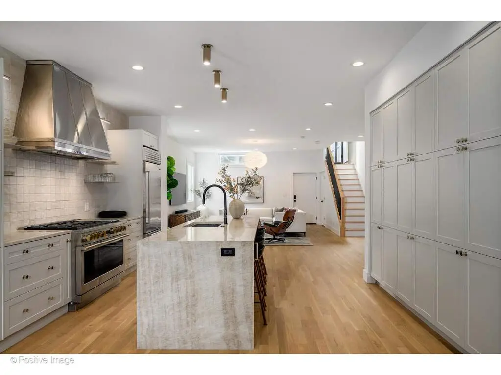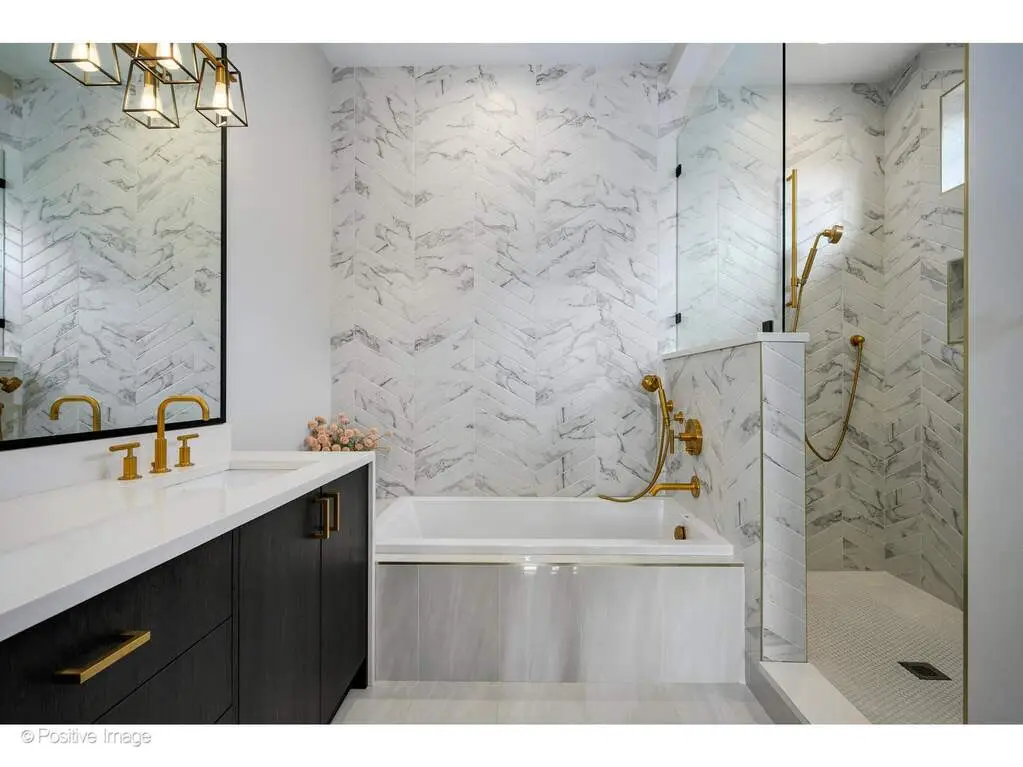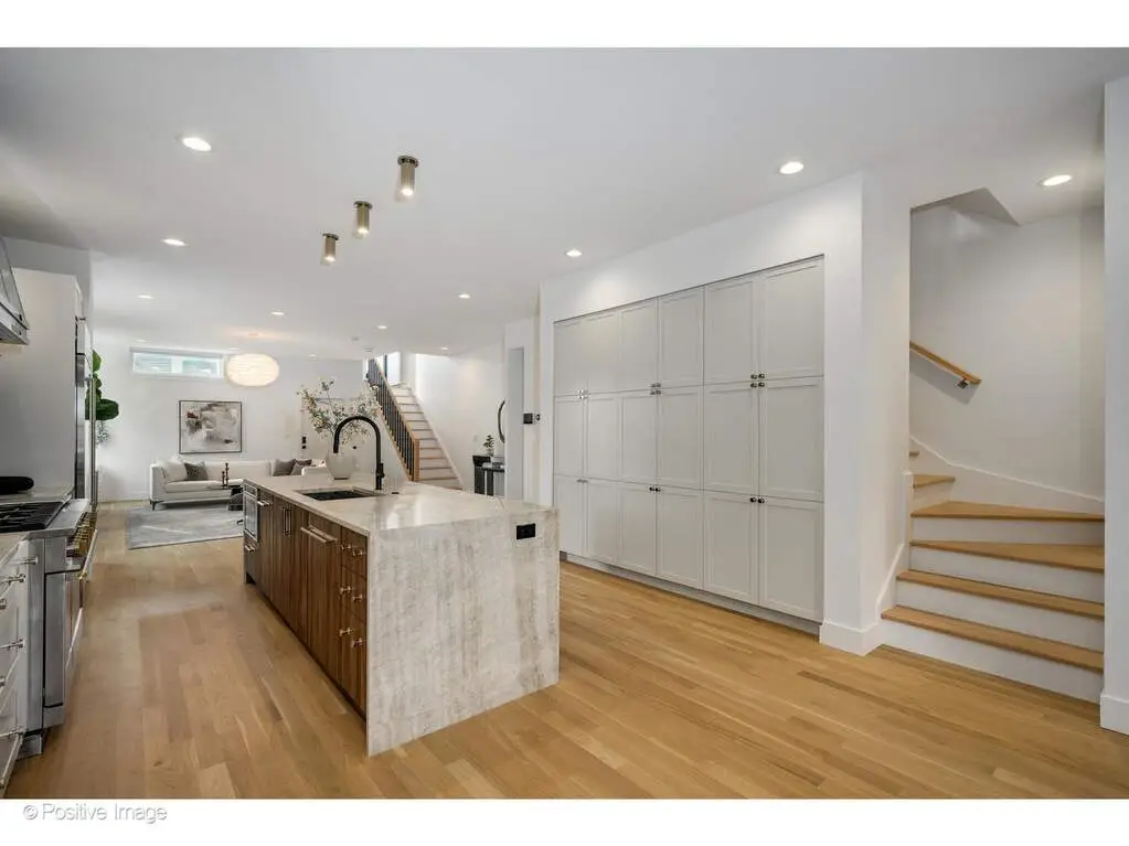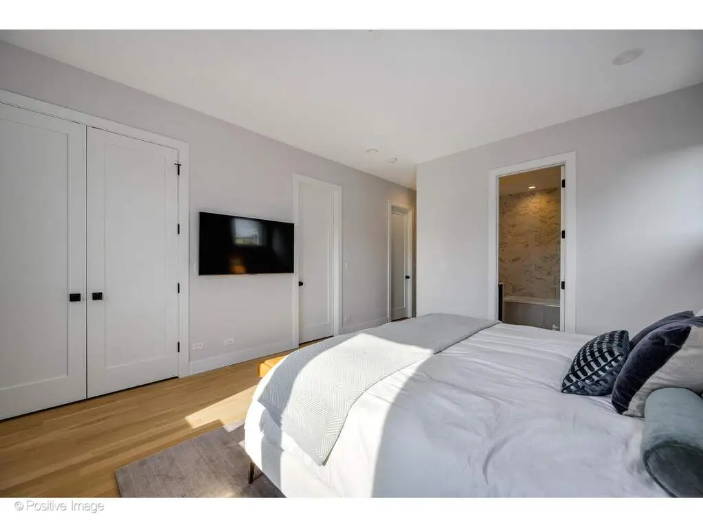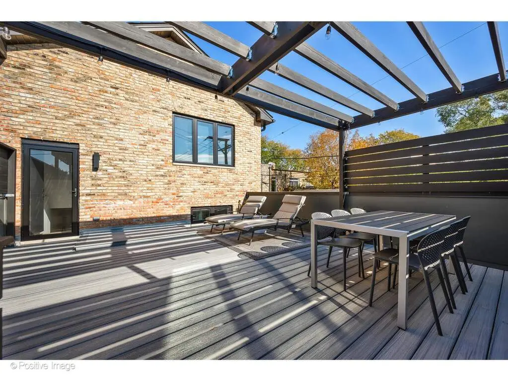 Effortlessly beautiful and elegantly designed, this Bucktown single-family home is truly a breath of fresh air. Ideally situated on a charming one-way street, this home enjoys all the conveniences of the eclectic adjacent neighborhood while savoring the serene surroundings of a tree-lined, residential street. Designed for comfort, the home features enhanced acoustic windows and an all-brick exterior that create a peaceful retreat from the city's energy. Highlights include a chef's kitchen with high-end appliances, rooftop deck with pergola, heated 2-car attached garage, fully finished lower level with 125" home theater and wet bar, two laundry areas on the upper bedroom level and lower level, abundant storage, and luxurious spa-like baths. Prepare to be wowed by the level of finishes and meticulous attention to detail throughout this incredible home. Blonde, white oak hardwood floors and motorized window shades can be found throughout the residence. Large windows facing three exposures, soaring ceilings, and an open floor plan allow an abundance of natural light to bathe and warm the living space. The dining room features a bay window overlooking the front yard, a gas fireplace, and a chandelier from Restoration Hardware. Conveniently located just off the dining room is a powder room with charcoal colored shiplap walls. The newly renovated kitchen features a custom-designed range hood with commercial-grade exhaust fan, Monogram double oven with 6-burner range and griddle, Sub-Zero refrigerator, and Bosch dishwasher and microwave. The countertops and oversized waterfall edge island with breakfast bar are made of honed Taj Mahal quartzite. A full wall of newly added storage cabinets with RH hardware creates extensive pantry space, while RH sconces and overhead lighting complete the sophisticated look. The kitchen seamlessly flows into the spacious, sun-drenched living room where you will find easy access to the attached, heated 2-car garage. Stairs from the living room lead to the composite roof deck with pergola, grill, plantings, and a water spigot. Three bedrooms are conveniently located on the second floor. The luxurious, light-filled primary suite has a graciously sized bedroom with large windows overlooking the roof deck, two walk-in closets plus an additional wall closet, and a spa-like ensuite bath with white herringbone wall tile, a double vanity with quartz counters, a soaking tub w/ convenient handheld, and an oversized walk-in shower with rain head, handheld, niche, and bench. The sprawling second bedroom could rival the size of any primary and features a bay window overlooking Montana Street, a chandelier, and a large, professionally organized closet. The sizable third bedroom enjoys a walk-in closet. A well-appointed, black and white, full bathroom with tub/shower stands in between the bedrooms and across the hall from a laundry room with oversized Samsung W/D. Downstairs, the fully finished lower level has heated flooring throughout and is an entertainer's dream with a rec room outfitted with a 125" movie screen and Sonos sound system. This recreational space features a full wet bar with wine fridge, quartz counters, and quartz backsplash. A substantially sized 4th bedroom (currently configured as a gym) has a spacious walk-in closet. An office nook provides the perfect place to work from home, and a full bath and a second laundry room with Samsung W/D complete the lower level. Restored exterior details include a turret and architectural shingled roof. Recent updates feature artificial turf in the front yard with a custom-designed, low-maintenance parkway featuring a cherry tree, river rock, and perennials. Ideally situated at the edge of Bucktown and close to Logan Square, the dining, shopping, and nightlife options are endless. Easy access to 90/94 and CTA trains and buses make it a breeze to get anywhere in the city quickly. Welcome home!