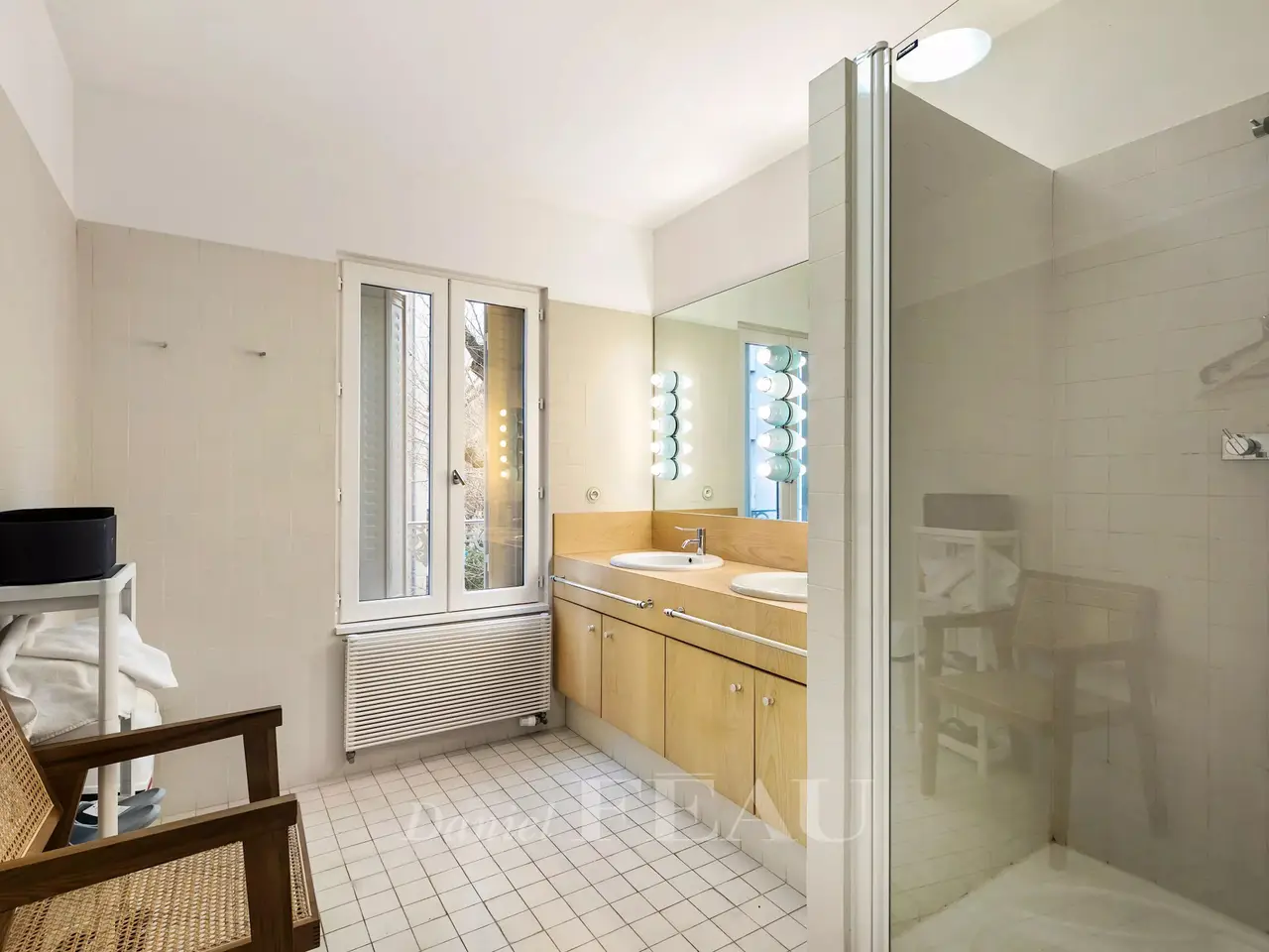 Jasmin neighbourhood, at the entrance to a private street. This superb Napoleon III-style private mansion benefiting from a near 70 sqm fitted outdoor area comprises a 230 sqm main house joined by a 28 sqm veranda to an adjacent 54 sqm second house. The main house includes a raised ground floor with a living/reception room and a dining room, with a kitchen, a shower room, a utility room, a storage room and a boiler room on the entresol. A master suite comprising a bedroom, a bathroom, a dressing room and a study is upstairs, and three spacious bedrooms and a generous bathroom are on the second floor. The annex comprises a garage with a studio apartment with a kitchen and a shower room upstairs.