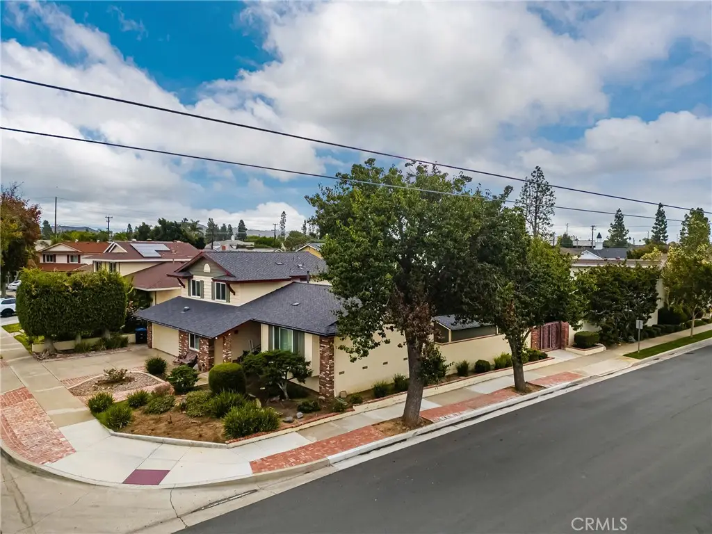 Welcome to this beautifully upgraded 4-bedroom, 3-bathroom home offering 2,121 sq ft of thoughtfully designed living space. With a downstairs bedroom and full bath, this layout is perfect for guests or multigenerational living. At the heart of the home is the Designer Chef's Kitchen, featuring premium appliances: Sub-Zero Dacor refrigerator, Dacor double oven with warming drawer, Wolf 6-burner cooktop, Bosch dishwasher, and Dacor convection microwave. Enjoy the gorgeous Quartzite countertops, vegetable prep sink, and custom pull-out shelving make this a dream kitchen for any culinary enthusiast. All bathrooms have been tastefully updated with elegant Kraft Maid birch wood cabinetry, adding warmth and sophistication throughout the home. The home boasts 3/4-inch Hickory wood floors, recessed lighting and ceiling fans perfect for those warm summer days. Outside, entertain in style under the custom - built covered patio, perfect for alfresco dining. The expansive backyard is a private oasis featuring mature Hass avocado, orange, lime, and kumquat trees, plus a convenient slab sink for barbequing. On opposite sides of the yard, you'll find two custom built 8x16 sheds complete with insulation, drywall, windows, and 3-amp wiring offers exceptional additional space. Additional highlights include RV parking with remote controlled gate access, Noritz tankless water heater, reverse Osmosis water system, a Vertex security system, with multiple cameras for added coverage, newer ductwork, and a 3-year-old composition shingle roof with 50-year warranty. A rare find that blends luxury finishes, thoughtful upgrades, and versatile outdoor space - this home is truly the total package!