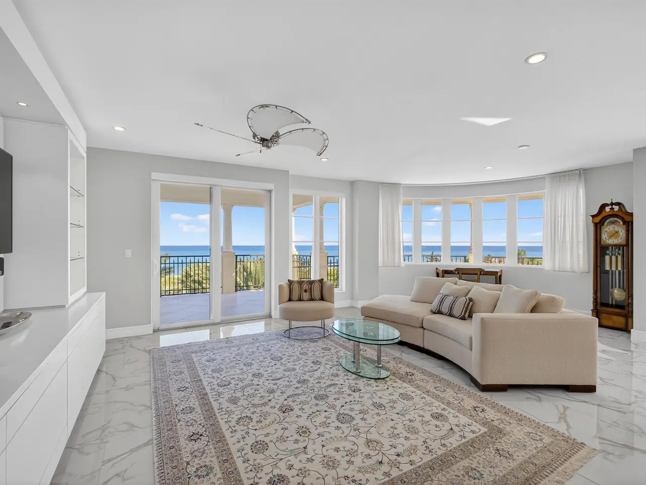 The finest oceanfront condominium in Palm Beach Shores. Exquisite, luxury boutique building with only 34 residences! Rarely available 3/3.5 SE corner w/3,295 a/c sf and 771 sf of covered balconies. Breathtaking ocean views! This gracious, move-in ready residence has been the recipient of recent high-end renovations, including: Kitchen remodel w/Sub-Zero, Wolf & Cove appliances, primary suite/bathroom remodel, custom living & dining room built-ins, large format porcelain floors, powder rm & secondary baths upgrades. A/C units (2019). Resort-style amenities, including an amazing South Beach-style pool area. 150' of deep, sandy beach w/+/- 280' dune. 2 garage spaces, EV charging stations. Reserve Study Completed! No Assessments! Only 7 mi to Palm Beach, 13 mi to PBIA!