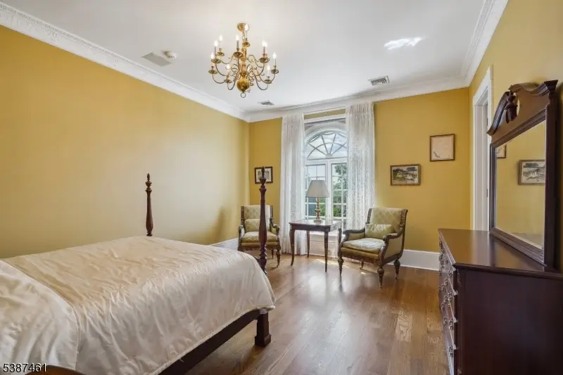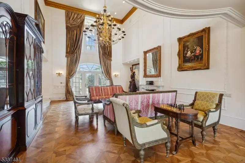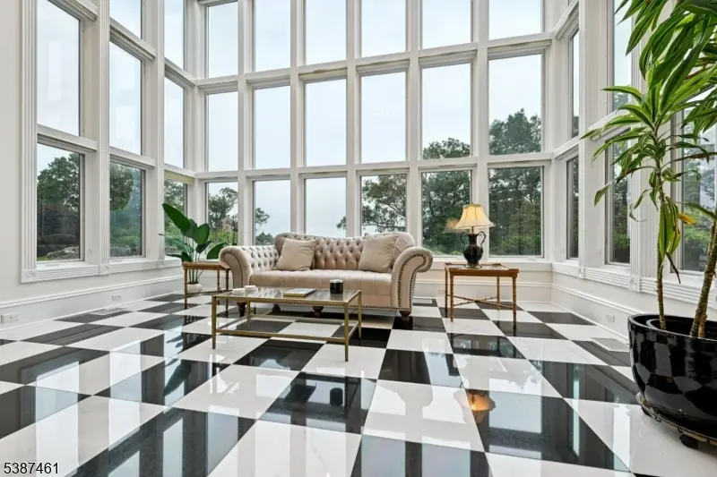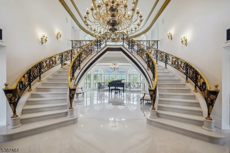 This European masterpiece, a true French Chateau, offers unparalleled beauty and with 14,000 sq ft ideally located on 3.8 acres of meticulously landscaped property at the end of a cul de sac with incredible privacy and spectacular panoramic views of the iconic New York City skyline. Nestled atop one of the highest points in Essex County. Custom built to perfection, this 4-story residence features top of the line resort-like amenities including a heated, gunite pool and spa, a relaxing sun deck, tranquil meditation garden with koi pond, multi-purpose sports court perfect for tennis or basketball and a spectacular home gym with sauna and steam room. Inside this magnificent residence there is a luxurious Master Suite with 2 spa-like baths and 2 custom walk-in closets and private state of the art movie theater, billiards, sports area with media and a stunning pub imported from Europe with leaded and stained glass windows. There is a private balcony with exclusive views of the New York City skyline. This architectural gem, located only 17 miles from New York City, features a limestone exterior, 3 levels of balconies and a grand entrance hall with a double bridal staircase and gilded railing imported from Europe. With tremendous privacy, 8 bedrooms, 9.3 baths, 6 gas fireplaces and French doors throughout the home, opening to front and back verandas on 3 levels, this home is sure to amaze. Your own private oasis! One of the most extraordinary estates in the NY Metropolitan area!