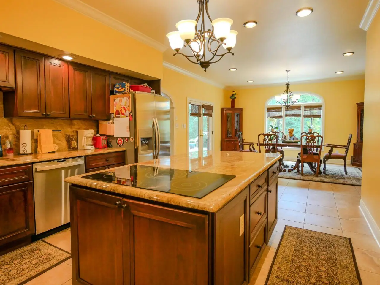 Resort-Style Living in a Prestigious Subdivision This all-brick executive home is designed for both elegance and comfort, nestled in a private, professionally landscaped setting. The highlight is the resort-style saltwater pool-complete with a stacked rock fountain, diving board, and slide-perfect for entertaining or relaxing at home. Inside, you'll find 4 spacious bedrooms and 5.5 baths, including a luxurious owner's suite with dual closets, dual vanities, and a spa-like jetted tub. Three additional bedrooms each feature ensuite baths offering comfort and privacy for family or guests. The completely remodeled gourmet kitchen boasts a massive granite island, double ovens, stainless steel appliances, a butler's pantry/coffee bar, and walk-in pantry. Entertain with ease in the formal dining room, cozy den with gas fireplace, or sunroom/music room. A private office with custom built-ins is ideal for working from home. Additional features include a 3-car garage with epoxy flooring, large laundry room, central vacuum, walk-up attic storage, and Andersen windows that fill the home with natural light. This property blends luxury, function, and resort-style amenities in one of the area's most prestigious neighborhoods-truly a home to fall in love with.