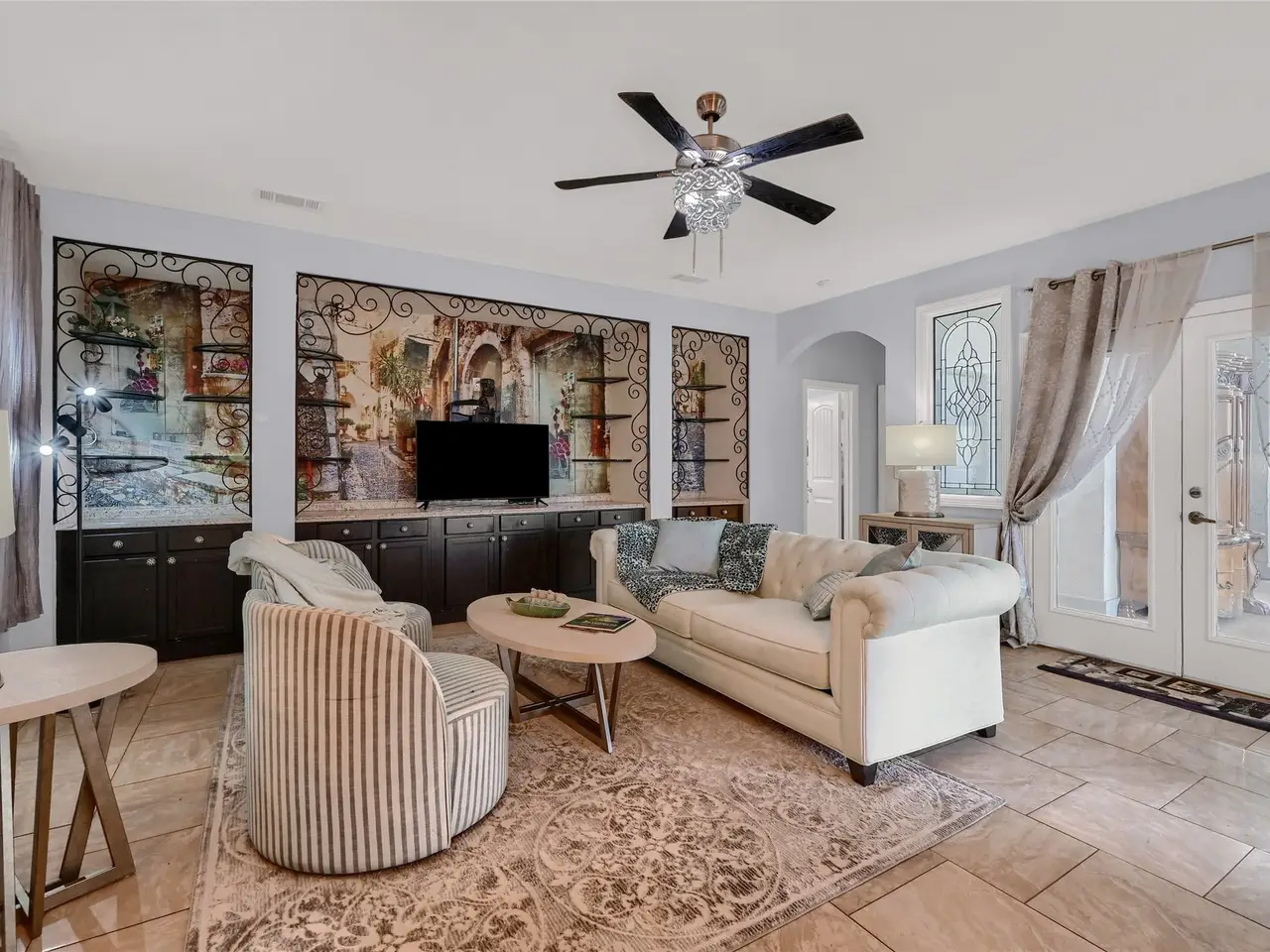 Stunning Mediterranean-style stucco home with 10 acres exudes timeless charm and modern comfort. 4 bedrooms possible 5th, 3.5 baths, 3,731 sq ft of thoughtfully designed living space. Home is perfect for those seeking luxury and tranquility. Open concept layout features elegant finishes, high ceilings, and abundant natural light. Spacious primary suite boasts a spa like bath, with separate walk in shower, his and hers vanity and a walk in closet to die for. 3 additional bedrooms provide comfort and spacious privacy. Large office room an perfect additional room for a 5th bedroom option, library room, formal dining or game room depending on your Preferences. Huge open gourmet kitchen with Island with all granite countertops through out and endless custom Cabinets for all your kitchen accessories and decor. This floor plan is the perfect inviting living spaces to make entertaining a delight. Experience paradise in horse country. Home is a Dan Sater Design. This gorgeous, architecturally significant home stands regally on 10 lovely acres. From the exquisite high-end interior details, to the expansive outdoor entertaining with out side Kitchen area with granite island with sink. This home makes an amazing lasting impression. Close to the lake and half an hour from major shopping, the owners enjoy both the country lifestyle and the conveniences of the city. Outdoors, a picturesque pergola adorned with grapevines sets the scene for alfresco dining. The sparkling swimming pool and spa with a nearby outdoor fireplace creates a resort-like retreat, complemented by a guest room with a full bathroom for visitors. Could be used as a Mother in law sweet. Equestrians and hobby farmers will appreciate the 5-stall 48 x60 barn with runs and the large open tack room to accommodate the display of your saddles, tack an live stock accessory needs. 200 x 100 outdoor arena, 6 Horse Ready pastures with cross fencing, offering exceptional facilities for livestock or recreation.