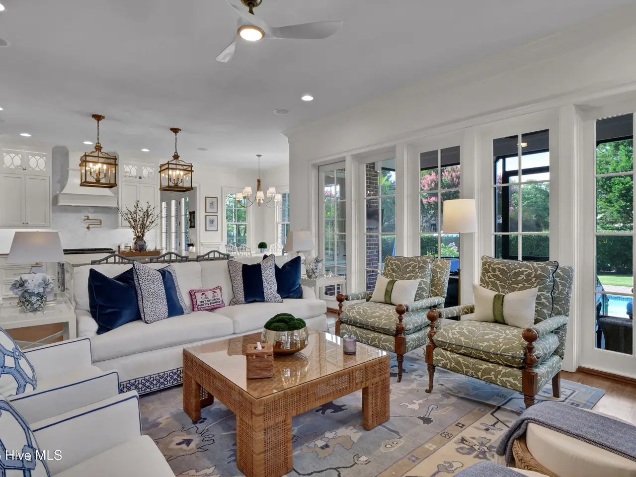 This custom built all brick Landfall home on a quiet cul-de-sac has just undergone a magnificent $500,000 complete remodel, including entirely new kitchen, new bathrooms, new upper and lower laundry rooms, and landscaping. Thoughtful design features are found throughout this home and are immediately appreciated at every turn. A covered front porch and graceful arched mahogany French doors create a memorable entrance to this comfortable home with a paneled study and formal dining room flanking a generous foyer with wrought iron railings. Hardwood floors, custom built-ins and detailed crown moldings are found throughout the first floor. The kitchen has been completely updated with all new cabinetry, Vikings stainless appliances, including a six burner gas cooktop, side-by-side refrigerator freezer, a huge quartz center Island for elegant entertaining all overlooking the family room with fireplace, a sunny breakfast nook, a screened porch and private backyard with pool and fire pit. The first floor master features hardwood flooring and a brand new bath with soaking tub and a frameless glass shower, and a large walk-in closet with custom built-ins. The second floor features front and rear stairs that provide access to four bedrooms, three bathrooms and an upstairs den. Additionally the second floor includes an upstairs laundry room and large floored walk-in attic. This home is literally move-in ready for the lucky owner who appreciates attention to detail. Enjoy this central Landfall location with easy access to the wooded conservation area walking trails and the mile long paved trail around scenic Landfall Lake.When only the best will do!