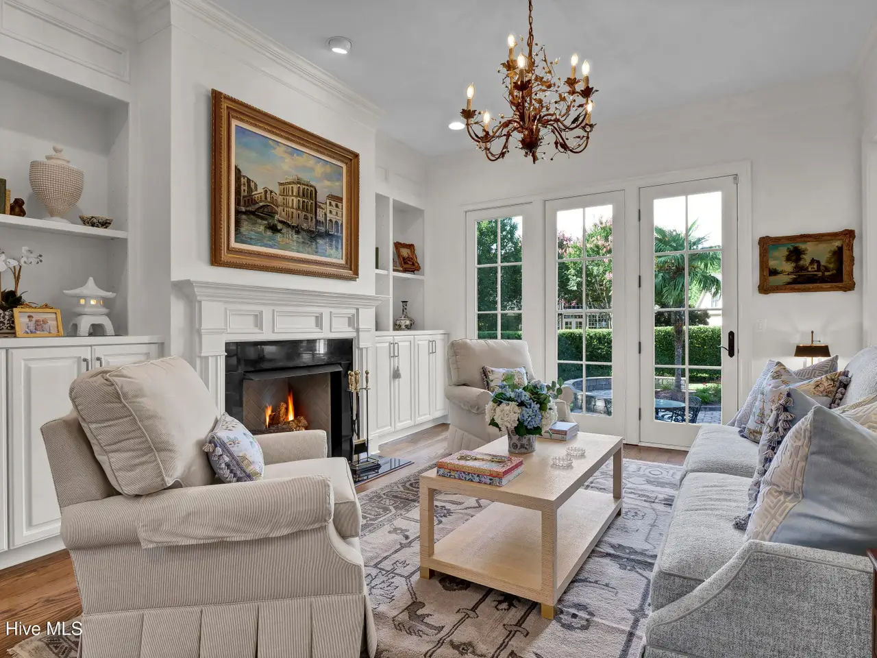 • Hardwood floors, custom built-ins, detailed crown moldings throughout