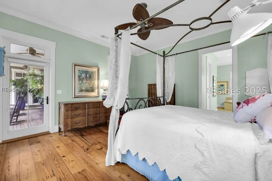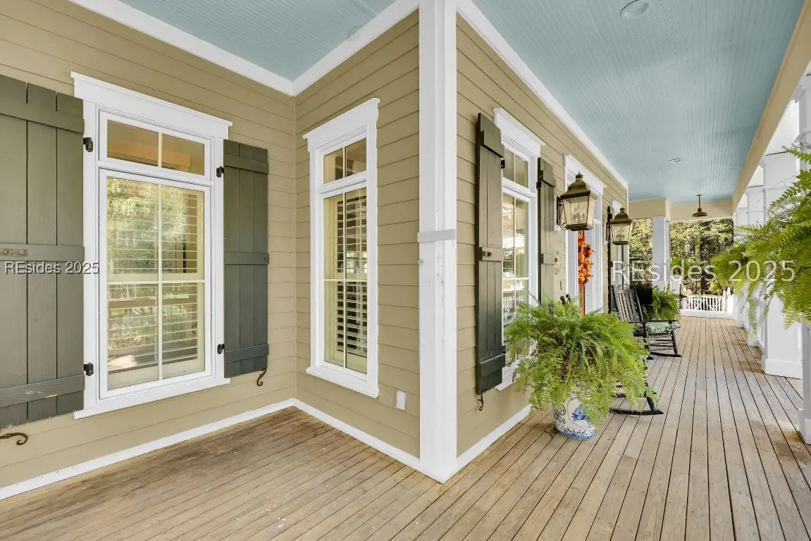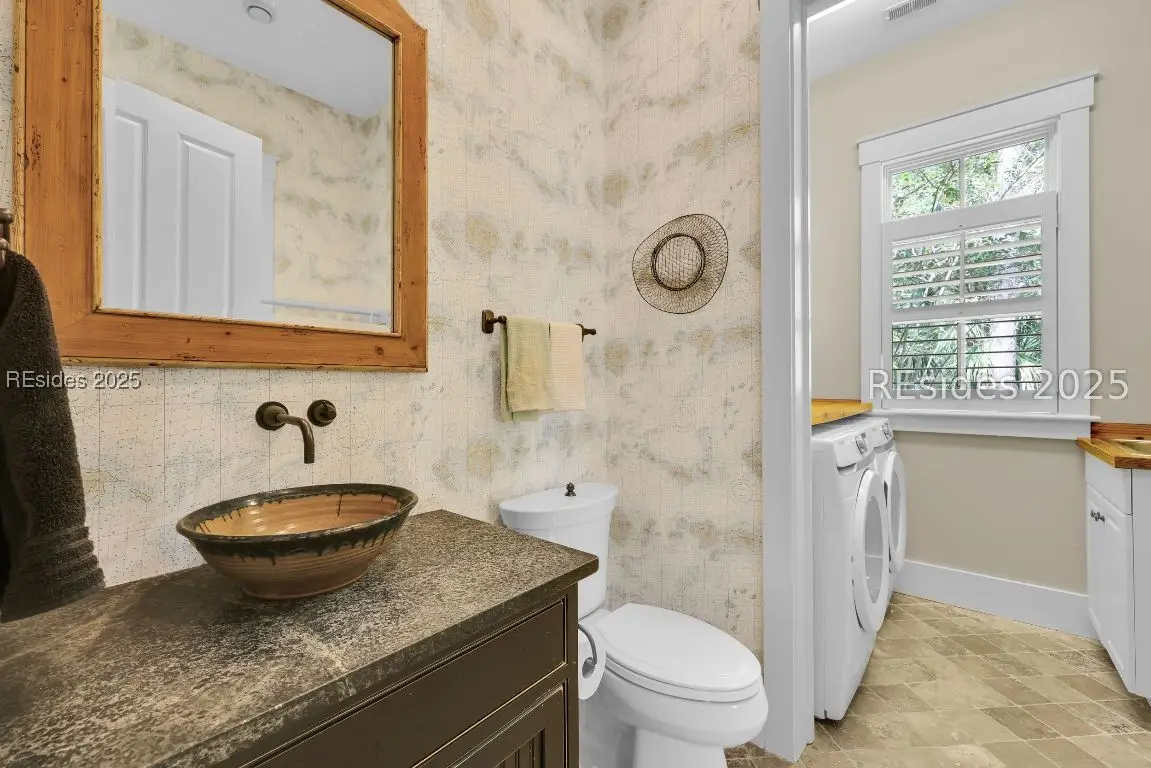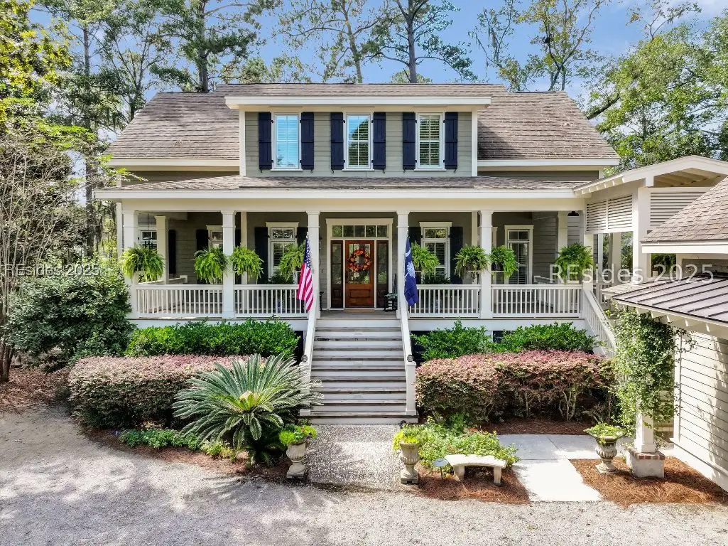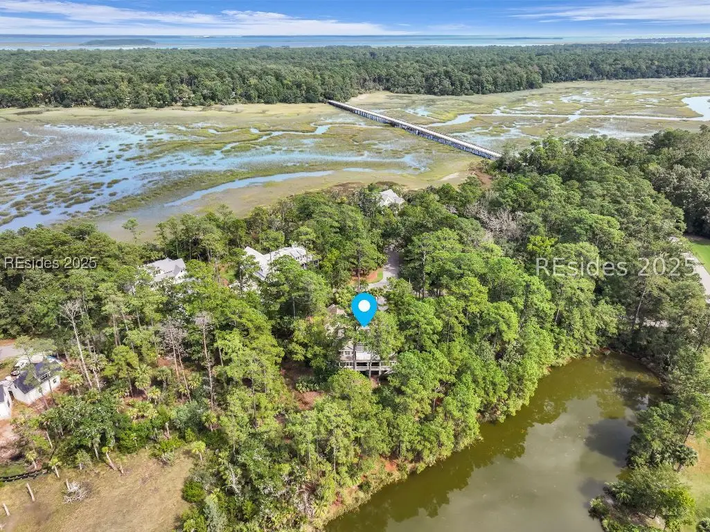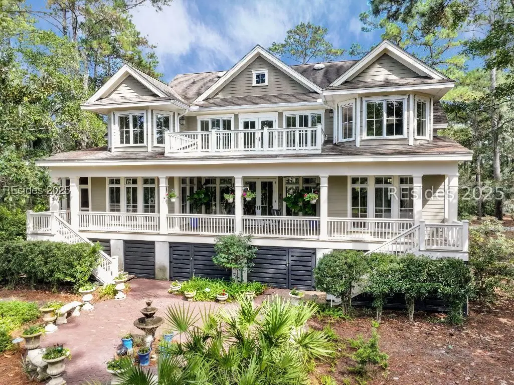 Welcome to Callawassie Island, a private gated wildlife sanctuary community. Drive across the causeway and enjoy the tidal marsh with Spartina grass, exquisite waterfowl, and occasionally playful dolphins. Enter the island with Spanish moss draped old live trees and world class golf views. Arrive at 3 Woodstork Watch an estate-style home with privacy, panoramic views and unparalleled Low Country lifestyle. Experience the WOW factor when you open the front door and see your pond and marsh views framed in tall windows and doors inviting you to the covered porch. 347 feet of waterfront! Enjoy entertaining in your gracious great room with fireplace, large wet bar, chiefs delight kitchen with 2 ovens, large island, and new appliances. Choose dining inside surrounded with tall windows or on the large porch where you'll eat outside, both with awesome views. Relax in your primary suite on the main floor with tall windows for observing wildlife. Upstairs the large balcony captures a stunning 270-degree panoramic view of the pond, marsh, fountain, winding path and treetops of magnolias, pines, oaks, and palm trees. Your family and guests will appreciate the view from the gathering/entertainment room and en-suite bedrooms with bay windows. Downstairs walk through a breezeway covered stair or on a fern and flower basket lined ramp to your charming carriage house. Plenty of space on your double lot to expand the main structure or add additional guest house. 372 feet of street frontage. Callawassie Island lifestyle includes for your pleasure 27 holes of golf, 2 pools, 2 clubhouses, tennis, pickle ball, fitness center, docks on the river, butterfly garden, dog park and vibrant community. Above all, what makes this home truly special is its estate setting - the rare, one-of-a-kind property on the island and unmatched privacy and views that come with it.