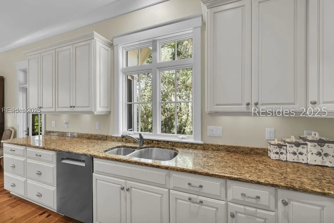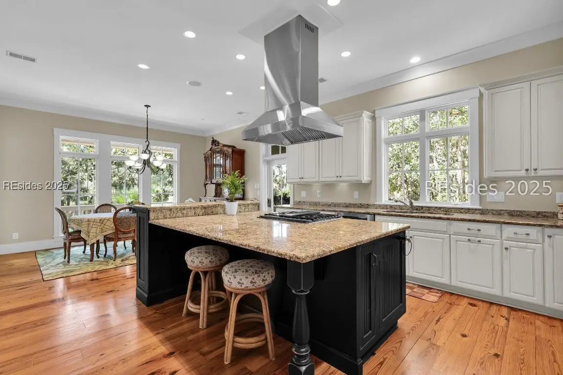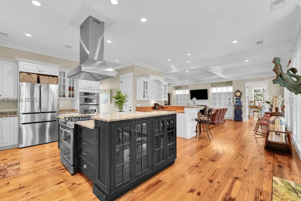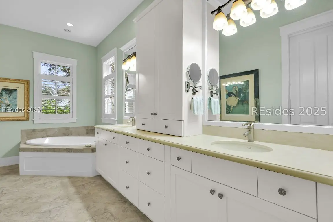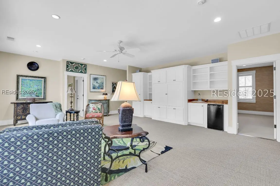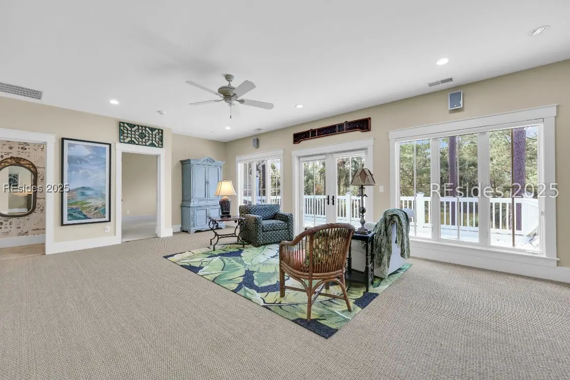Welcome to Callawassie Island, a private gated wildlife sanctuary community. Drive across the causeway and enjoy the tidal marsh with Spartina grass, exquisite waterfowl, and occasionally playful dolphins. Enter the island with Spanish moss draped old live trees and world class golf views. Arrive at 3 Woodstork Watch an estate-style home with privacy, panoramic views and unparalleled Low Country lifestyle. Experience the WOW factor when you open the front door and see your pond and marsh views framed in tall windows and doors inviting you to the covered porch. 347 feet of waterfront! Enjoy entertaining in your gracious great room with fireplace, large wet bar, chiefs delight kitchen with 2 ovens, large island, and new appliances. Choose dining inside surrounded with tall windows or on the large porch where you'll eat outside, both with awesome views. Relax in your primary suite on the main floor with tall windows for observing wildlife. Upstairs the large balcony captures a stunning 270-degree panoramic view of the pond, marsh, fountain, winding path and treetops of magnolias, pines, oaks, and palm trees. Your family and guests will appreciate the view from the gathering/entertainment room and en-suite bedrooms with bay windows. Downstairs walk through a breezeway covered stair or on a fern and flower basket lined ramp to your charming carriage house. Plenty of space on your double lot to expand the main structure or add additional guest house. 372 feet of street frontage. Callawassie Island lifestyle includes for your pleasure 27 holes of golf, 2 pools, 2 clubhouses, tennis, pickle ball, fitness center, docks on the river, butterfly garden, dog park and vibrant community. Above all, what makes this home truly special is its estate setting - the rare, one-of-a-kind property on the island and unmatched privacy and views that come with it.