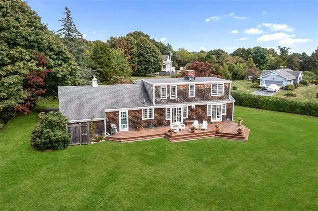 Just steps from the Sakonnet River, with deeded shoreline access and a mooring, 80 Leonard offers the best of coastal living. This 3-bedroom home features an updated, open floor plan that flows effortlessly from kitchen to dining to living areas—perfect for entertaining or simply enjoying the relaxed seaside lifestyle. A first-floor bedroom with fireplace, two additional bedrooms and a full bath upstairs, and fully renovated bathrooms throughout provide comfort and flexibility. Multiple doors open to expansive decks and a generous lawn, where sweeping sunset views over the water create the ideal backdrop for gatherings. Privately tucked at the end of a cul-de-sac, the property also includes an attached garage, a 300 SF studio/retreat, and an outdoor shower for rinsing off after a day on the water. Whether year-round or seasonal, this home is a true coastal retreat.