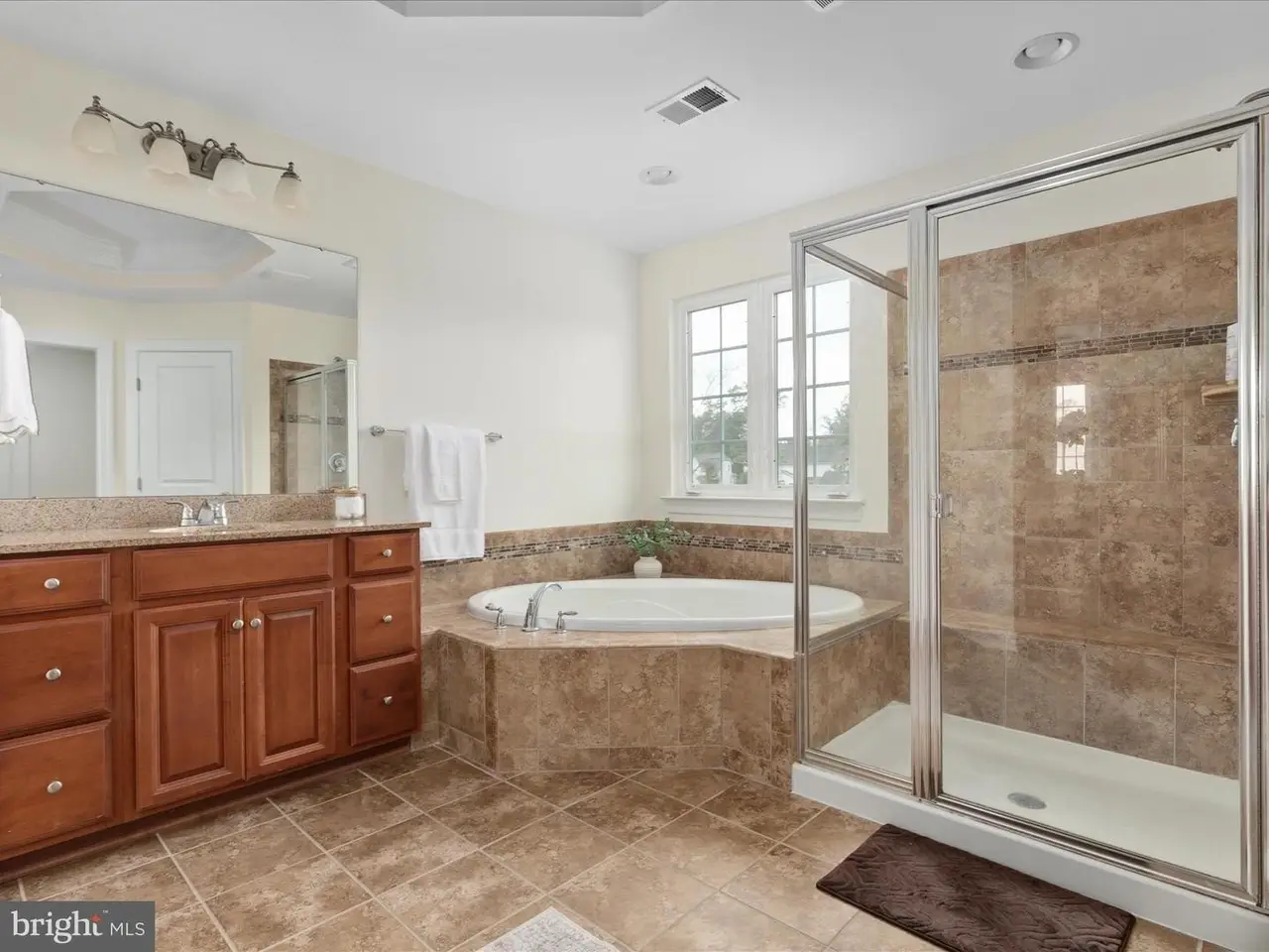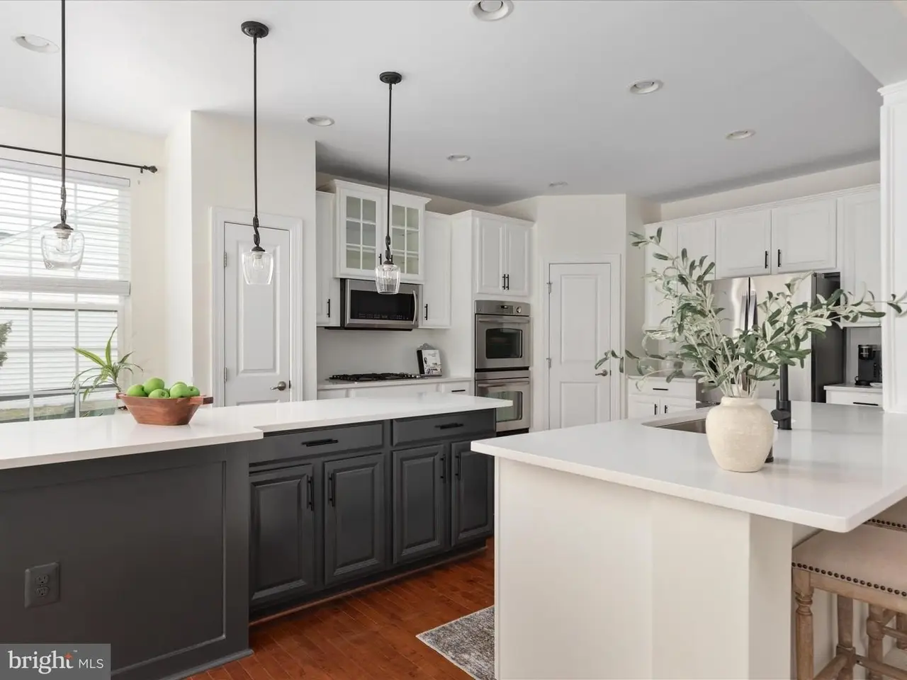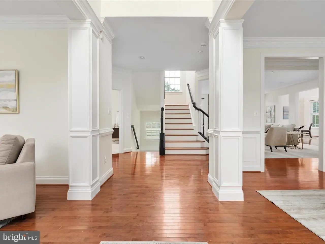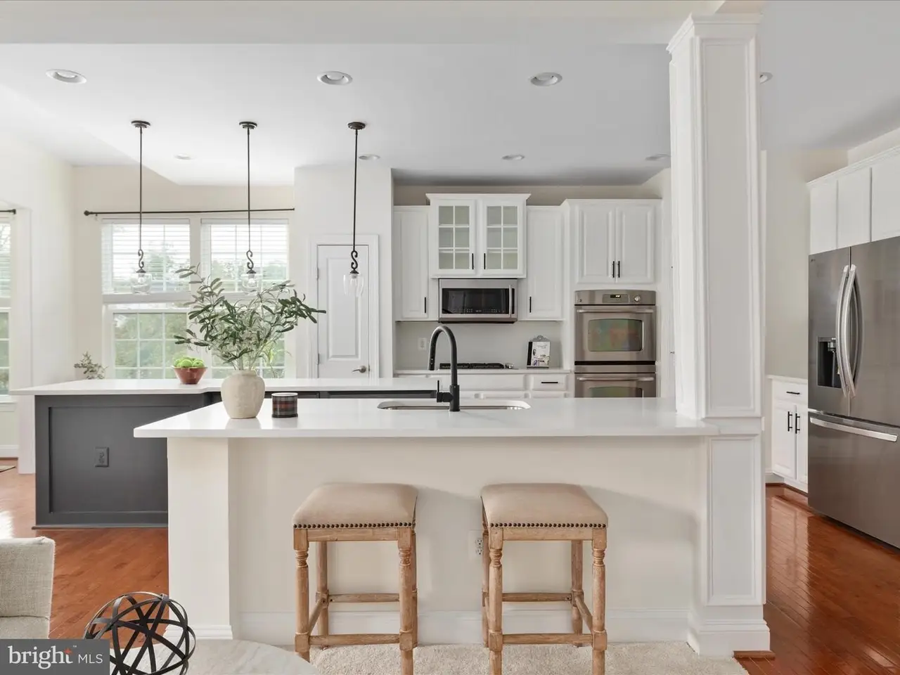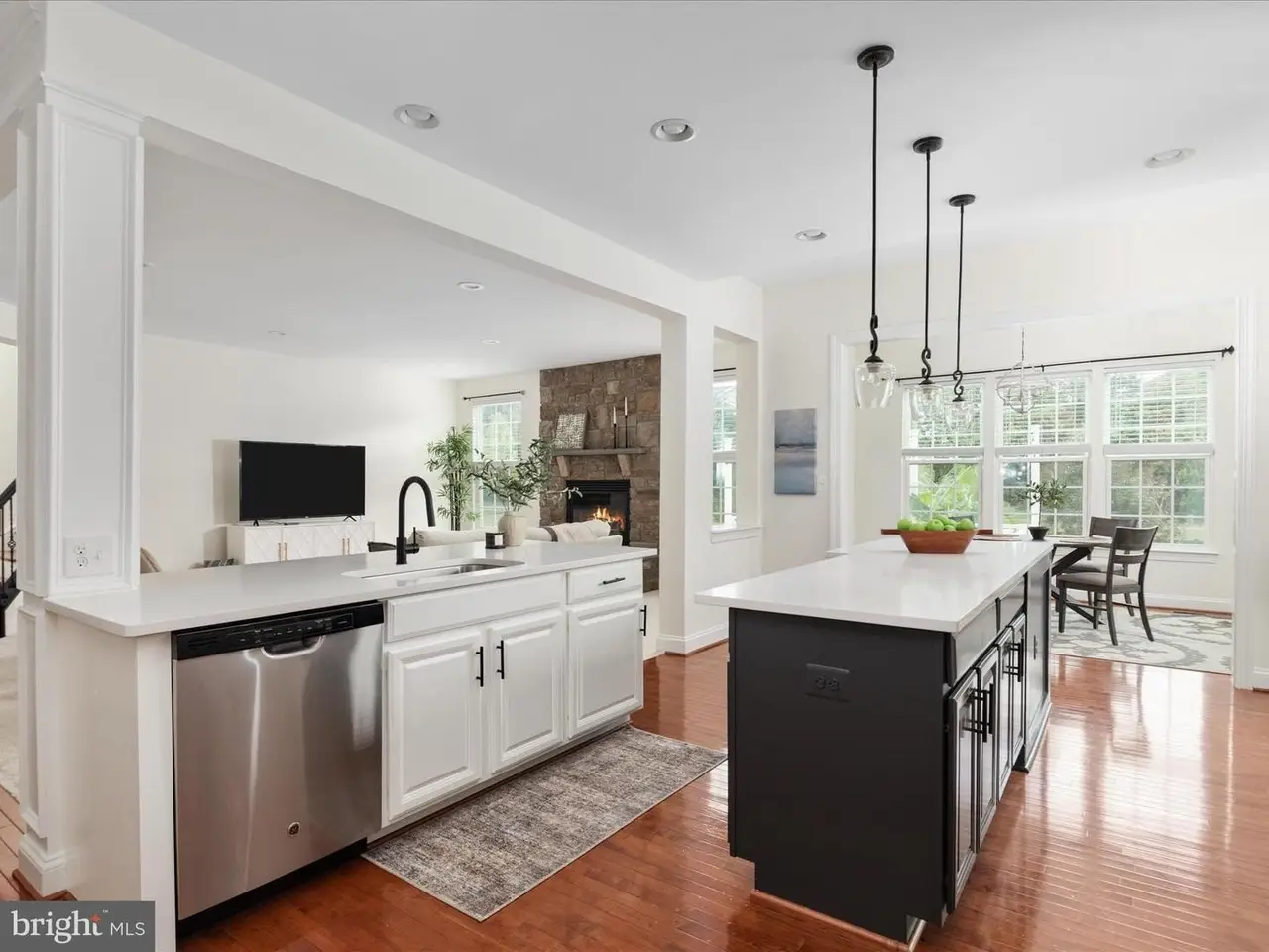 Look no further, this house will truly impress you! With generously sized rooms, 9 ft. ceilings, and an open floor plan featuring hardwood floors on the main level, this home has it all. The newly renovated chef's kitchen boasts double islands, quartz counters, stainless steel appliances that include double ovens and a vented gas cooktop along with two pantries, all adjacent to a sunlit breakfast room. The main level also includes a bedroom or study and a full bath. The two-story foyer is flanked by a formal living room and a large dining room. The family room, with its floor-to-ceiling stone gas fireplace, sets a cozy mood. On the upper level, the spacious owner's suite includes a sitting room, spa bath, and abundant closet space. There are three additional bedrooms, all with walk-in closets, and a shared hall bath. The walk-up basement is fully finished with an impressive recreation room and a media room with stadium seating and a projection TV. The sixth bedroom and full bath provide guests with a private spot, completing the lower level. Outside, you'll enjoy a large private fenced backyard, 3 car side load garage, a Trex deck, and an irrigation system to keep everything green. The Meadows community offers a private lake, sandy beach, 2-acre dog park, and 2-mile walking trails. The location is prime just minutes to Stone Springs Hospital, Brambleton Town center, several wineries, Dulles airport and the Silver Line metro.