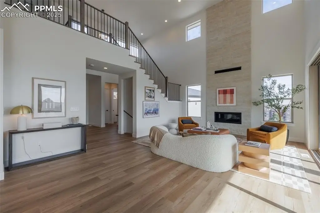 This beautiful, new, two-story home is located in the highly-sought after gated community of Kissing Camels Estates! The floorplan's spacious foyer opens onto the open-concept two-story great room and dining room, with desirable access to the expansive covered patio through the 16'x8' sliding/stacking glass doors. The well-appointed kitchen with JennAir stainless steel appliances offers a sizable, casual dining area, an oversized center island with a breakfast bar, plenty of counter and cabinet space, and a walk-in pantry. Enhance your entertaining with the use of the butler's pantry. Main level also includes a sizable office off the foyer, a first-floor bedroom suite with a walk-in closet and private bath, powder room, and convenient everyday entry from the garage. Highlighting the marvelous upper level is the primary bedroom suite with two king-sized walk-in closets and charming primary bath with dual vanities, large soaking tub, luxe shower with seat, and private water closet. The upper level also offers a generous loft, secondary bedrooms featuring walk-in closets and attached baths with a separate vanity area, and a centrally located laundry room. Amazing additional decks off the loft and primary bedroom! Don't miss the large family room, 1/2 bath, storage room, and bedroom space with attached bath and walk-in closet in the finished basement with 10-foot ceilings and a walk-out to yet another covered deck! HOA dues include manned security, snow removal on private streets & trash removal. Walking distance to the Garden of the Gods Resort and Kissing Camels Golf Club, which offers numerous amenities including spa, gym, swimming pools, hot tubs, pickleball & tennis courts, and fine dining, with club membership. Plentiful hiking & biking trails close by. Excellent location only minutes from downtown, Manitou Springs, & Kissing Camels Golf Club. Don't miss the last new home available and the lifestyle offered in the exclusive gated community of Kissing Camels!