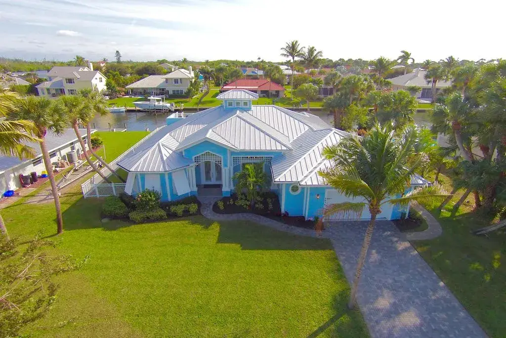 INCREDIBLE WATER VIEWS COME STANDARD! New (2016) waterfront home in search of big boat to share sunsets and the Salt Life! Finding a newly constructed home on the water in this area is like discovering a hidden treasure!! This gem showcases an exceptional open floor plan, upgrades galore, four bedrooms, 3.5 baths, oversized two-car garage and a pool with spa overlooking the water. This thoughtfully designed home has left nothing to the imagination! Its timeless Key West design and prominent Cupola providing additional interior light features a kitchen that is the home's hub for entertaining. The Stainless Steel GE Café Series appliances include a Gas Range (rare in this area). You will also have the convenience of kitchen-side dining at the expansive granite topped island or convening to the More...to the more formal dining area. Both offer incredible views of the water. From there you may adjourn to the living area with fireplace overlooking the pool, dock and waterfront. Actually, you have water views from most of the rooms in this incredible home! You may also decide to take advantage of the Summer Kitchen and gas grill for your outdoor BBQs by the pool! If first impressions matter, your guests will be amazed at the water views as they step into the voluminous entry way with 14-foot ceiling, 10-foot double-stepped coffered ceilings (with crown molding) throughout the rest of the house, three-zone air conditioner, impact windows and doors, Graber vertical and pull-down cellular shades, wood Cabana Shutters, LED Lighting throughout, tankless gas hot water heater and many more energy-saving features. You will be pleased with the low cost to maintain and insure this solidly constructed home. So many incredible upgrades and features to this home! So, here's just a few: 250 gallon propane tank (owned) Heated Salt Water Pool and Raised Spa Whole House Gas Generator 22 KV (2 Years Left on Warranty) Navien Tankless Gas Hot Water Heater Gas Fireplace Gas Range (GE Cafe Series Stainless Steel Appliances) Summer Kitchen with Refrigerator and Gas Grill Sundeck and Spiral Staircase off pool with view of Jupiter Island and ICW Recessed LED lights throughout Coffered Ceilings Central Vac 3 Zoned Air Conditioner Current Standards Impact Glass and Windows Security System with 8 Cameras Irrigation Well with Rust Filter Your home will have: 4 Bedrooms with Master on Split Floor Plan 3.5 Baths (Bidet In Master Bath) Oversized 2 Car Garage with Plenty of cabinets and overhead storage 2,675 square feet under air - 3,875 square feet total 100' of waterfront with Concrete Seawall on 1/3 Acre 50' Dock with 50 Amp Power and water 10,000 LB Boat Lift 14.7 x 28.6 Covered Patio with No Seeum's Screen Master Bath has Dual Head Walk-in Sports Shower and Soaker Tub Pull down ironing board, lots of storage in large laundry room Desirable North Exposure