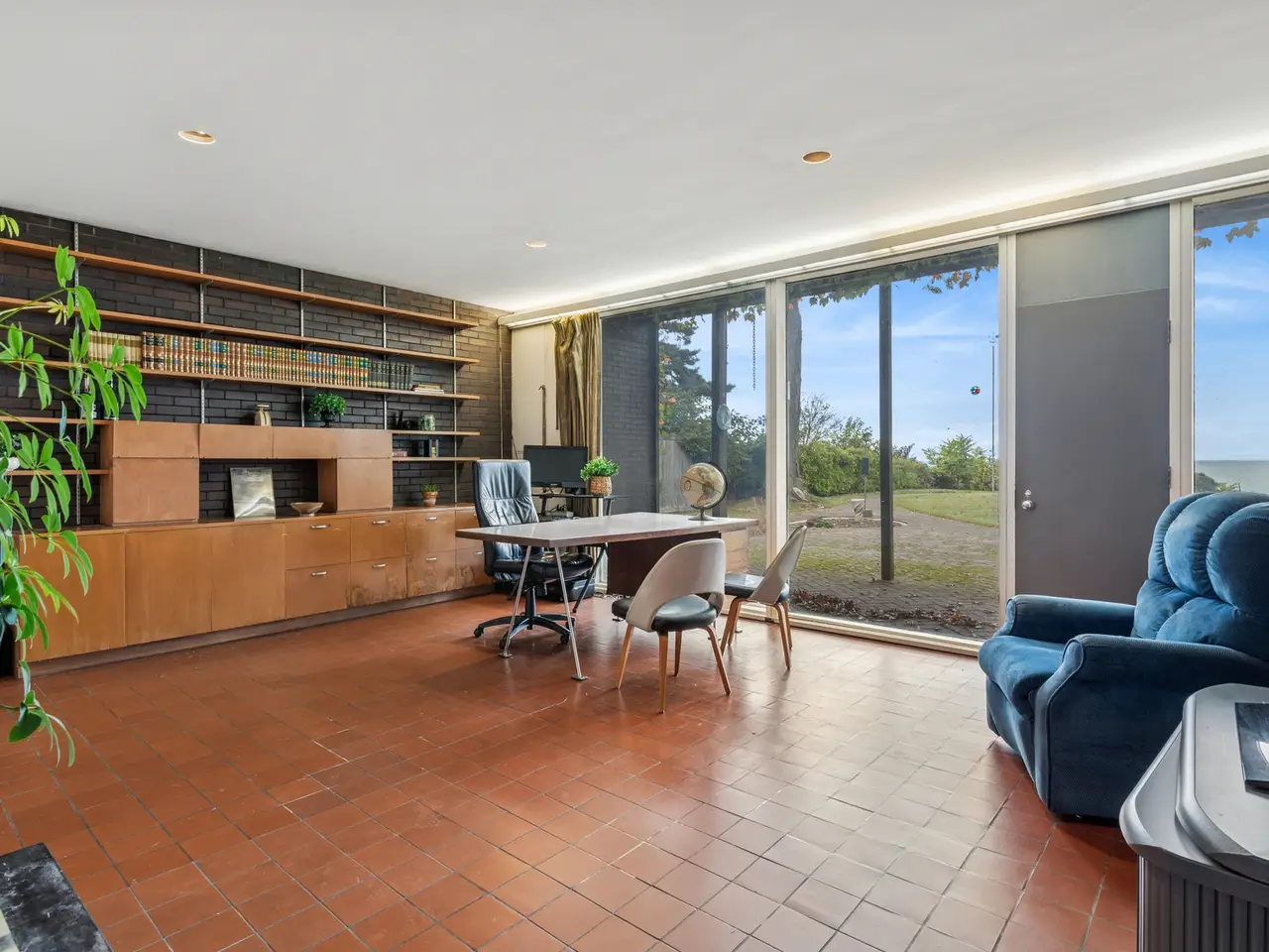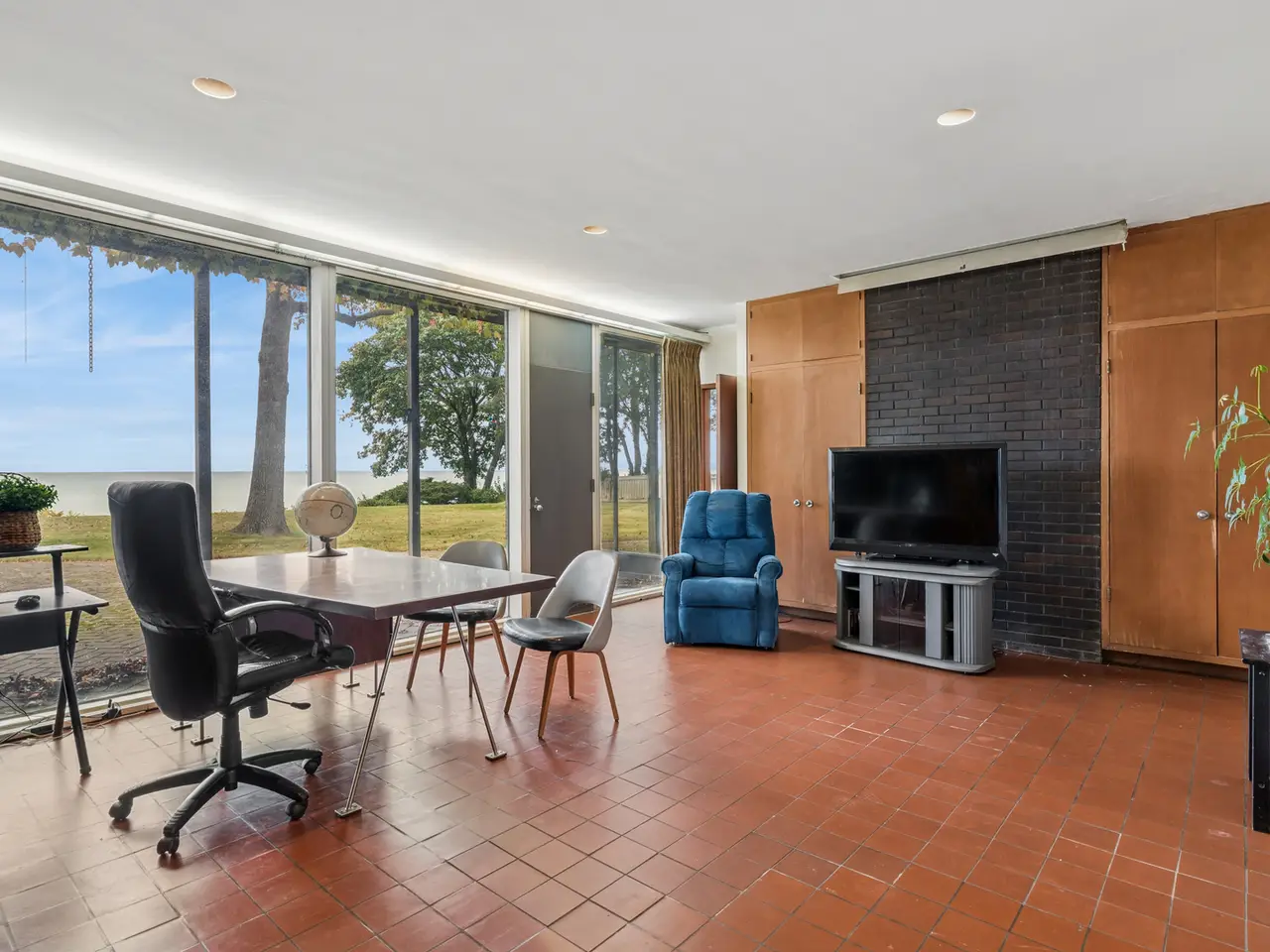 A rare lakefront opportunity in Kenilworth, set on nearly three quarters of an acre, features exceptional table land, a well-preserved bluff with a winding path to the lake, and a private lakefront! Designed by Keck and Keck in 1957, this one-level midcentury modern home showcases clean lines, expansive glass, and radiant heated floors throughout. At its center, a skylit atrium and clerestory windows create an ever-changing play of light. Shoji screens allow the space to shift from open gathering areas to a quiet retreat separated from the bedroom wing. The primary suite faces the lake, while three additional bedrooms line the peaceful south side. The main living areas open to panoramic lake views. A substantial seawall installed with adjoining neighbors protects a shoreline that naturally ebbs and flows. Walk to schools from kindergarten through high school and enjoy nearby Plaza del Lago with its high-end shops and restaurants.