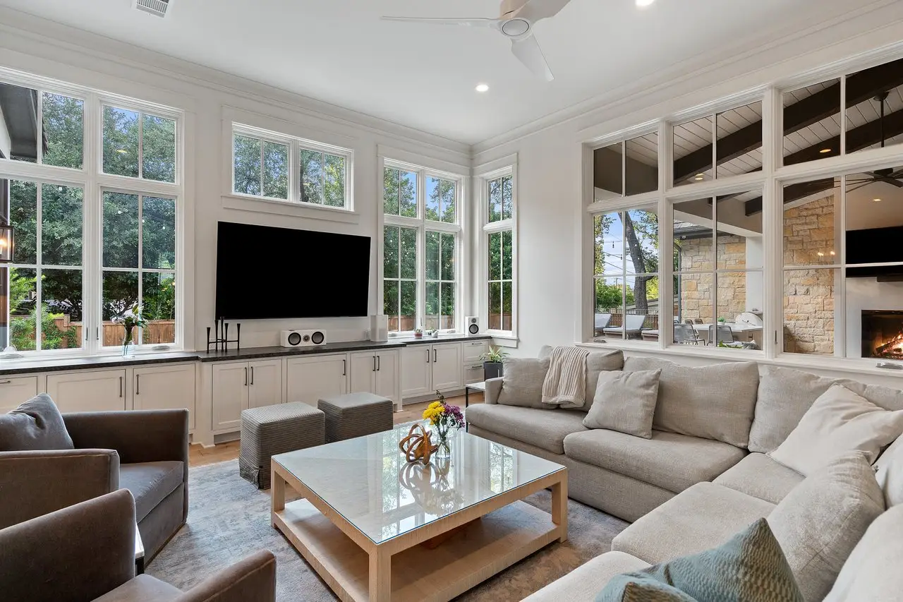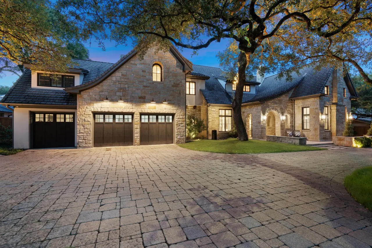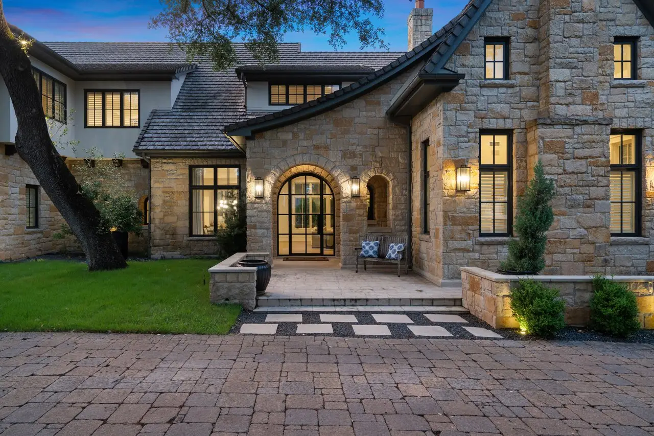 Welcome to 4907 Rollingwood Drive, a striking architectural gem nestled in the heart of one of Austin’s most prestigious neighborhoods. This sprawling 6,655-square-foot estate is a masterclass in transitional modern design—reimagined in 2021 through a collaboration with renowned LaRue Architects, interior design firm Kopfer Taylor Interiors, and luxury home builder ETF. The result is a residence that seamlessly merges timeless craftsmanship with elevated, contemporary style. Sited on an expansive .45-acre tree-lined lot, the home’s European style stone façade and graceful arches immediately command attention. Inside, the entry sets the tone with an expansive great room, abundant natural light, and an effortless flow between living spaces. Walls of glass frame the main living and dining areas, creating a constant visual connection to the outdoor covered patio, pool, and gardens beyond. The interiors exude warmth and refinement, with custom millwork, white oak flooring, designer lighting, and curated finishes at every turn The heart of the home is the open-concept kitchen—a true culinary showpiece featuring an oversized island, tailored cabinetry, premium appliances, and a walk-in pantry. Adjacent to the kitchen, a cozy breakfast nook with a fireplace invites intimate mornings, while a dramatic formal dining room with exposed beams offers a spectacular setting for hosting. Two distinct living rooms—each flooded with natural light—offer versatility for both grand entertaining and relaxed family time. The main-level primary suite is an indulgent retreat, complete with two generous walk-in closets, a spa-like bath with soaking tub and oversized shower, and direct access to a covered porch nestled beneath the trees. A private library adjoins the suite, offering the perfect space to unwind or work in peace. At the opposite wing of the home, a private guest suite with its own bath, walk-in closet, breezeway, and sun porch provides elegant accommodations for extended stays or multi-generational living. Upstairs, three additional bedrooms—each with their own en-suite bathroom—are designed with comfort and style in mind. A centrally located bonus room functions beautifully as a media lounge, game room, or gym creating a central hub for family fun and connection. An upstairs laundry room adds practicality and convenience. Outside, the property is a sanctuary designed for both relaxation and celebration. The expansive covered terrace includes a full outdoor kitchen, stone fireplace, and ample space for al fresco dining and lounging. The shimmering pool is flanked by a spa and surrounded by lush landscaping, offering total privacy and serenity. A mosquito misting system, automated landscape lighting, and whole-home generator ensure year-round comfort and peace of mind. Additional features include a circular driveway, a spacious motor court, and an oversized garage with room for up to twelve vehicles—making this an ideal setting for entertaining on any scale. The property also benefits from a shared well for irrigation and pool systems, ensuring efficiency and sustainability. Membership to the Rollingwood community pool is included, providing access to additional neighborhood amenities just moments away. With its architectural pedigree, exquisite detailing, and seamless blend of form and function, 4907 Rollingwood Drive offers a rare opportunity to own a truly exceptional home in a location that balances privacy, prestige, and proximity to Austin’s best schools, shops, and dining. This is more than a residence—it’s a lifestyle of timeless luxury.