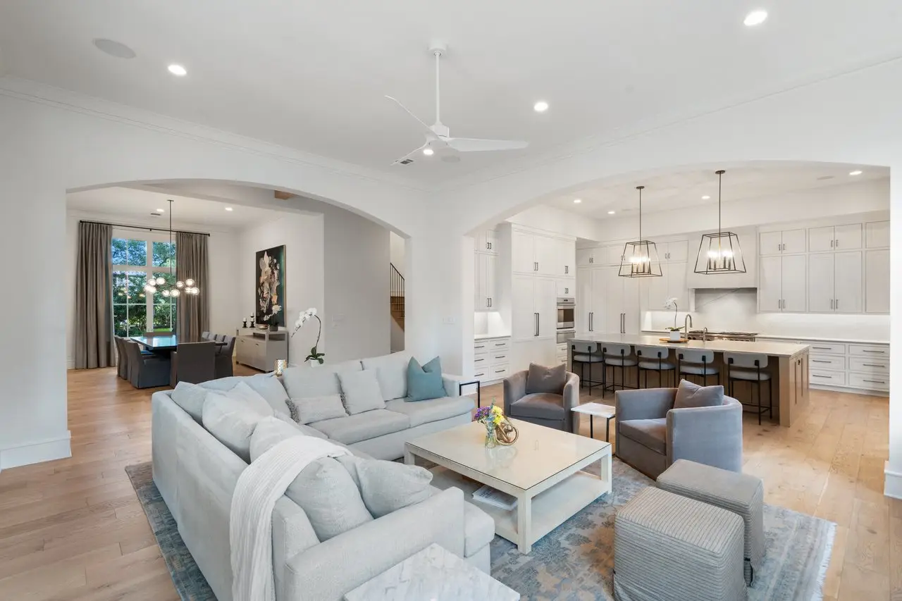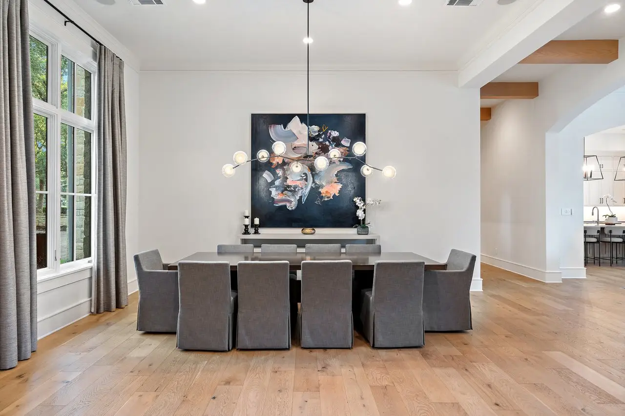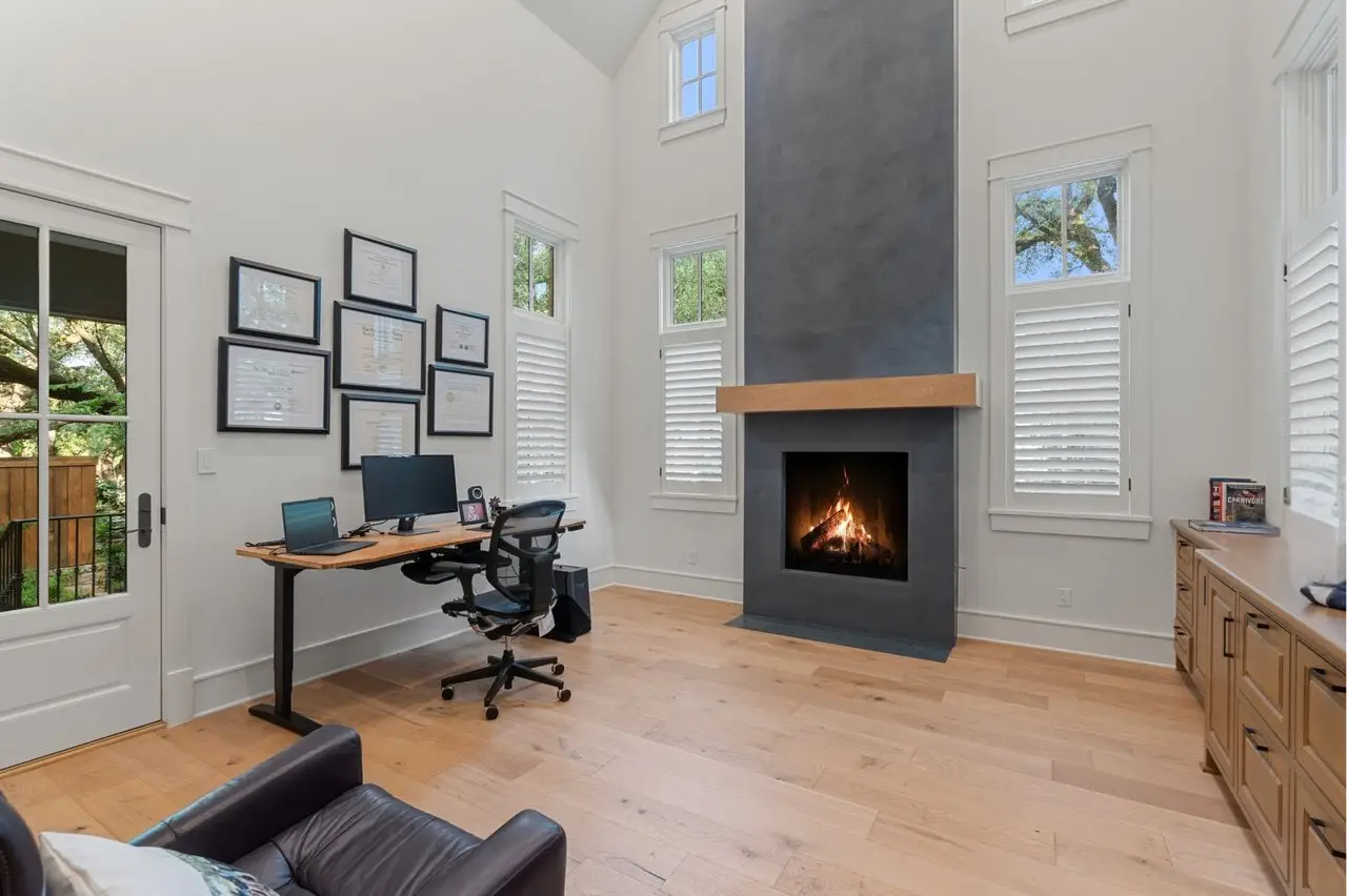 Welcome to 4907 Rollingwood Drive, a striking architectural gem nestled in the heart of one of Austin’s most prestigious neighborhoods. This sprawling 6,655-square-foot estate is a masterclass in transitional modern design—reimagined in 2021 through a collaboration with renowned LaRue Architects, interior design firm Kopfer Taylor Interiors, and luxury home builder ETF. The result is a residence that seamlessly merges timeless craftsmanship with elevated, contemporary style. Sited on an expansive .45-acre tree-lined lot, the home’s European style stone façade and graceful arches immediately command attention. Inside, the entry sets the tone with an expansive great room, abundant natural light, and an effortless flow between living spaces. Walls of glass frame the main living and dining areas, creating a constant visual connection to the outdoor covered patio, pool, and gardens beyond. The interiors exude warmth and refinement, with custom millwork, white oak flooring, designer lighting, and curated finishes at every turn The heart of the home is the open-concept kitchen—a true culinary showpiece featuring an oversized island, tailored cabinetry, premium appliances, and a walk-in pantry. Adjacent to the kitchen, a cozy breakfast nook with a fireplace invites intimate mornings, while a dramatic formal dining room with exposed beams offers a spectacular setting for hosting. Two distinct living rooms—each flooded with natural light—offer versatility for both grand entertaining and relaxed family time. The main-level primary suite is an indulgent retreat, complete with two generous walk-in closets, a spa-like bath with soaking tub and oversized shower, and direct access to a covered porch nestled beneath the trees. A private library adjoins the suite, offering the perfect space to unwind or work in peace. At the opposite wing of the home, a private guest suite with its own bath, walk-in closet, breezeway, and sun porch provides elegant accommodations for extended stays or multi-generational living. Upstairs, three additional bedrooms—each with their own en-suite bathroom—are designed with comfort and style in mind. A centrally located bonus room functions beautifully as a media lounge, game room, or gym creating a central hub for family fun and connection. An upstairs laundry room adds practicality and convenience. Outside, the property is a sanctuary designed for both relaxation and celebration. The expansive covered terrace includes a full outdoor kitchen, stone fireplace, and ample space for al fresco dining and lounging. The shimmering pool is flanked by a spa and surrounded by lush landscaping, offering total privacy and serenity. A mosquito misting system, automated landscape lighting, and whole-home generator ensure year-round comfort and peace of mind. Additional features include a circular driveway, a spacious motor court, and an oversized garage with room for up to twelve vehicles—making this an ideal setting for entertaining on any scale. The property also benefits from a shared well for irrigation and pool systems, ensuring efficiency and sustainability. Membership to the Rollingwood community pool is included, providing access to additional neighborhood amenities just moments away. With its architectural pedigree, exquisite detailing, and seamless blend of form and function, 4907 Rollingwood Drive offers a rare opportunity to own a truly exceptional home in a location that balances privacy, prestige, and proximity to Austin’s best schools, shops, and dining. This is more than a residence—it’s a lifestyle of timeless luxury.